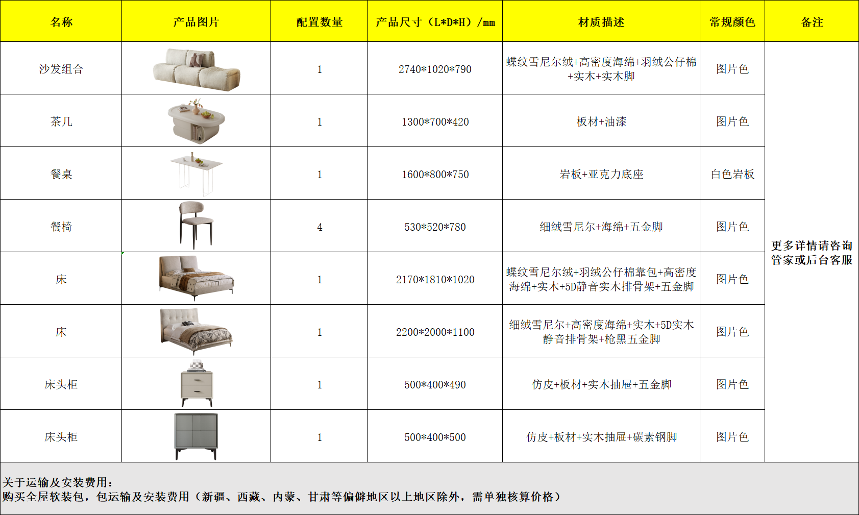 所有家具为下单后排产制作,生产启动后非质量问题不支持退换货,敬请谅解。