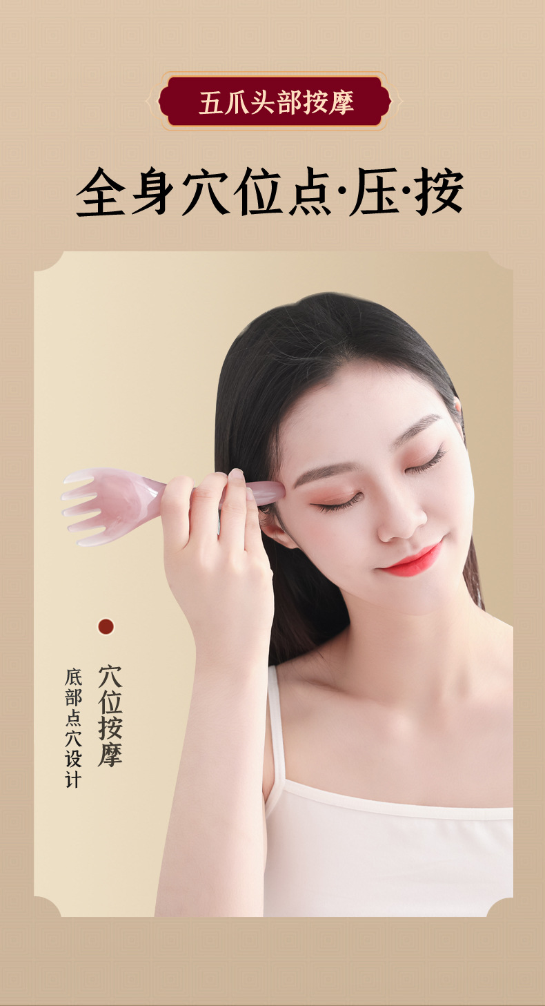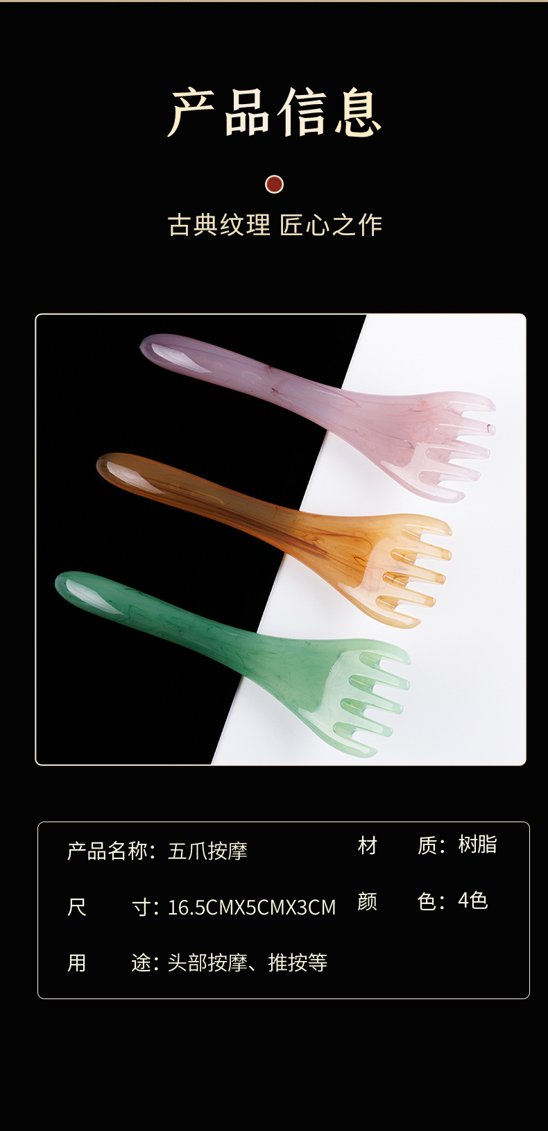 头部按摩器五爪头疗梳按摩爪按摩经络梳树脂点穴挠抓头皮按头神器