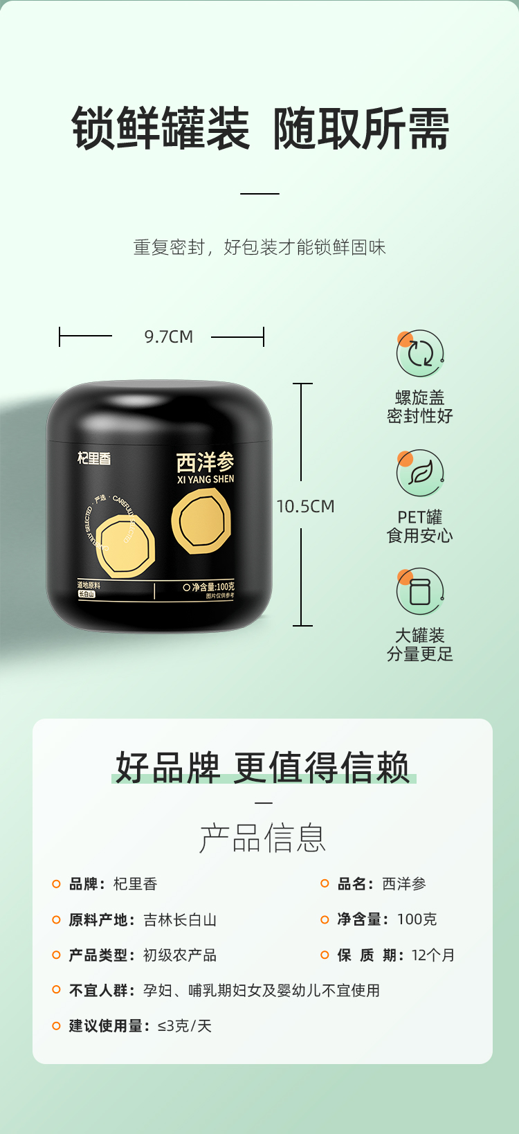 【杞里香】吉林长白山 西洋参 1.2-1.4cm皂苷丰富100g/罐