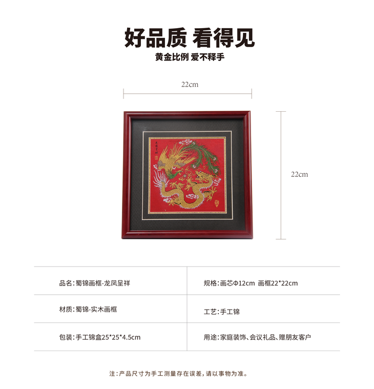非遗手工工艺蜀绣福寿红桃双熊猫(如意框)