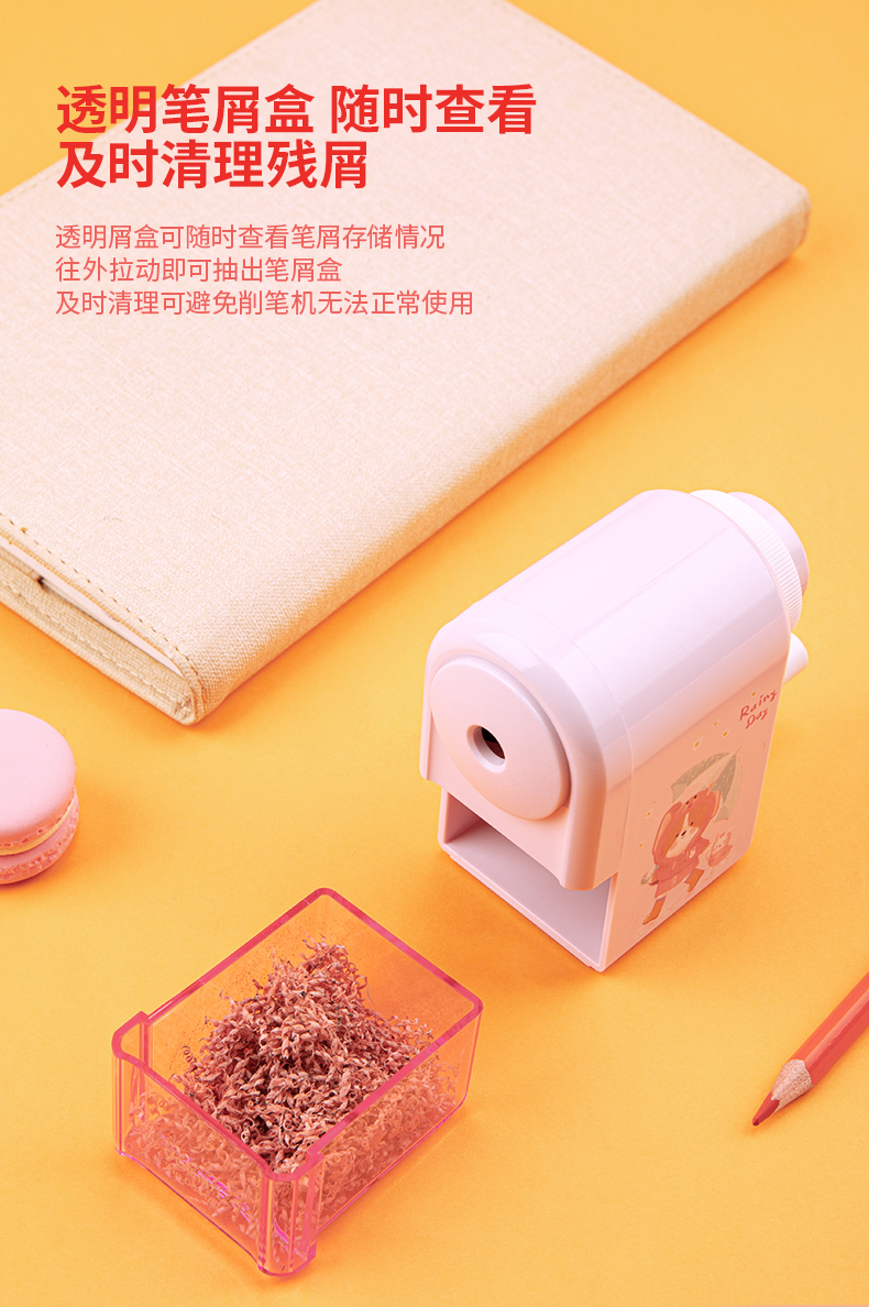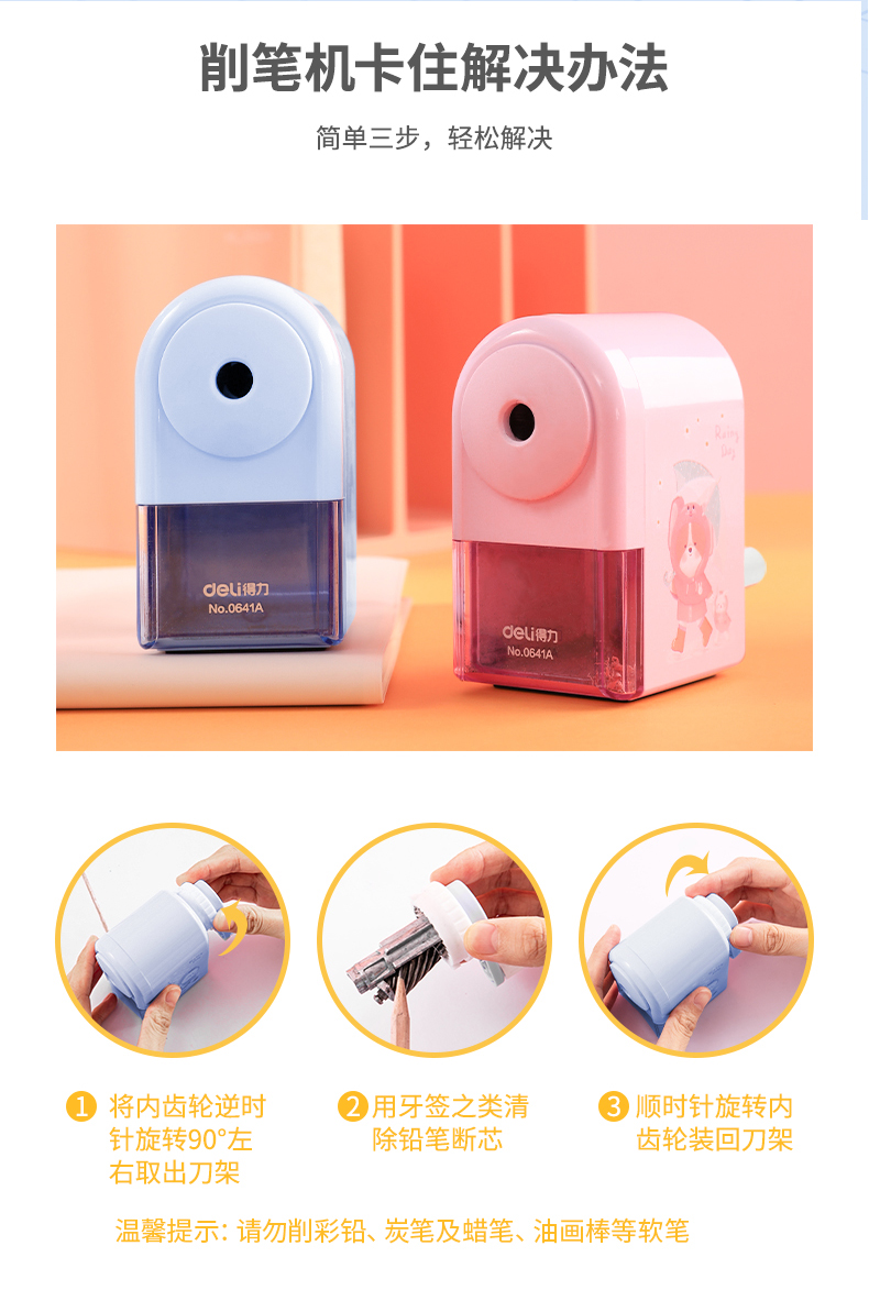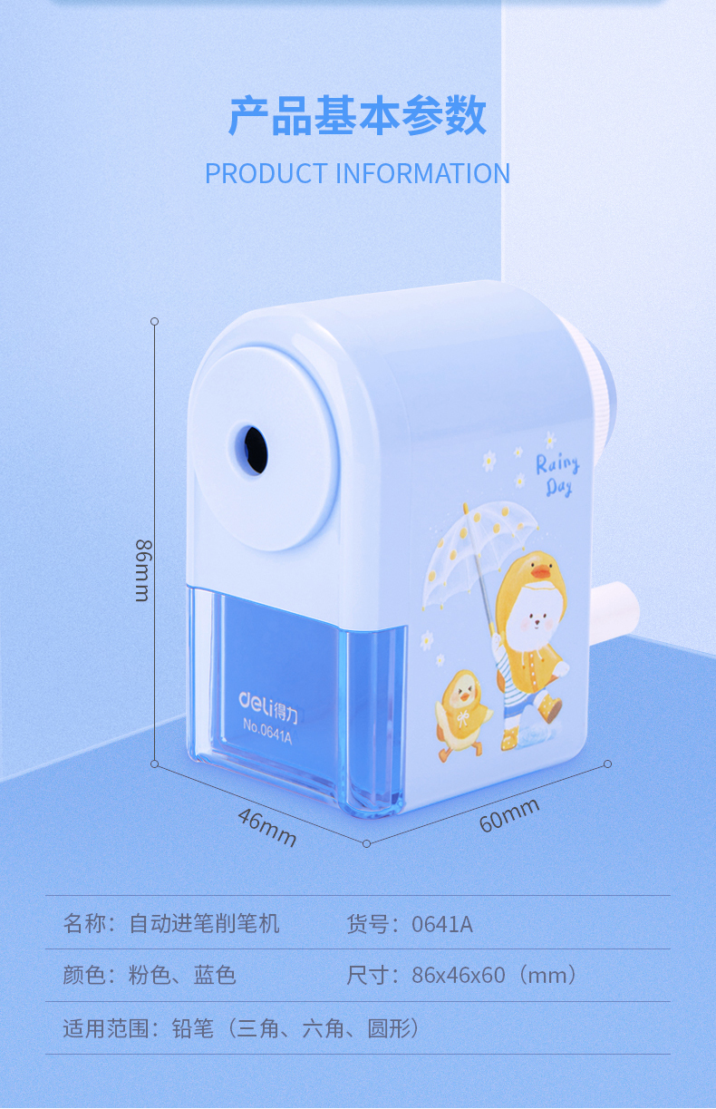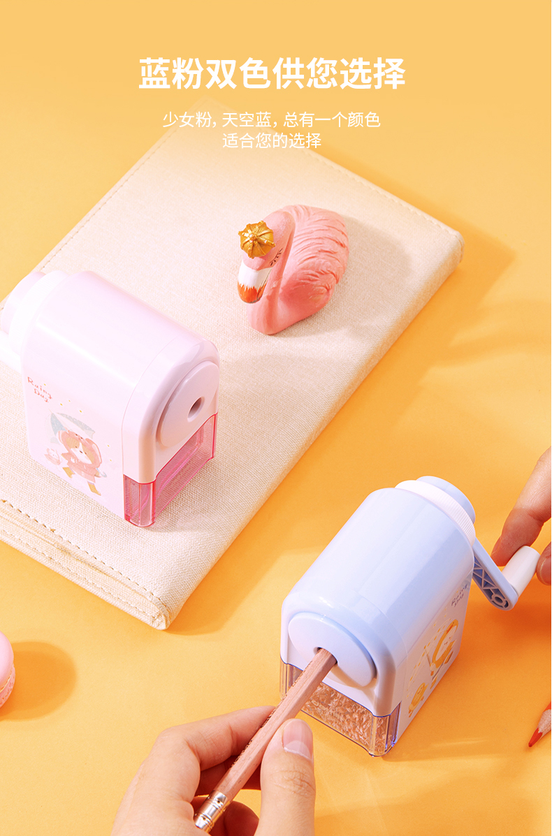「得力卷笔刀!蓝粉两色」得力手摇卷笔刀 小学生转笔刀自动进铅儿童铅笔削笔器女孩卡通手动