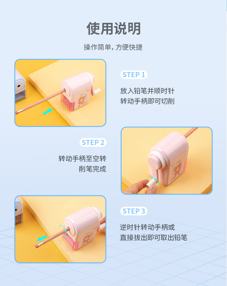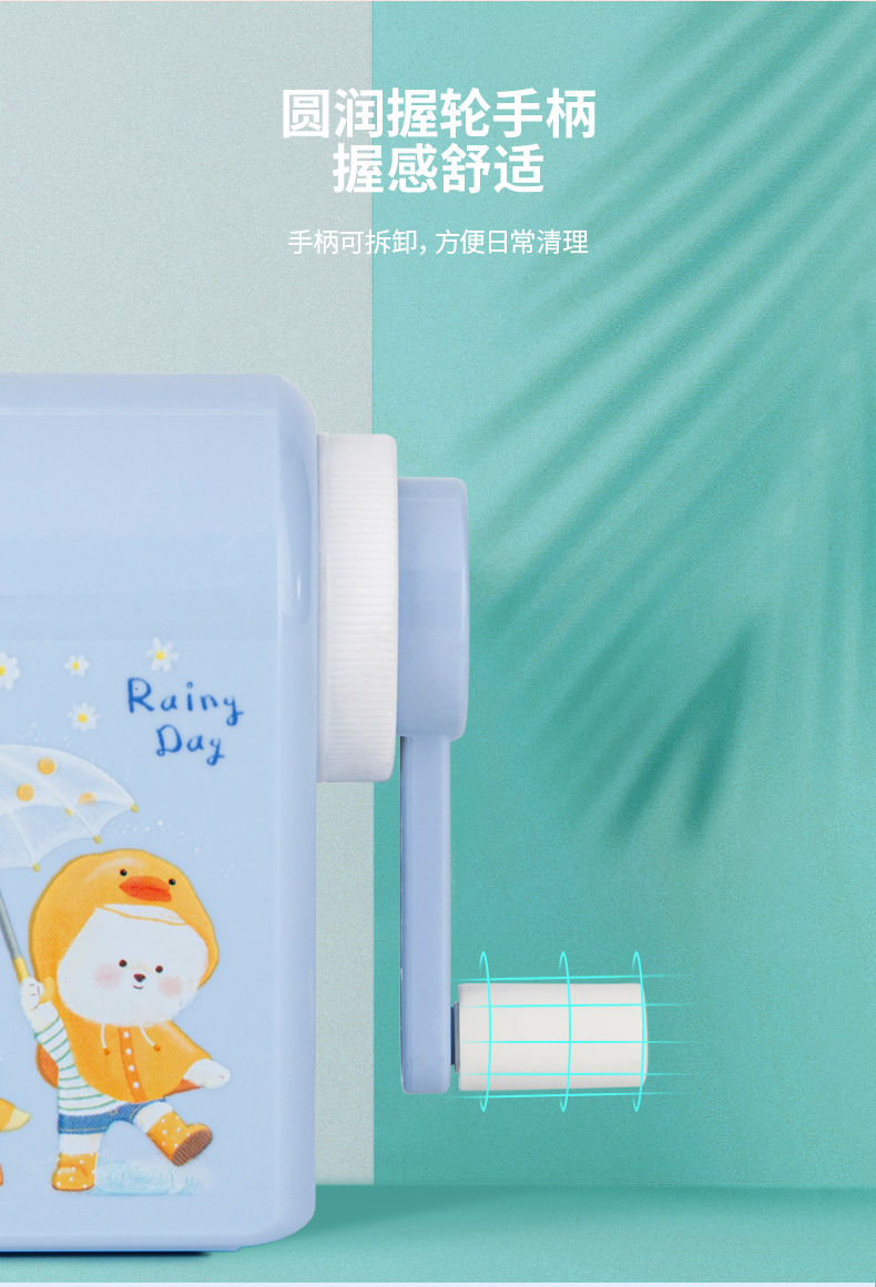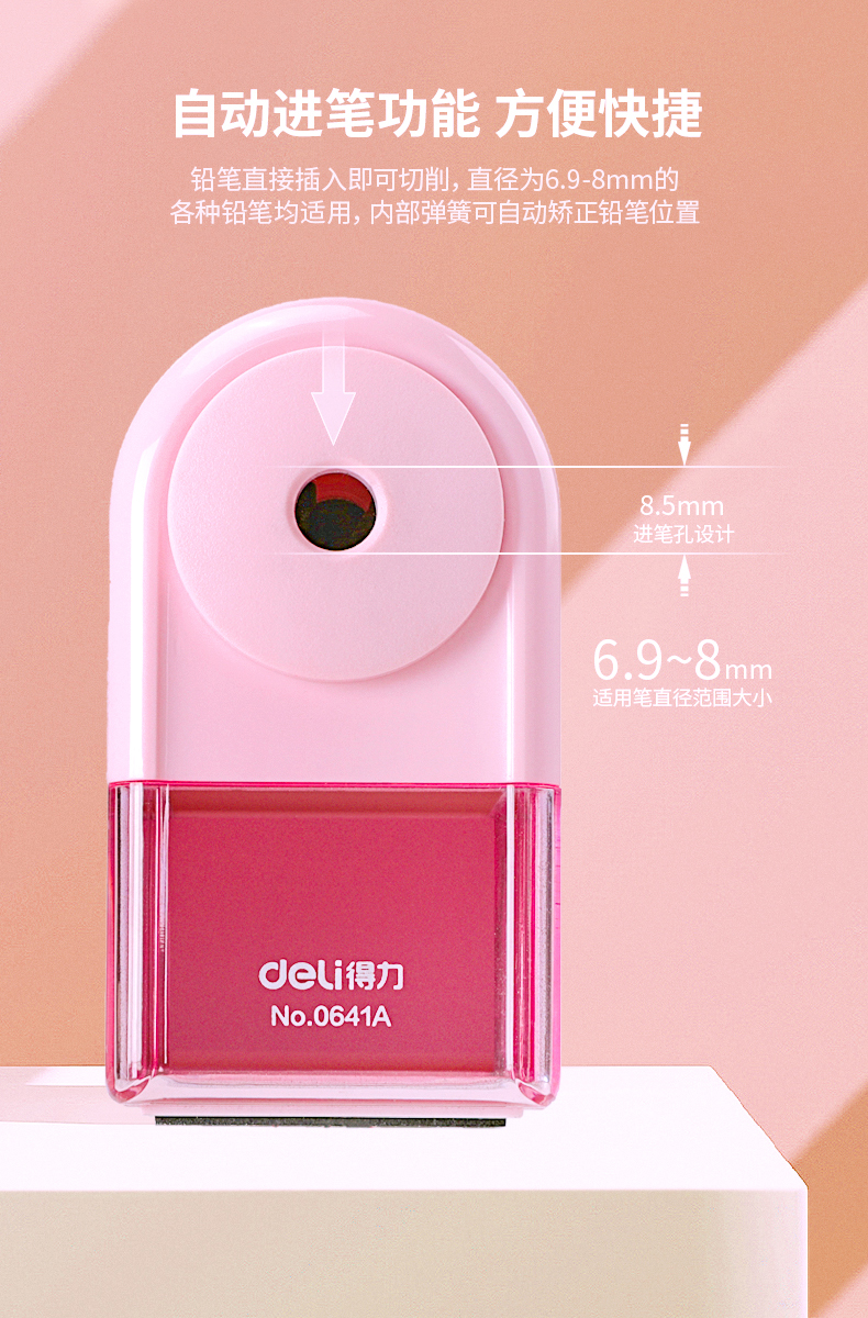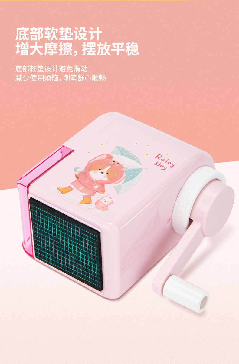 「得力卷笔刀!蓝粉两色」得力手摇卷笔刀 小学生转笔刀自动进铅儿童铅笔削笔器女孩卡通手动