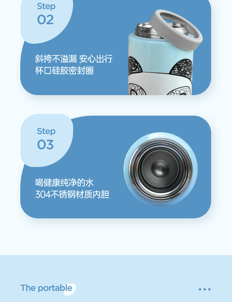 A-SA-HC-350-8 法国santeco 熊猫系列 304钢真空保温杯便携