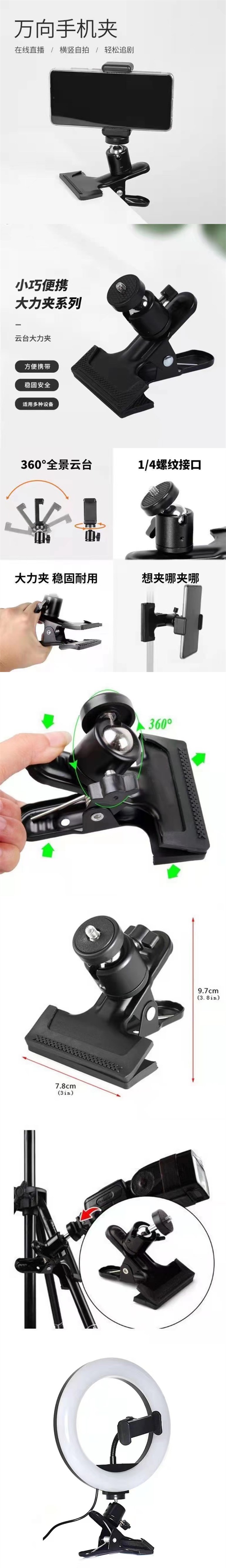 金属大力夹云台球型万向手机支架 1个 背景夹手机夹补光灯摄影器材压铸云台配件不含手机