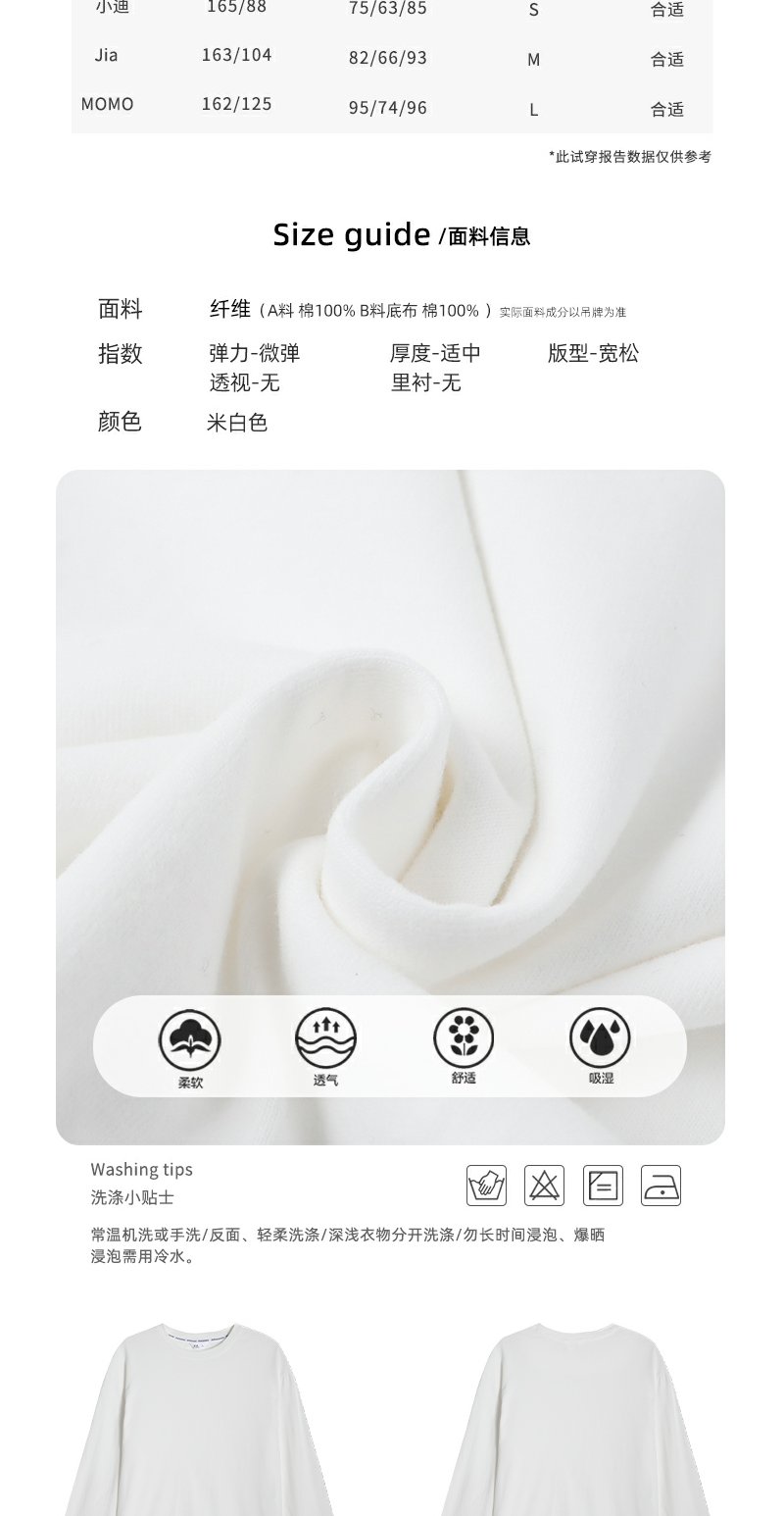 【129元任选2件】现货!韩系圆领米白色长袖t恤
