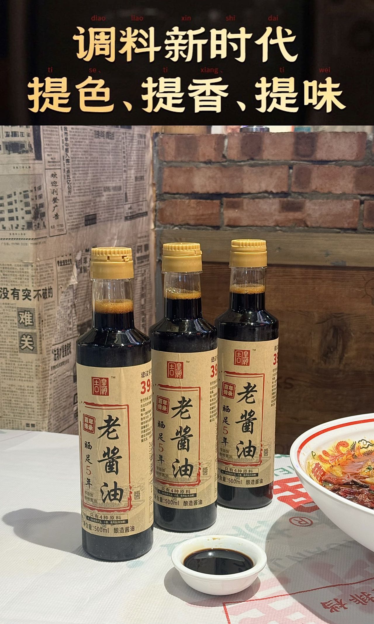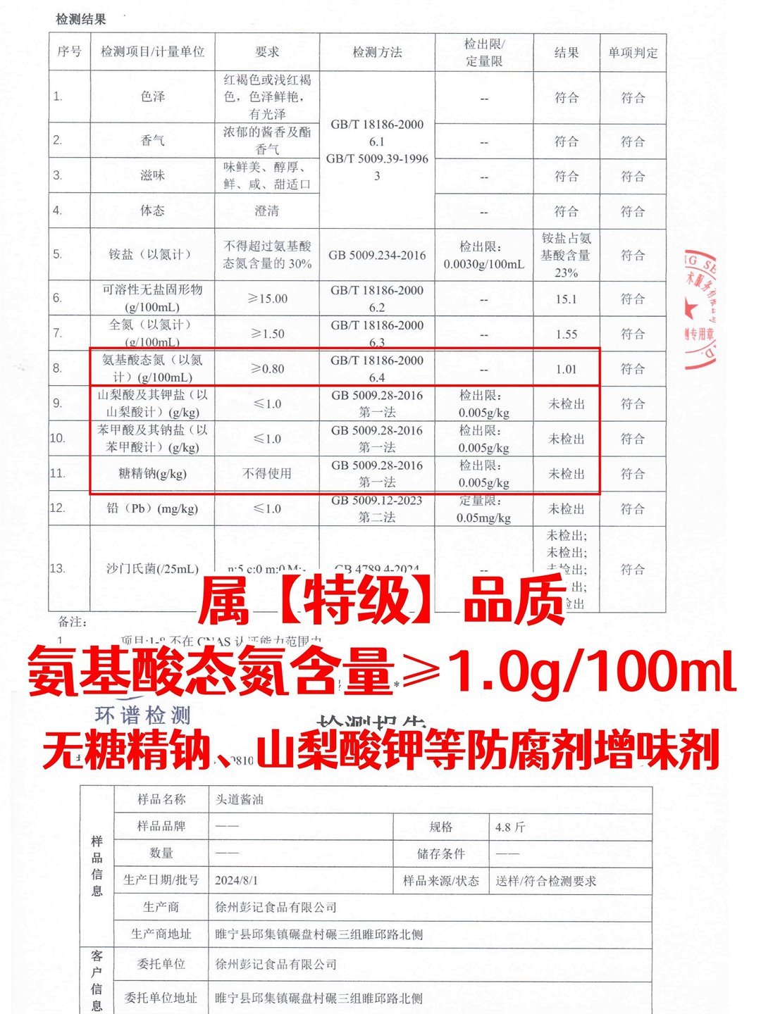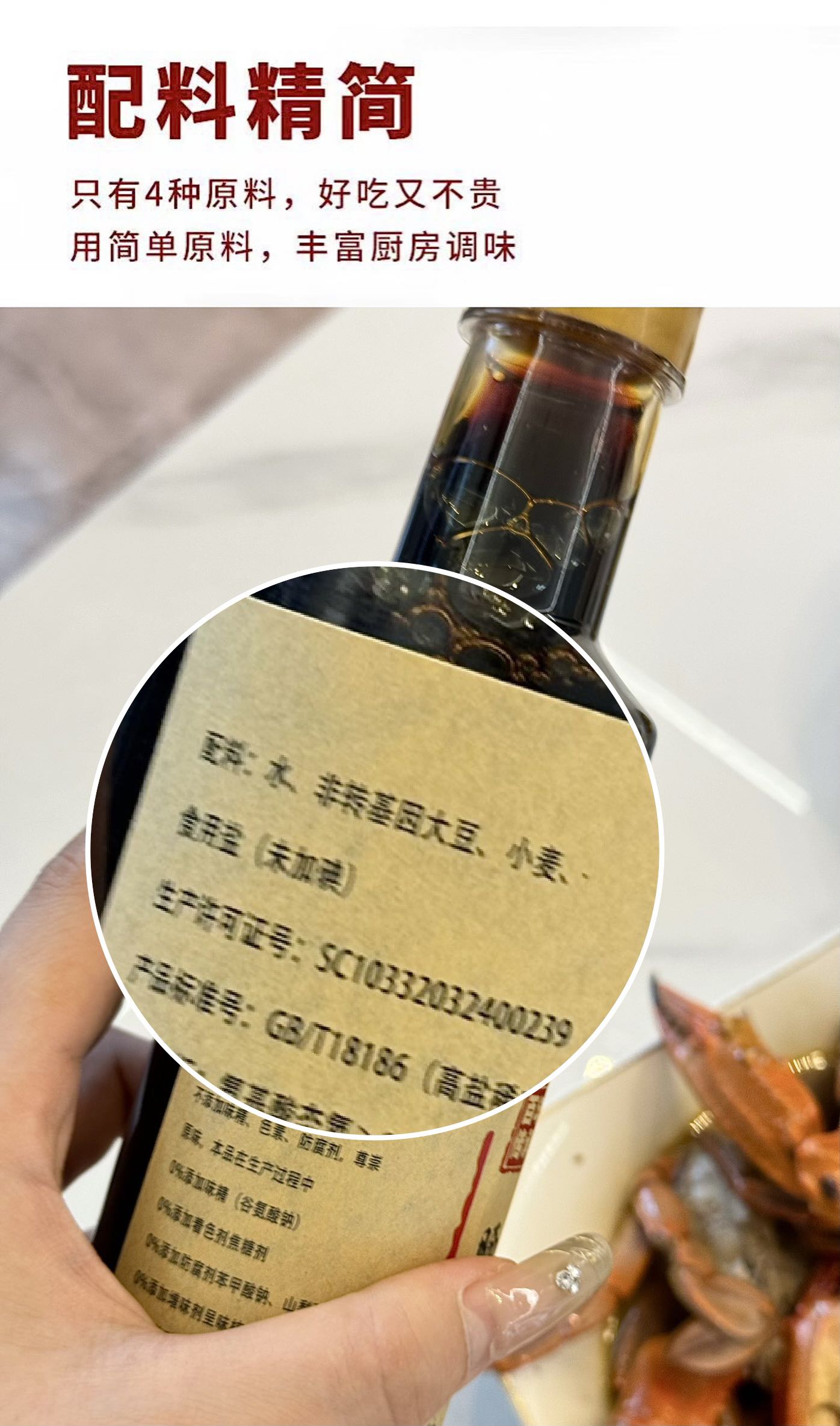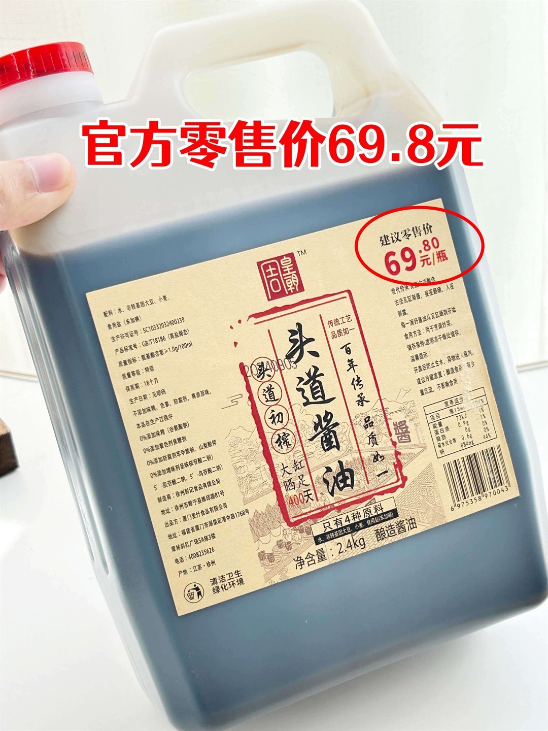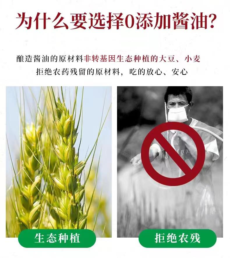 晒足400天 头道酱油 周皇朝 大缸酿造工艺;头道初榨 原始风味;无添加味精、防腐剂、着色剂等;鲜香味美