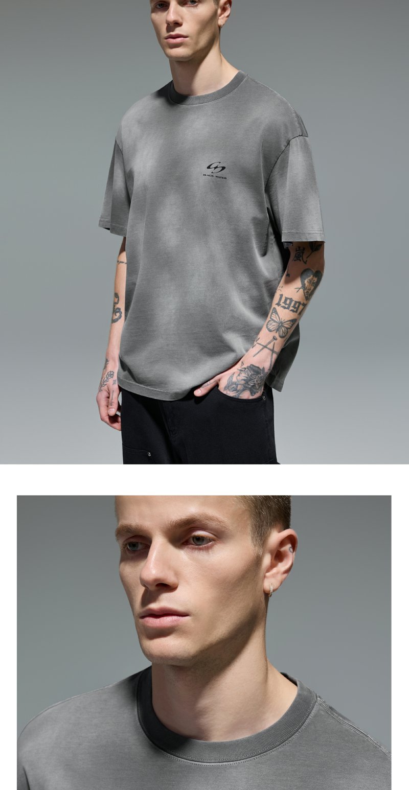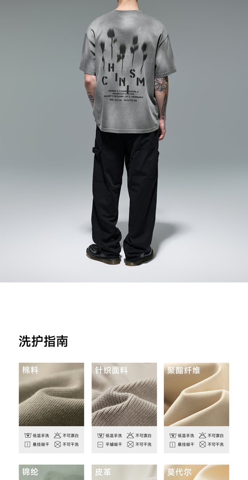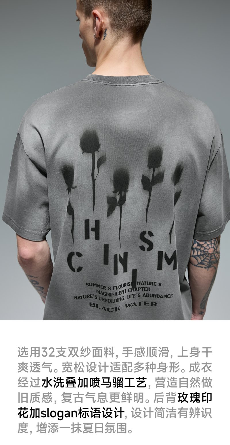 【商场同款】CHINISM赤尘 水洗玫瑰印花短袖T恤男2025夏季上衣