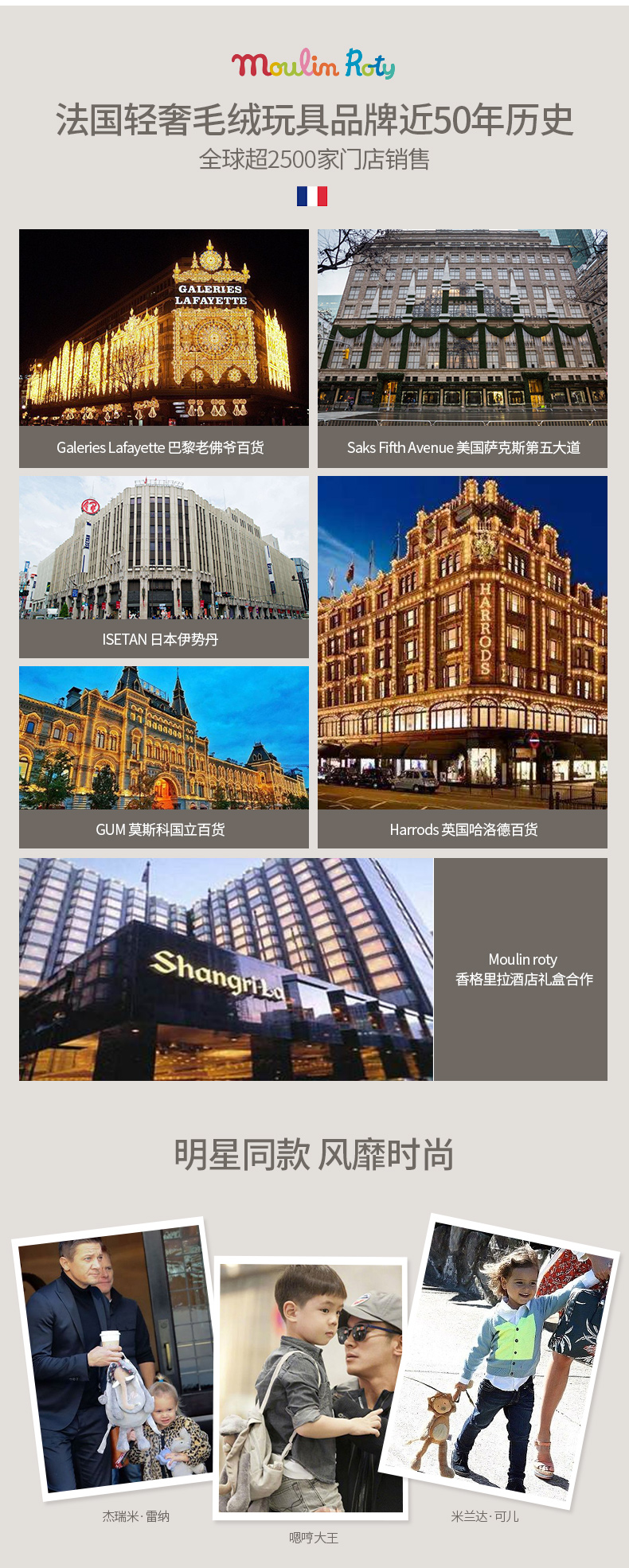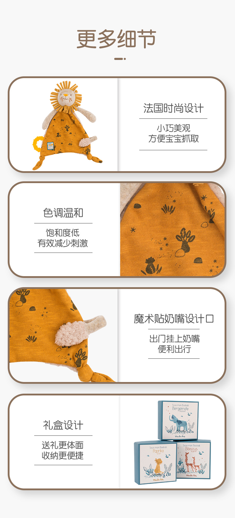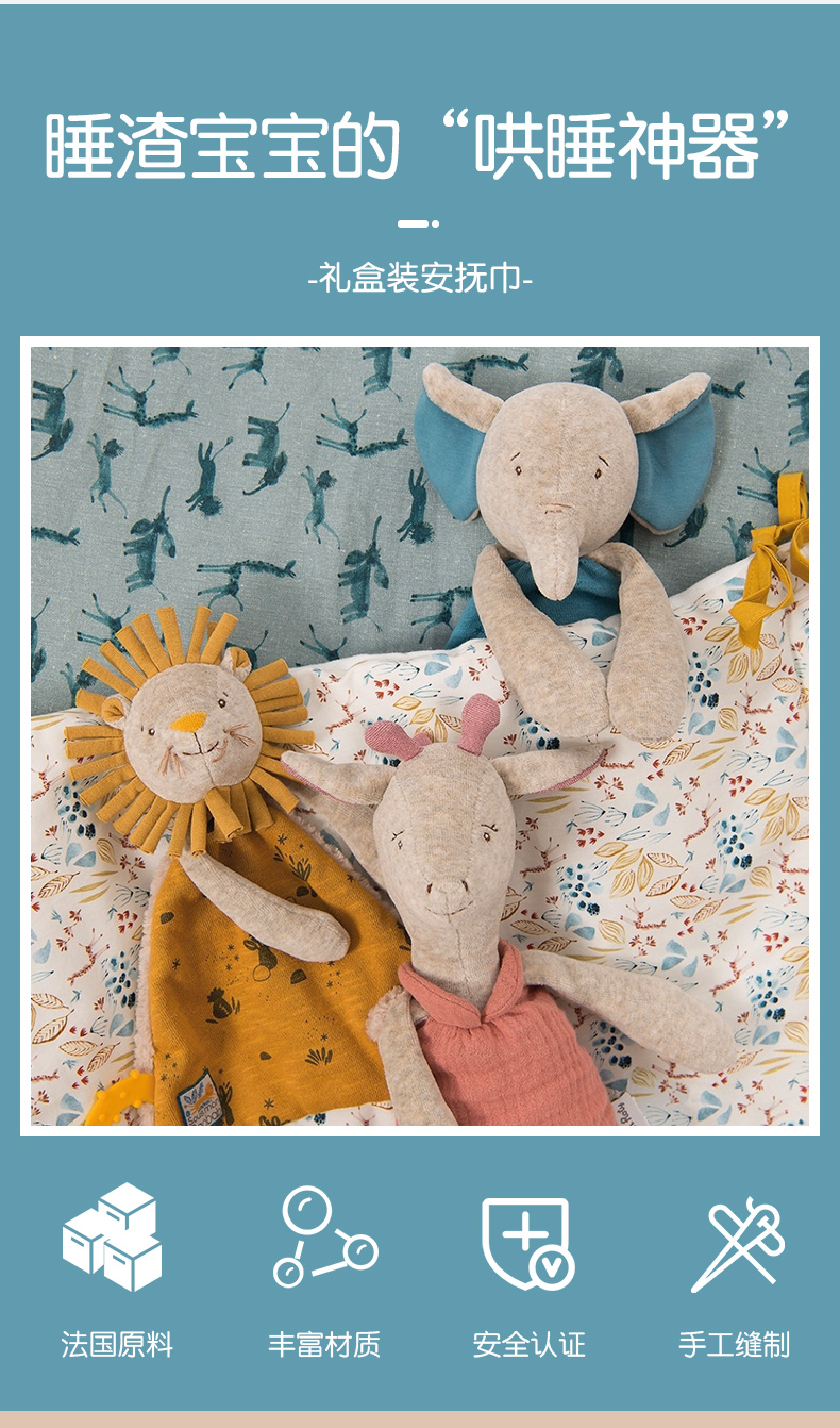 法国进口moulinroty茉兰若缇牙胶安抚巾婴儿可入口玩偶抱睡奶嘴扣