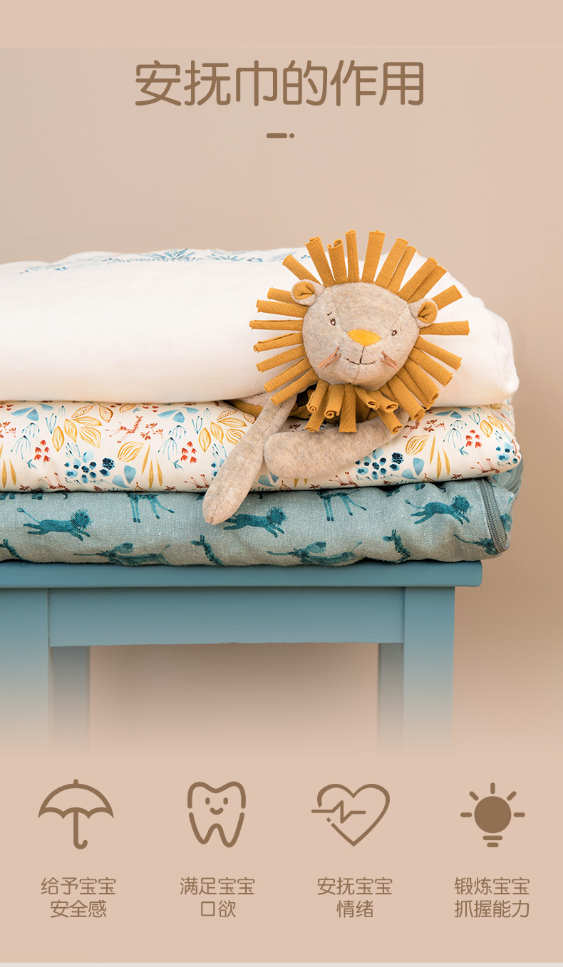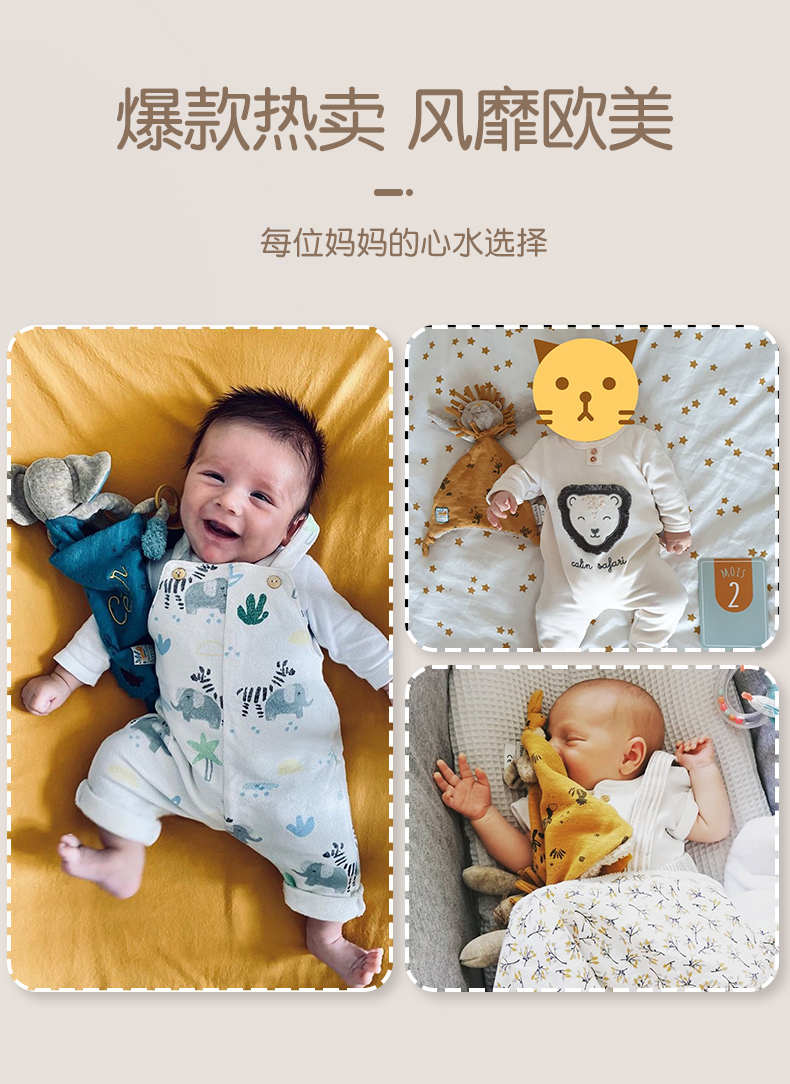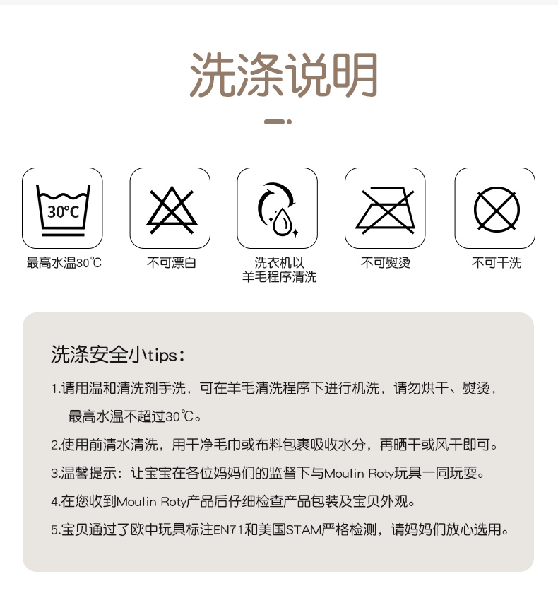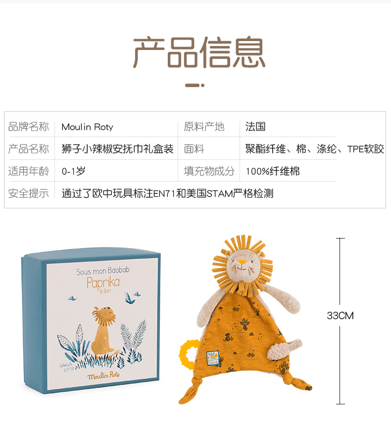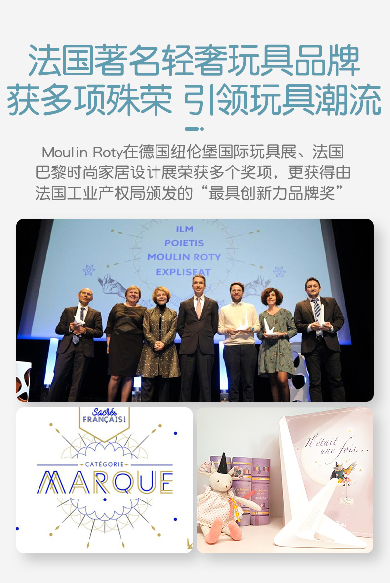法国进口moulinroty茉兰若缇牙胶安抚巾婴儿可入口玩偶抱睡奶嘴扣