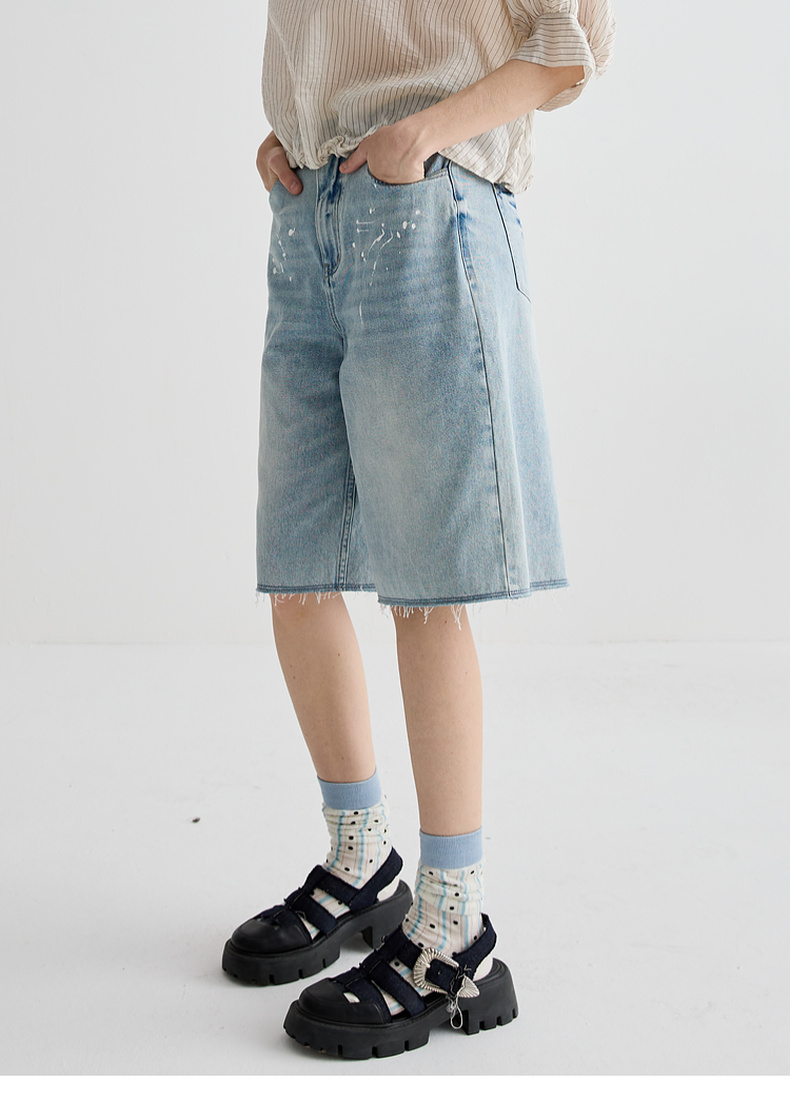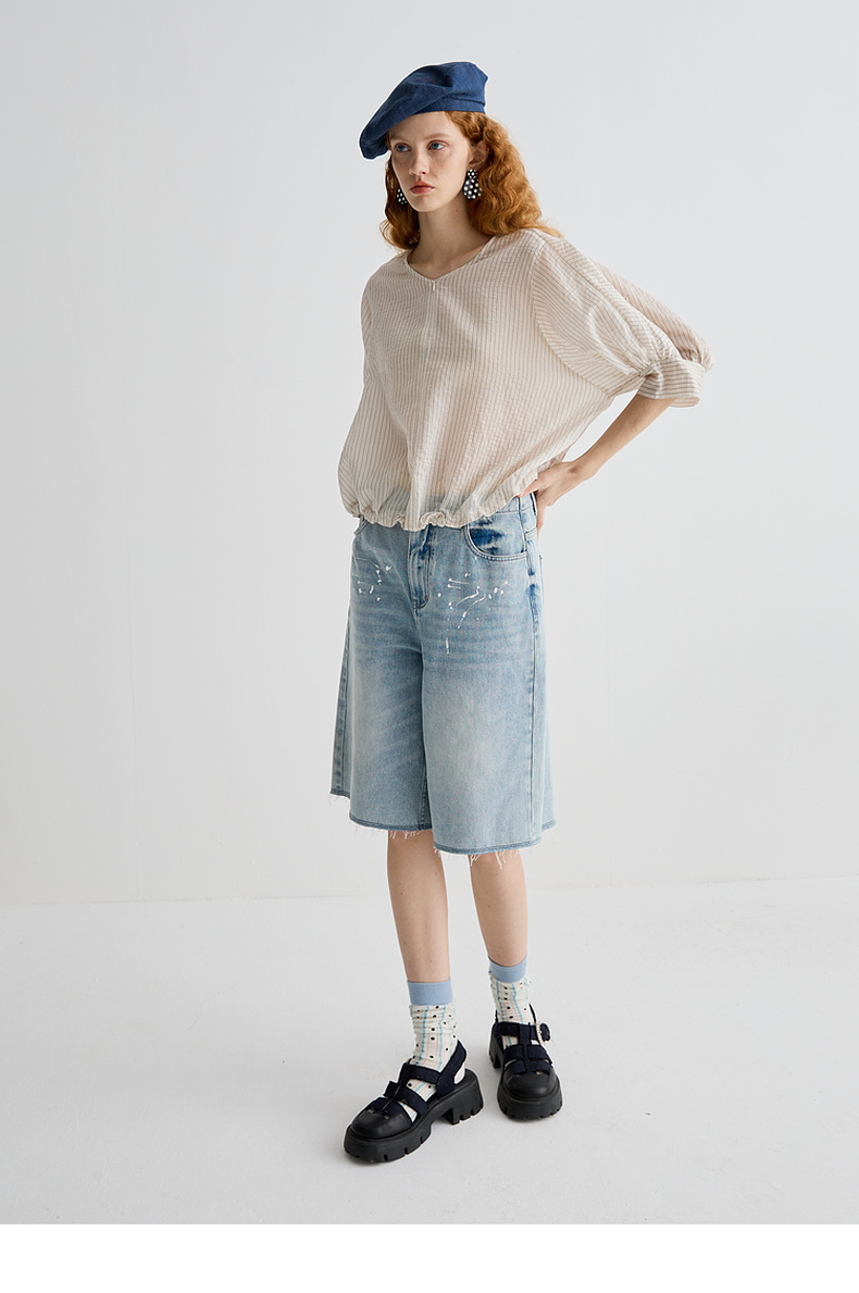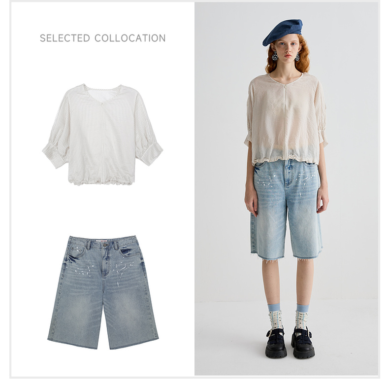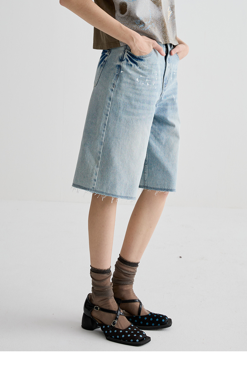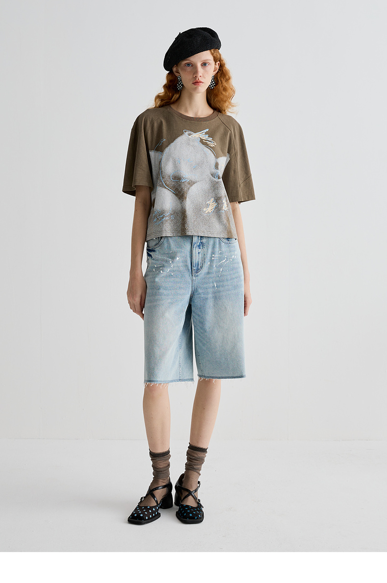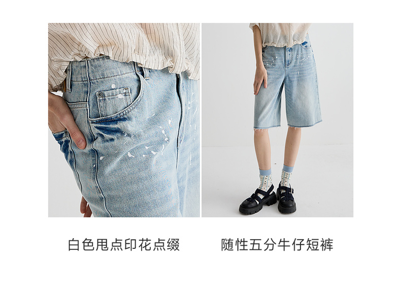 谜底牛仔裤女2025夏季新品复古风釉彩艺术五分牛仔裤子252MK0579