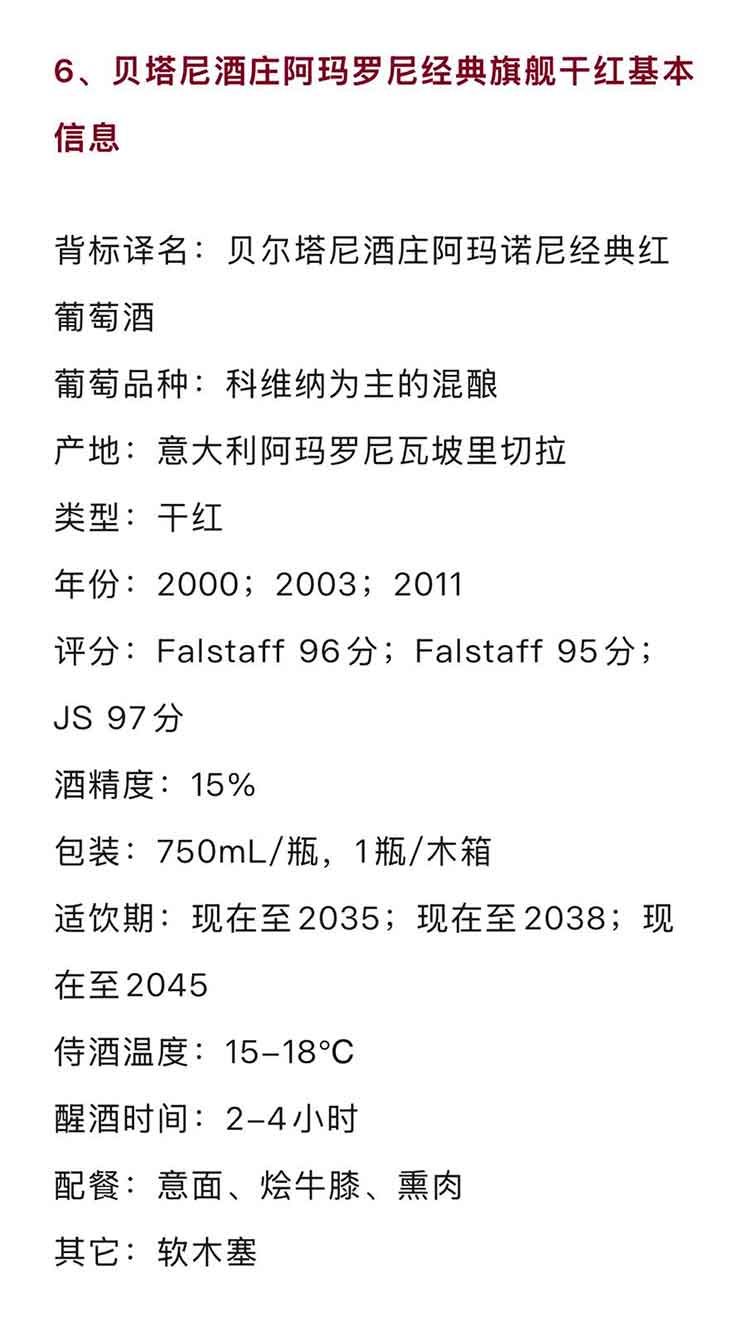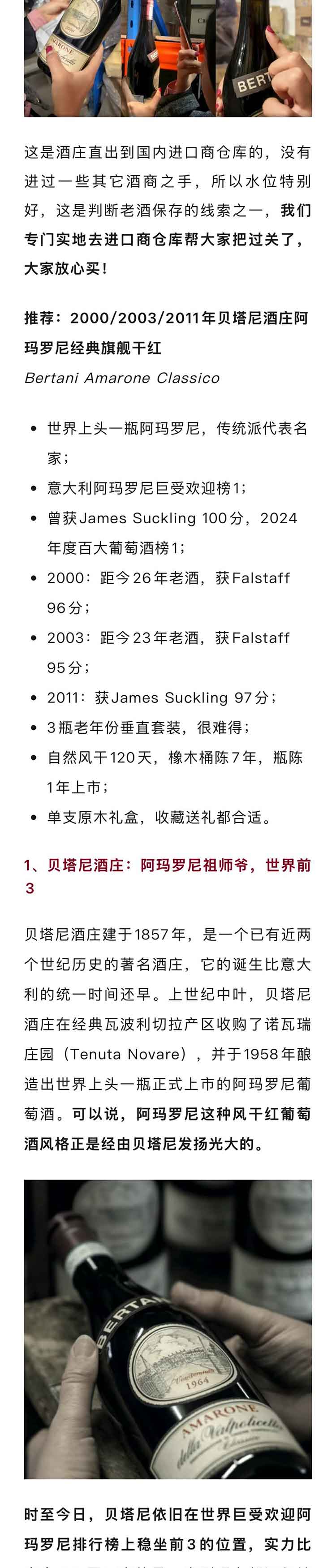 意大利2000/2003/2011年贝塔尼酒庄阿玛罗尼经典旗舰干红(可单买,可买垂直套装)