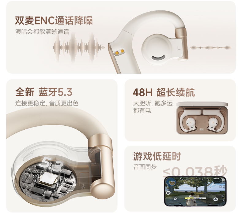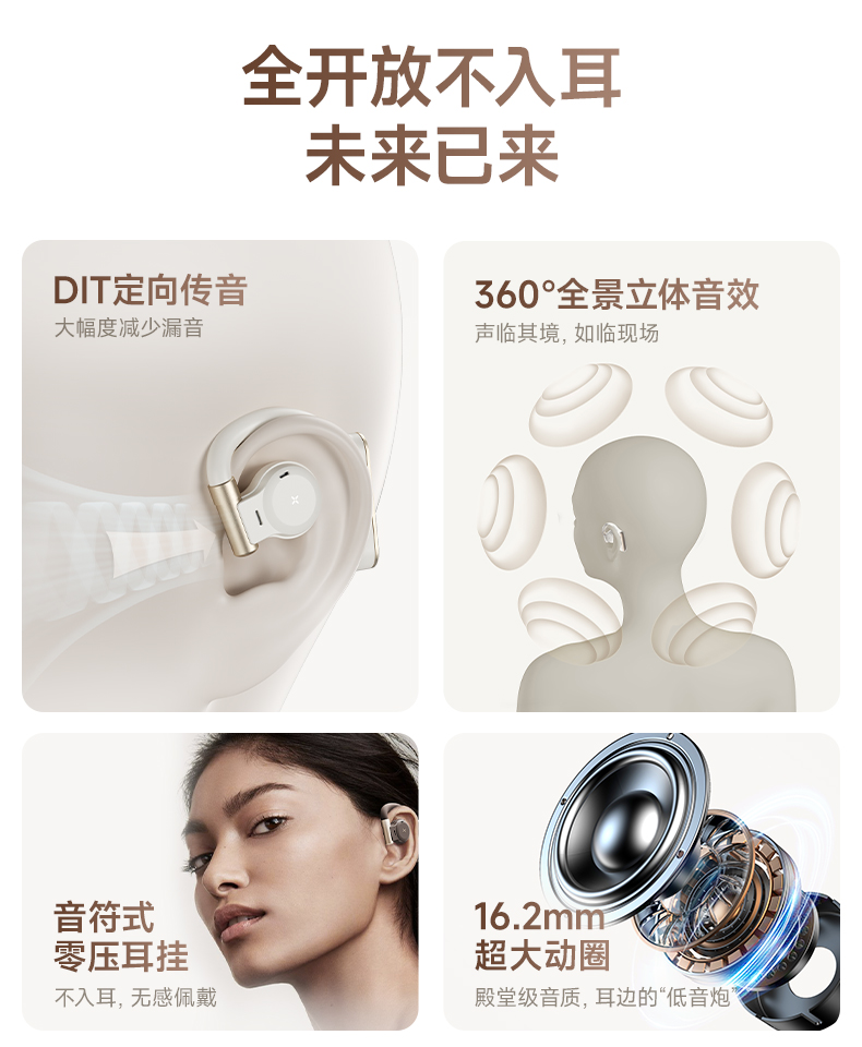 冇心Open Reno真无线开放式蓝牙耳机 挂耳式不入耳音乐运动骨传导概念耳机AE021