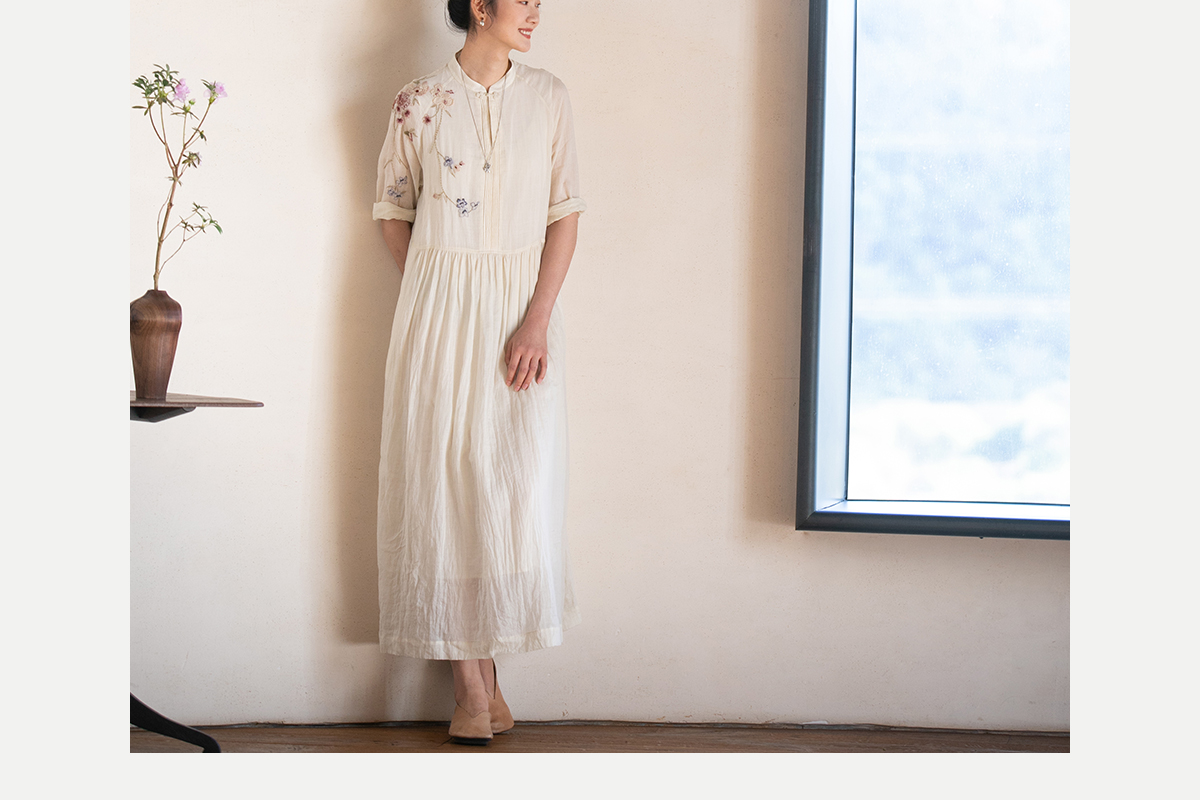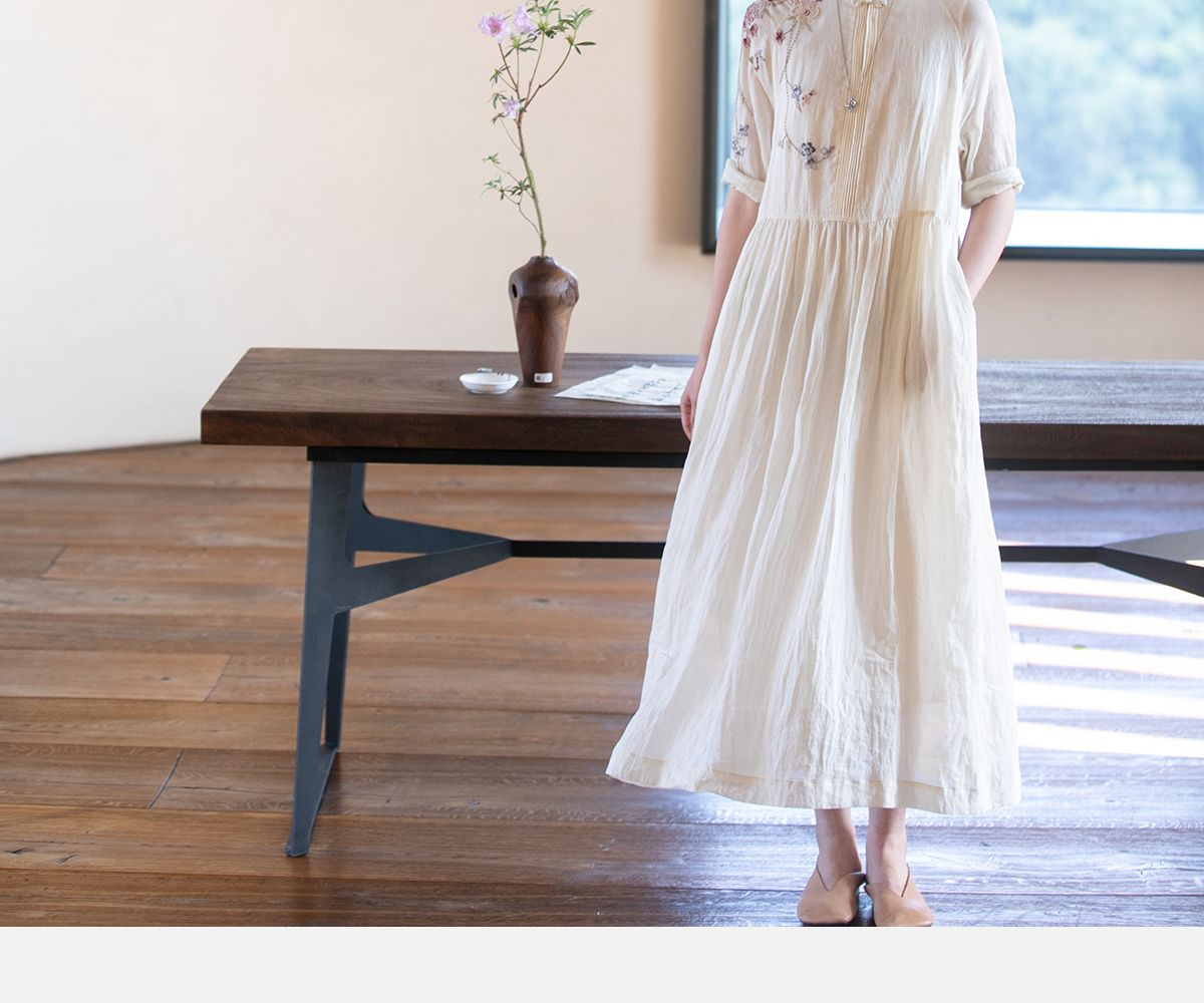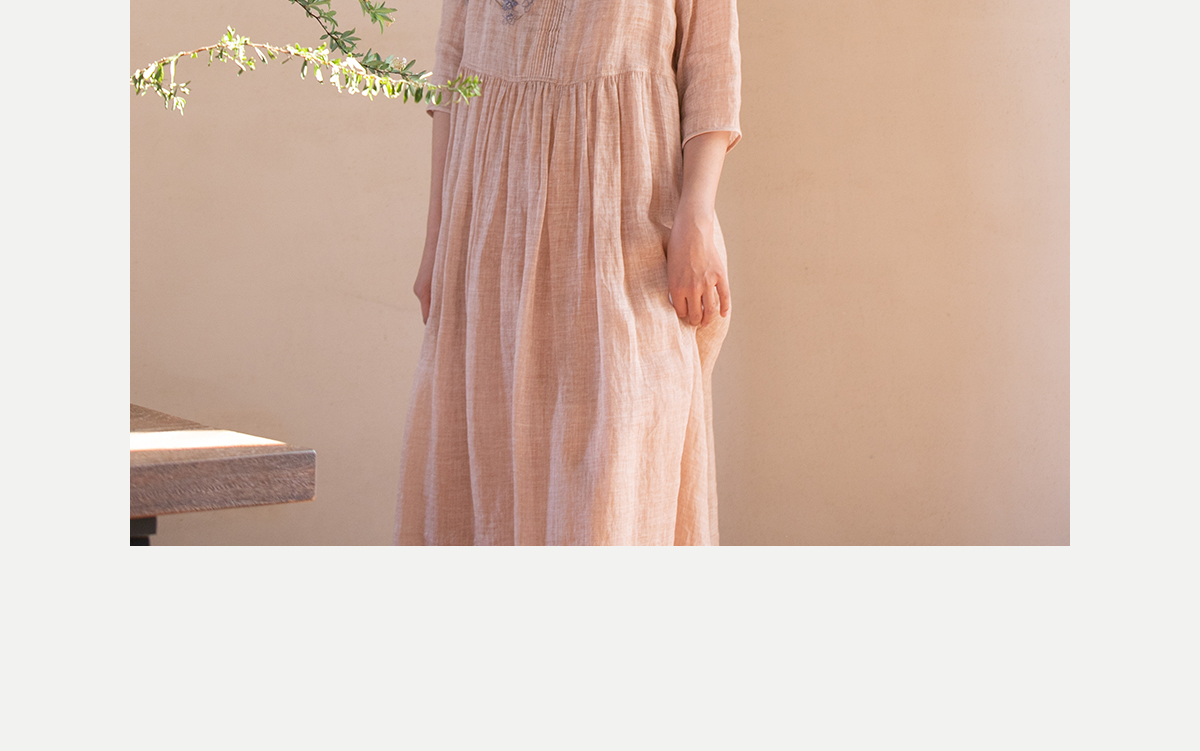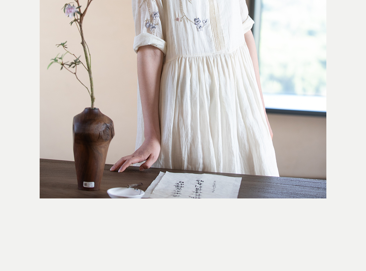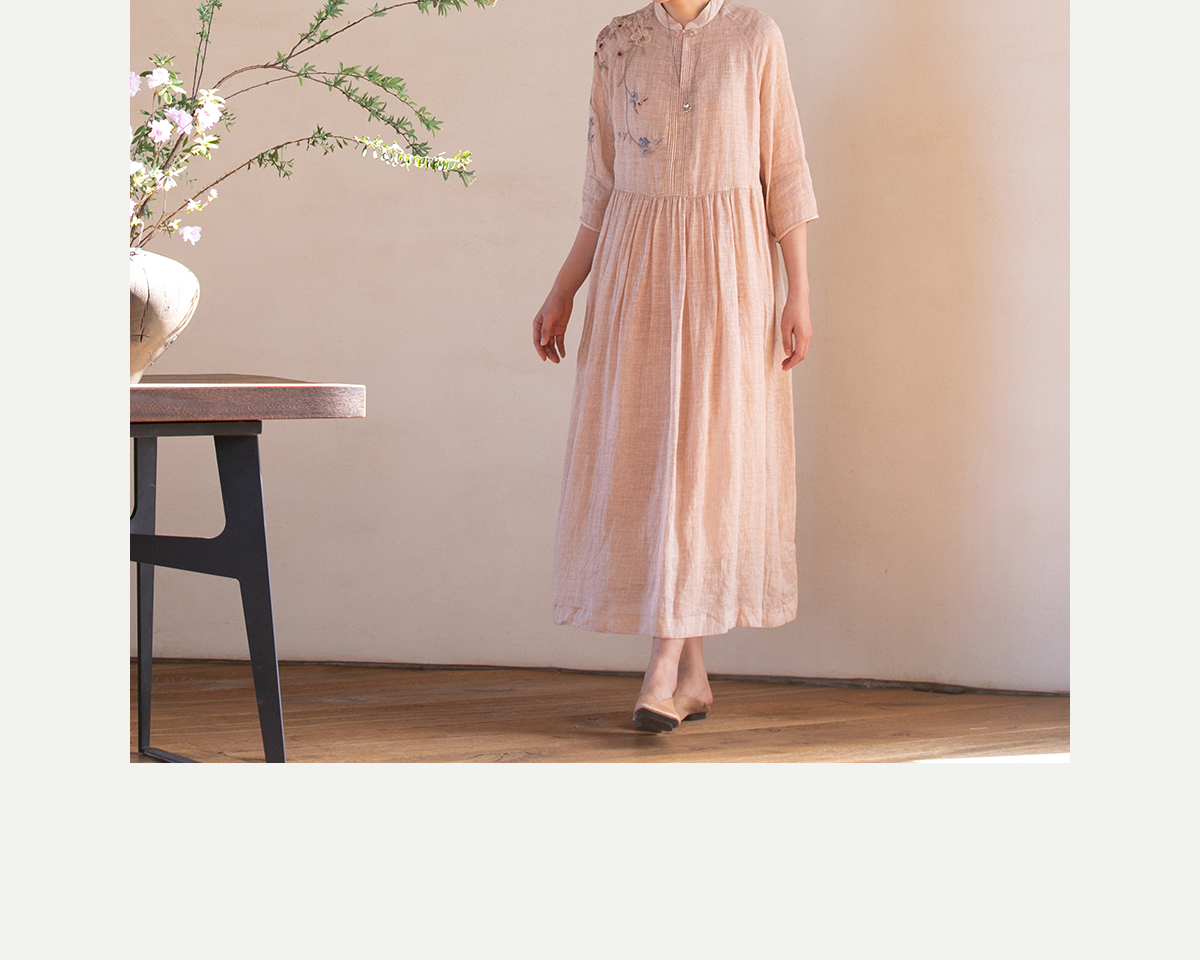 牧衣游原创 手工刺绣苎麻炒色连衣裙新品轻薄文艺气质长裙 清溪