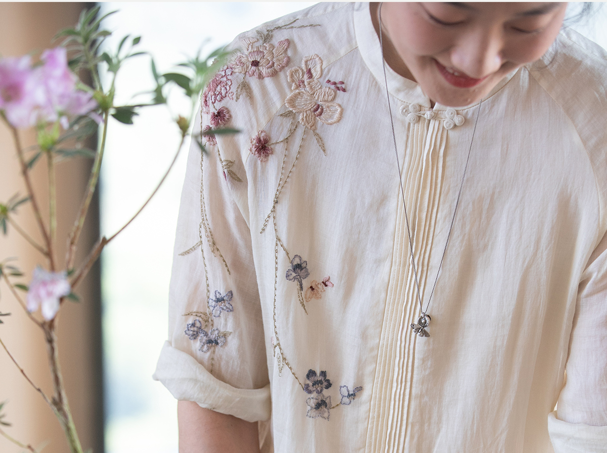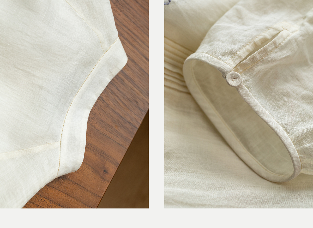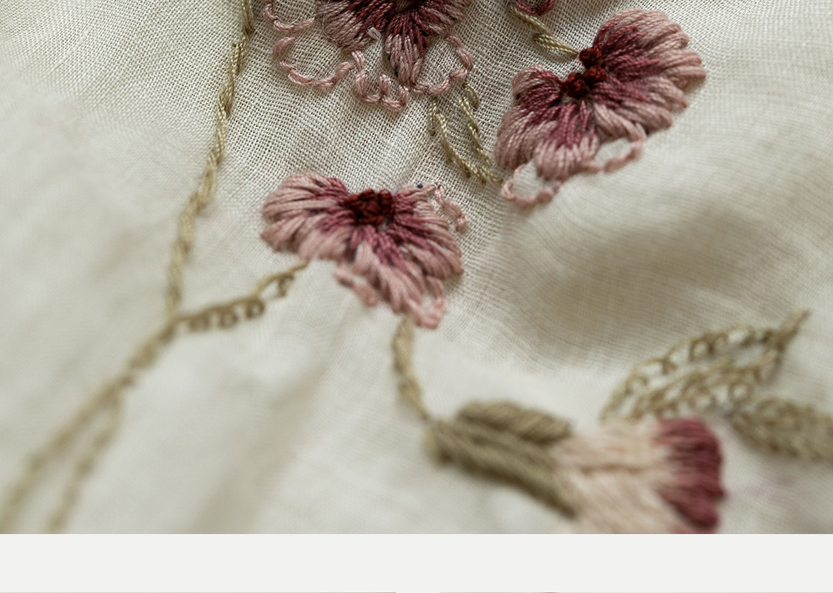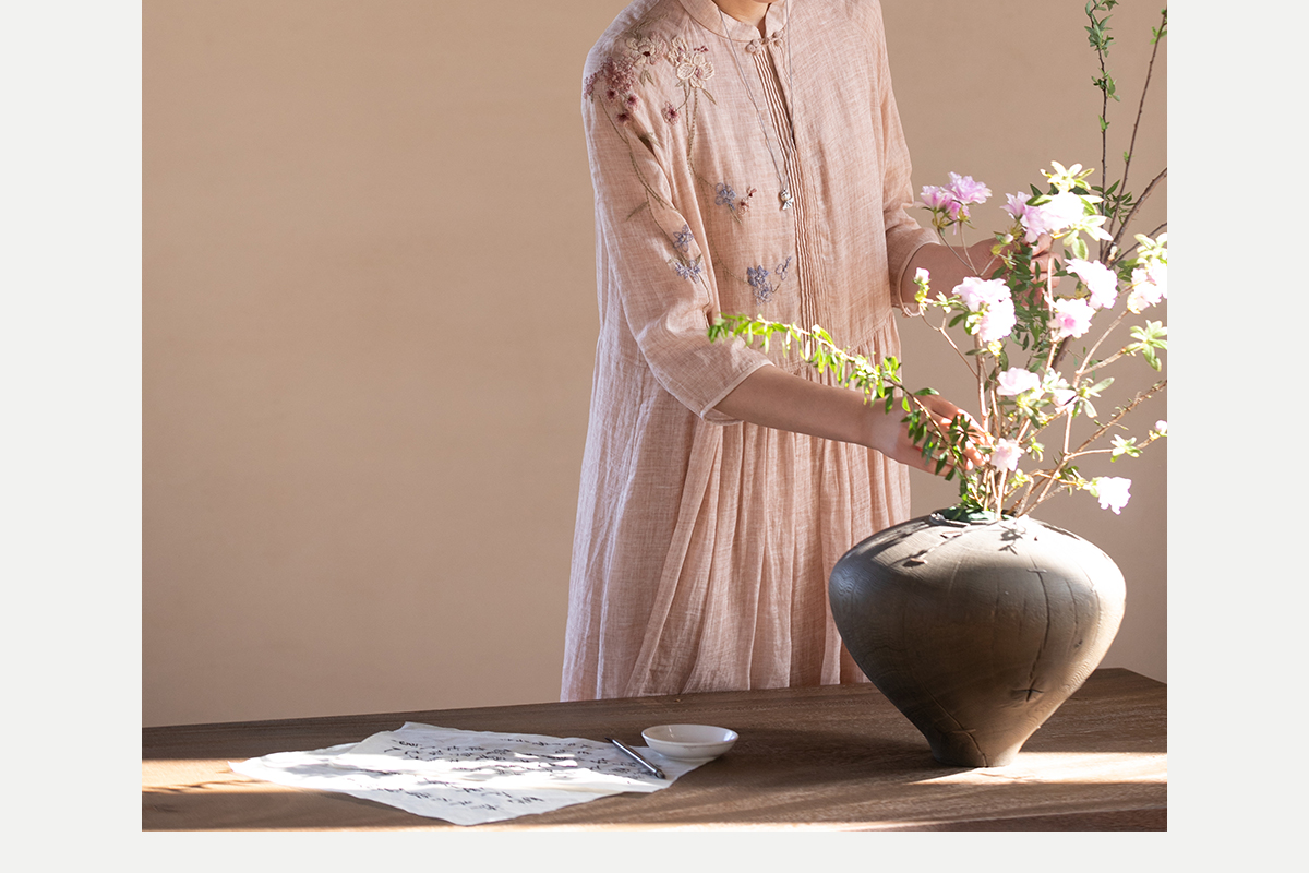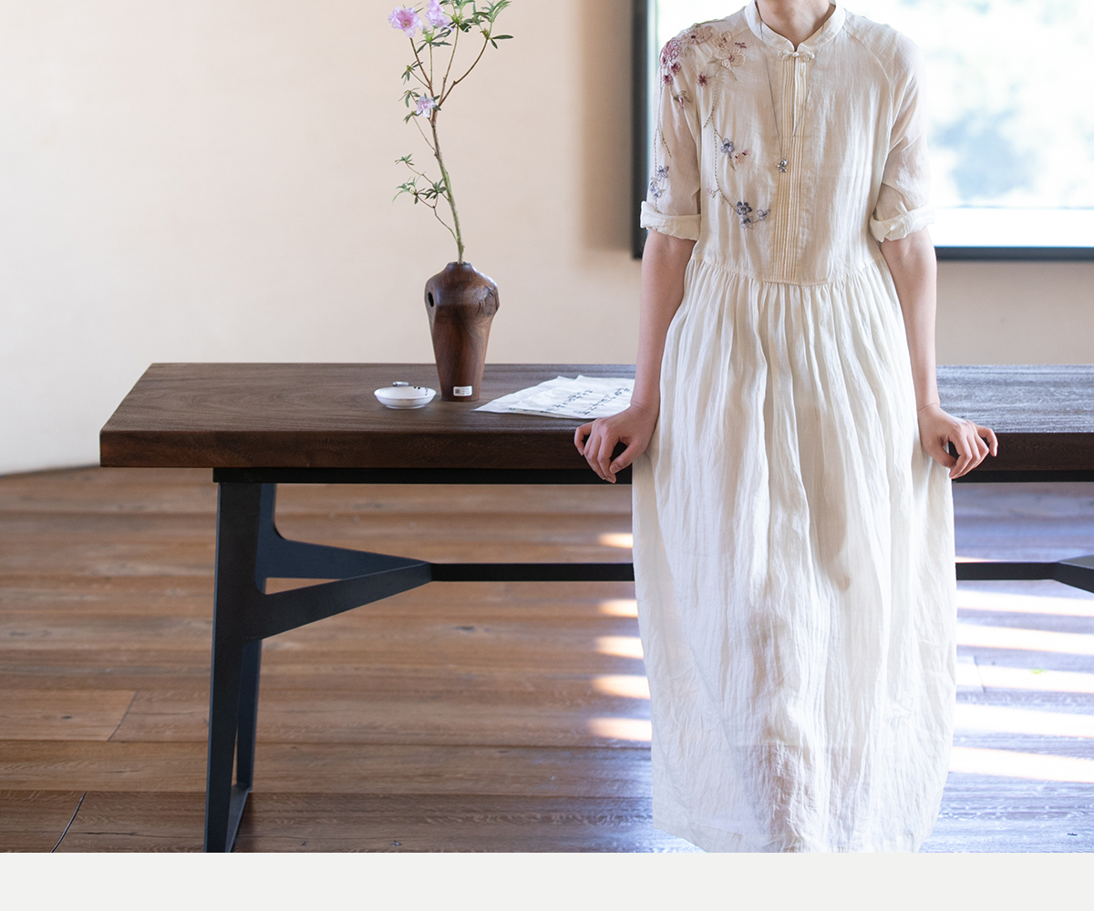 牧衣游原创 手工刺绣苎麻炒色连衣裙新品轻薄文艺气质长裙 清溪