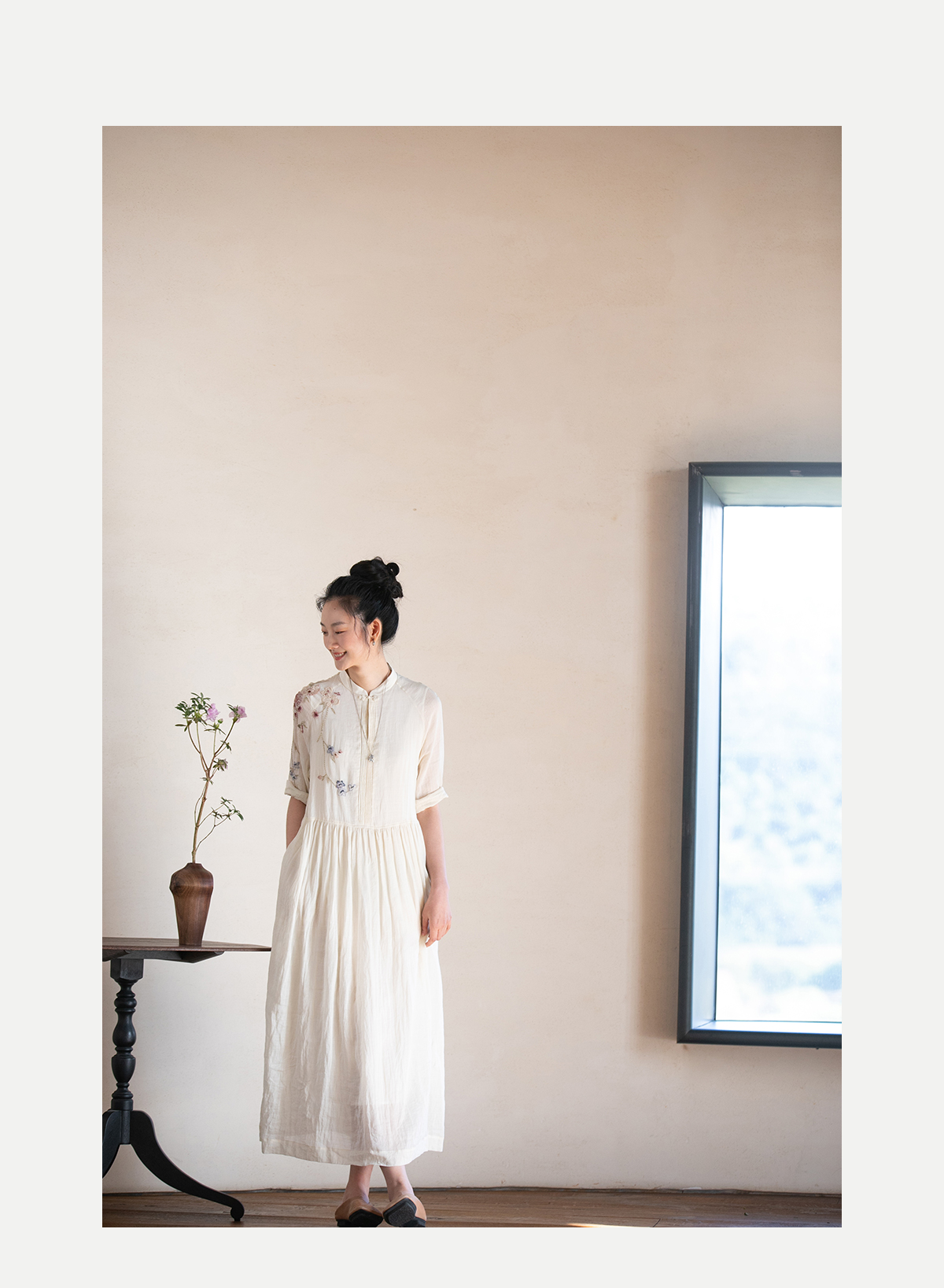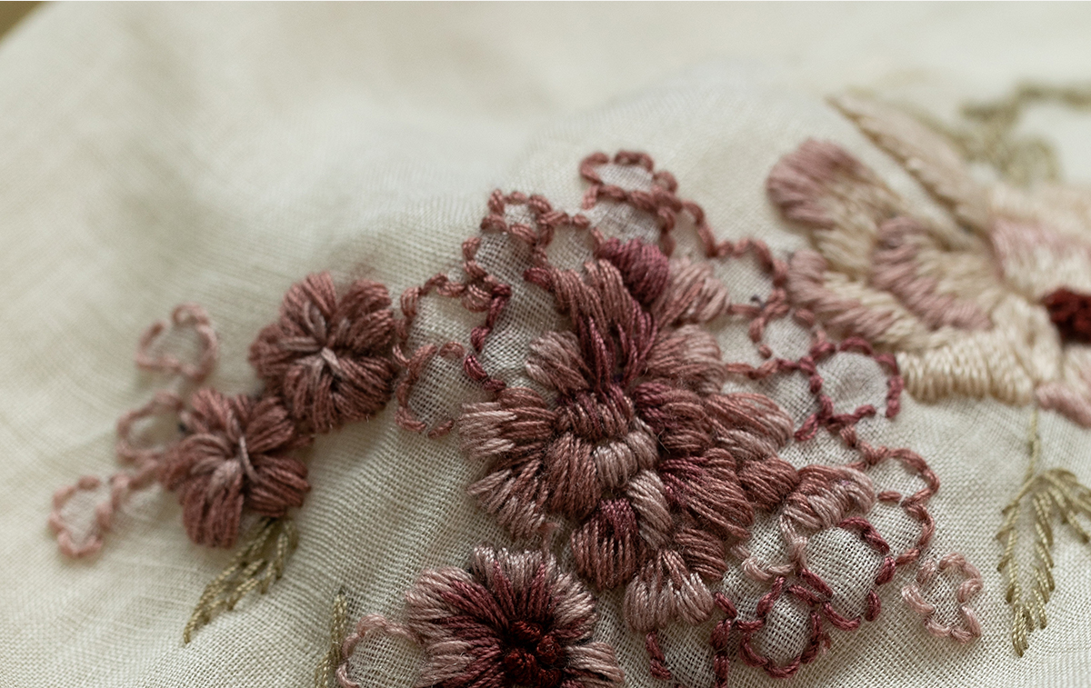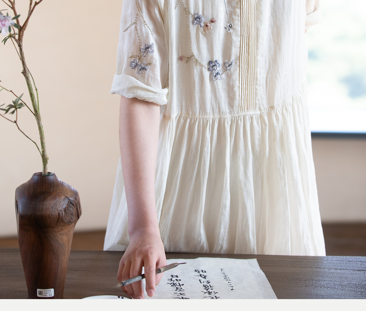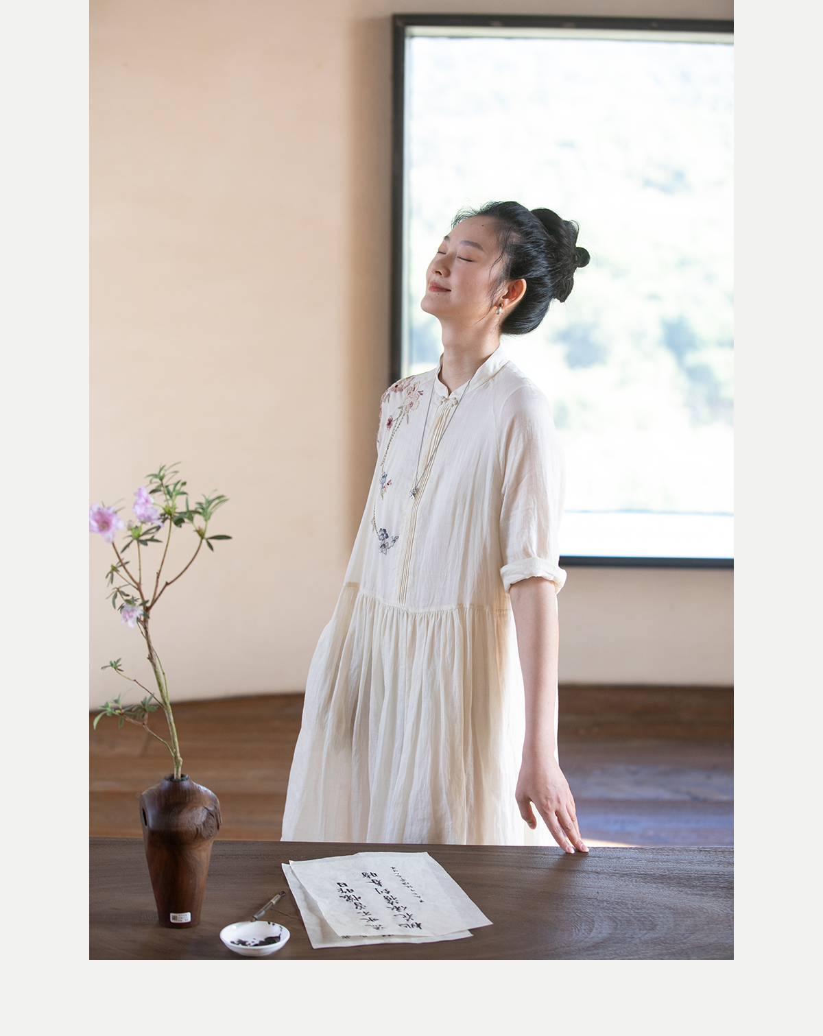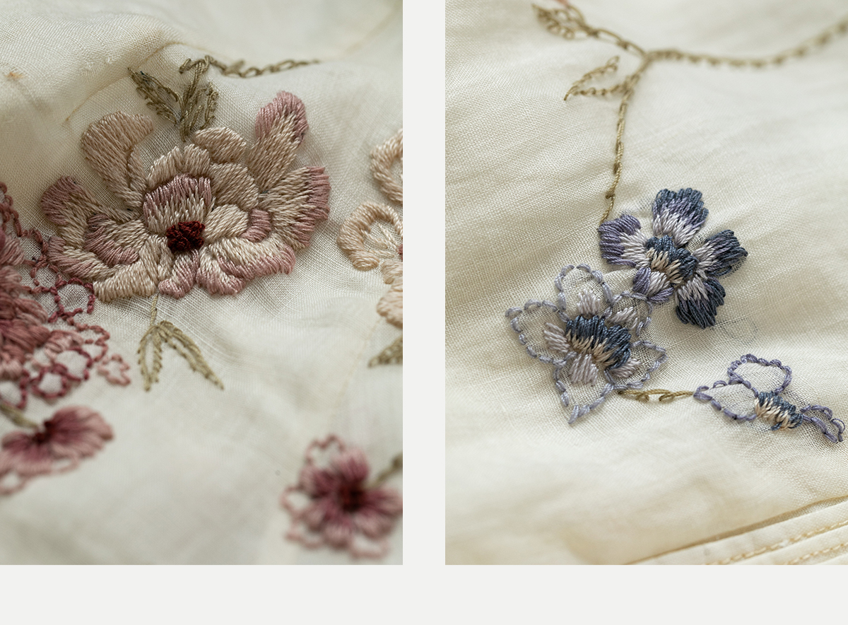 牧衣游原创 手工刺绣苎麻炒色连衣裙新品轻薄文艺气质长裙 清溪