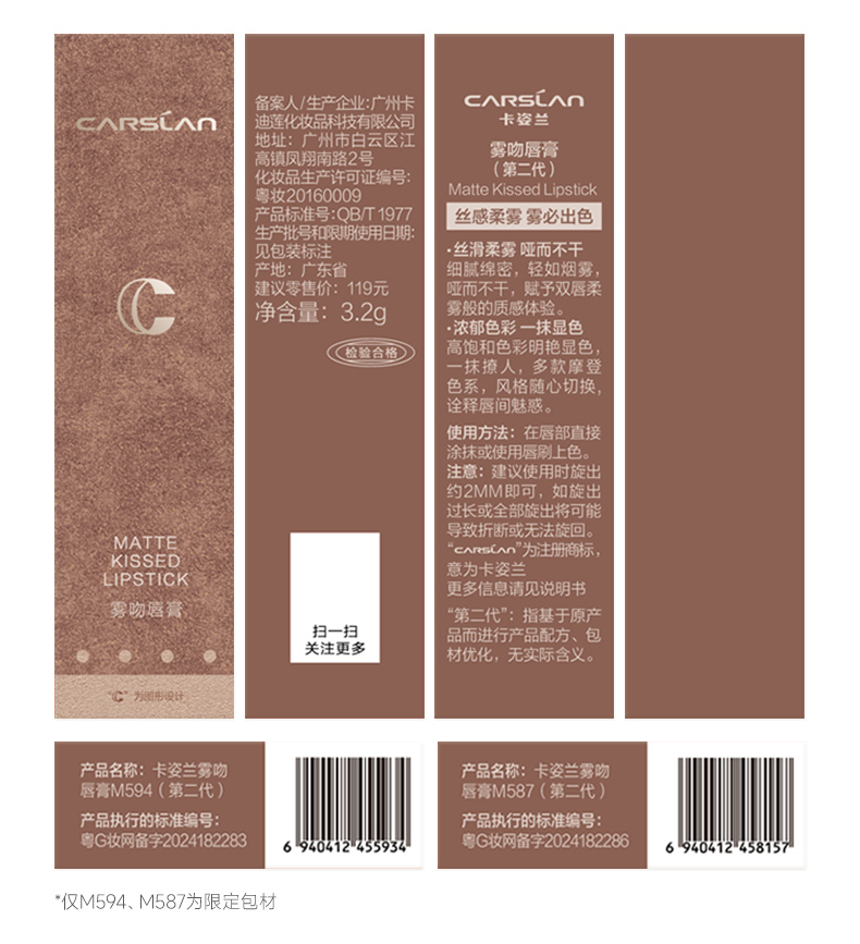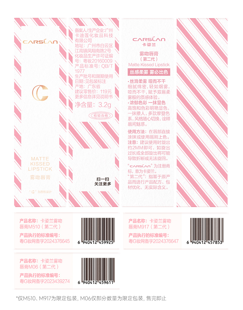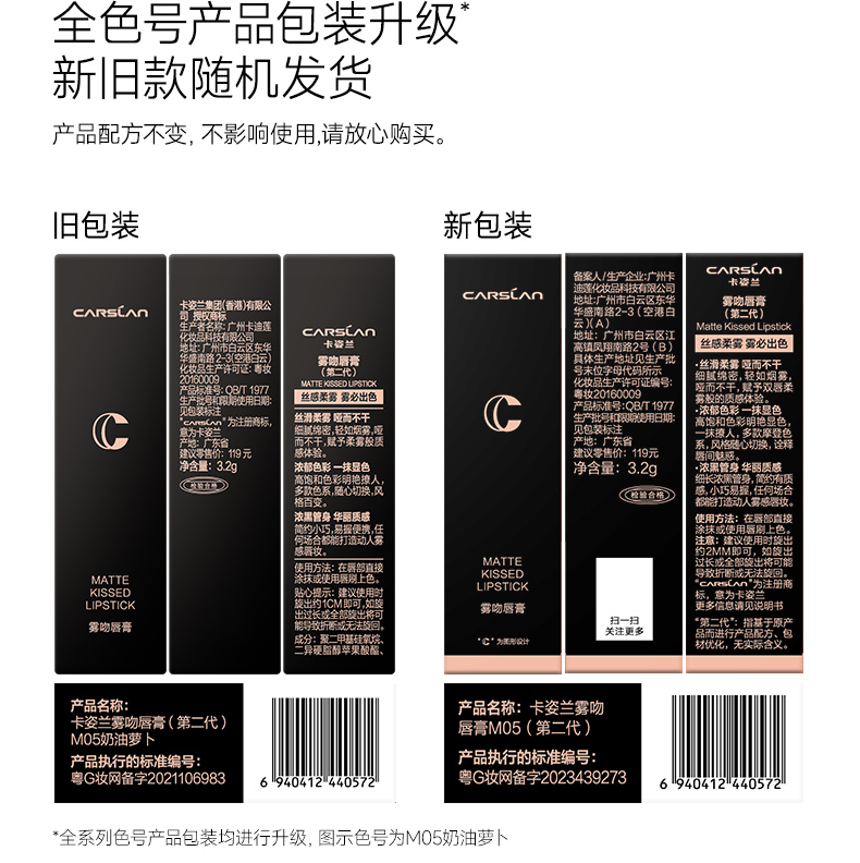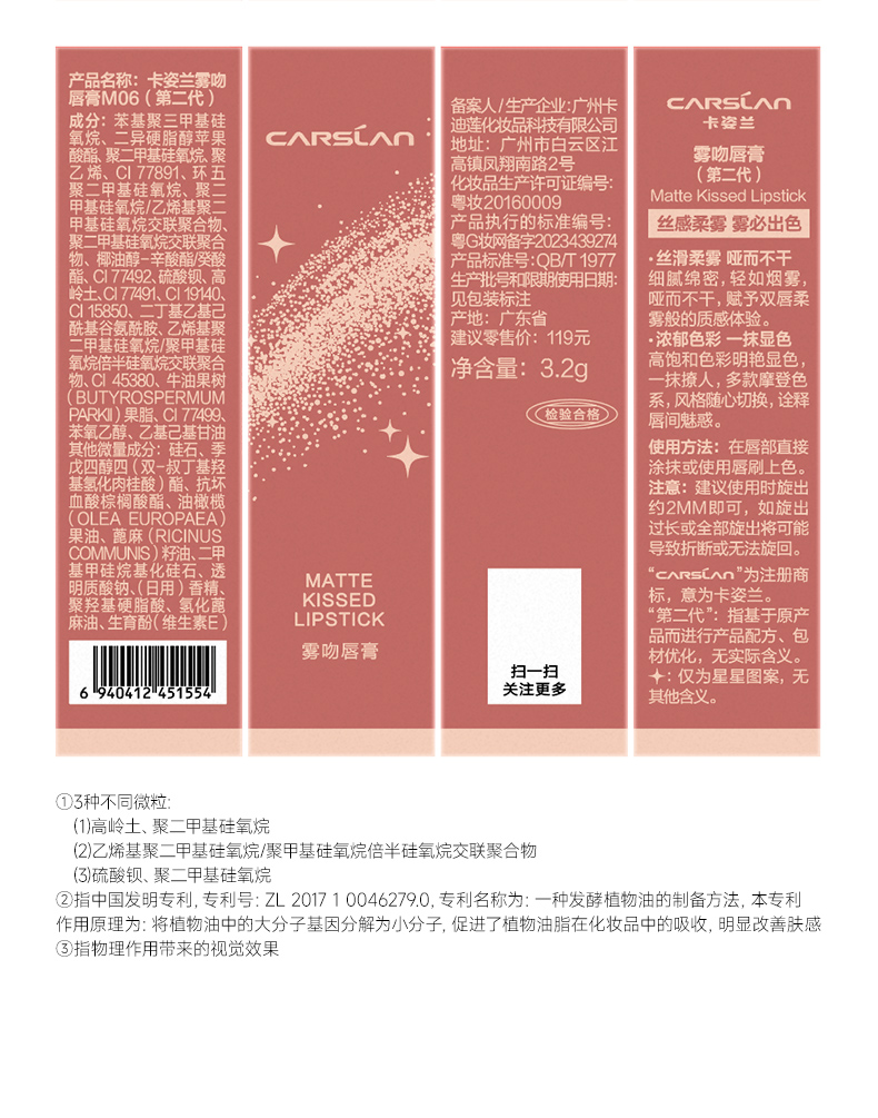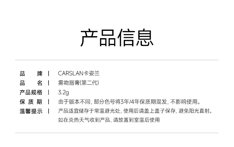 【卡姿兰Carslan】卡姿兰雾吻唇膏 第二代