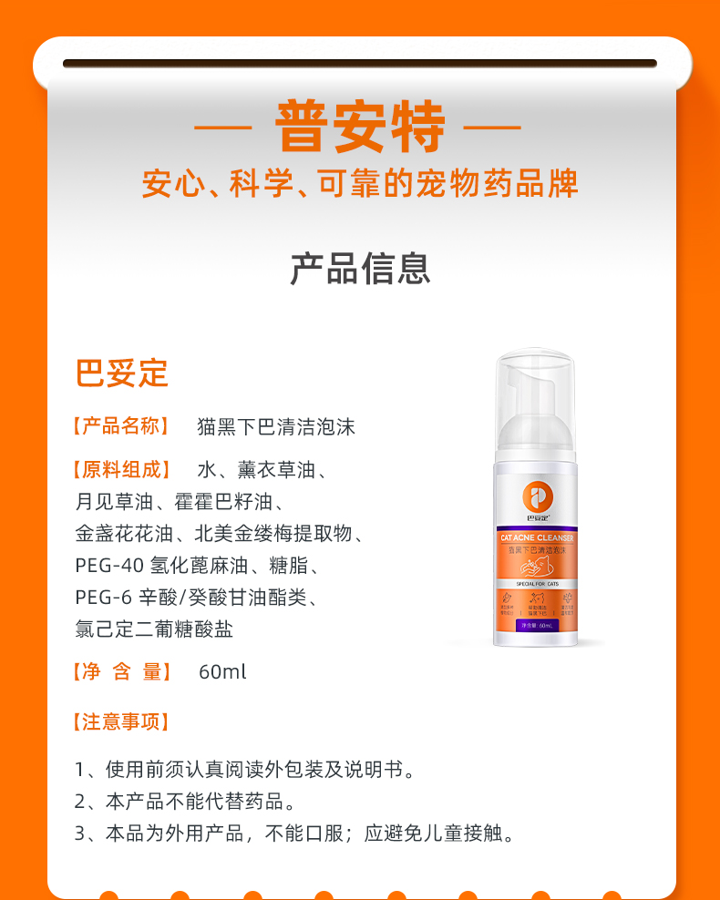 【买2送1】普安特巴妥定喷剂黑下巴护理液猫咪黑下巴(送湿纸巾+棉签)