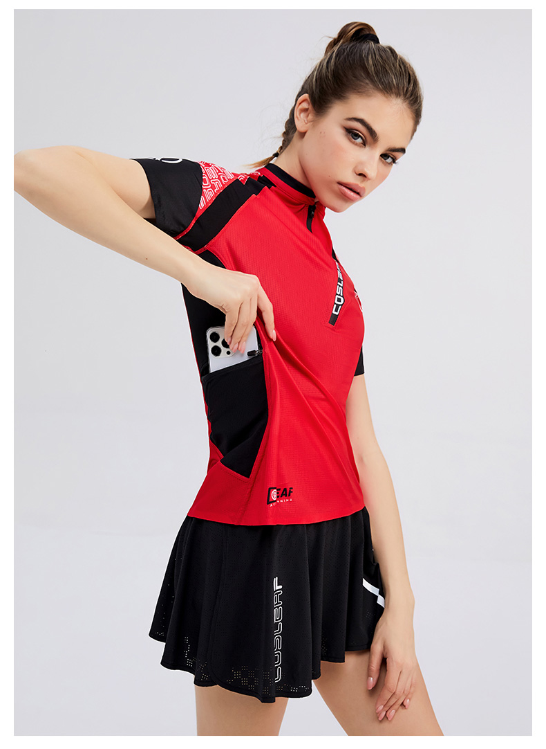 【清完不补】科里芙半拉链上衣运动跑步夏季修身弹力带口袋短袖健身衣