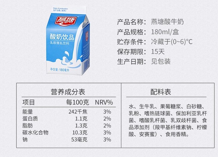 【7.9元一排】(一组4盒装)燕塘180盒装原味酸奶