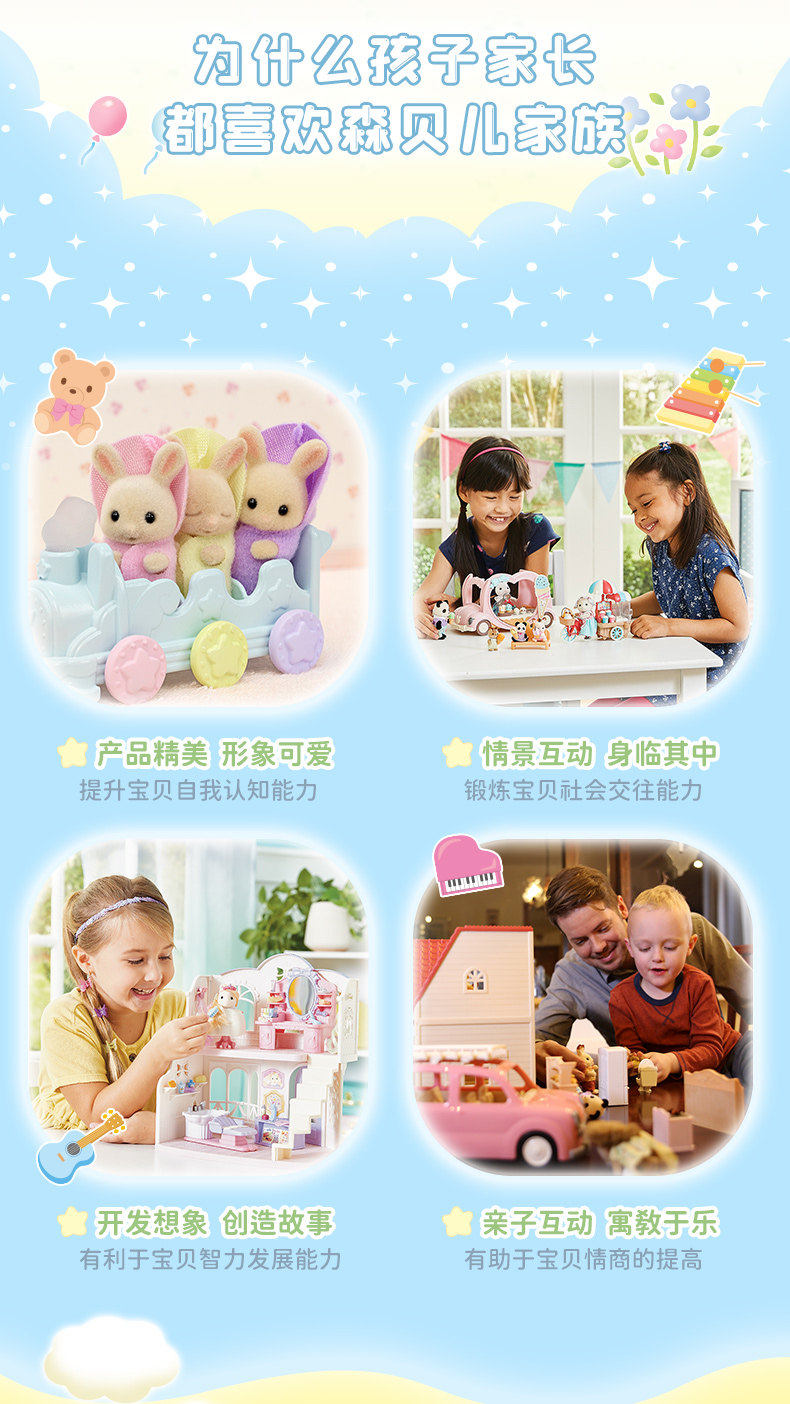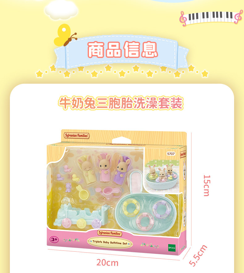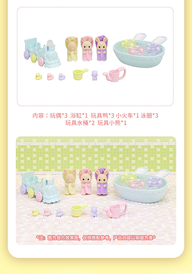 森贝儿家族牛奶兔三胞胎洗澡套装女孩过家家仿真儿童玩具玩偶