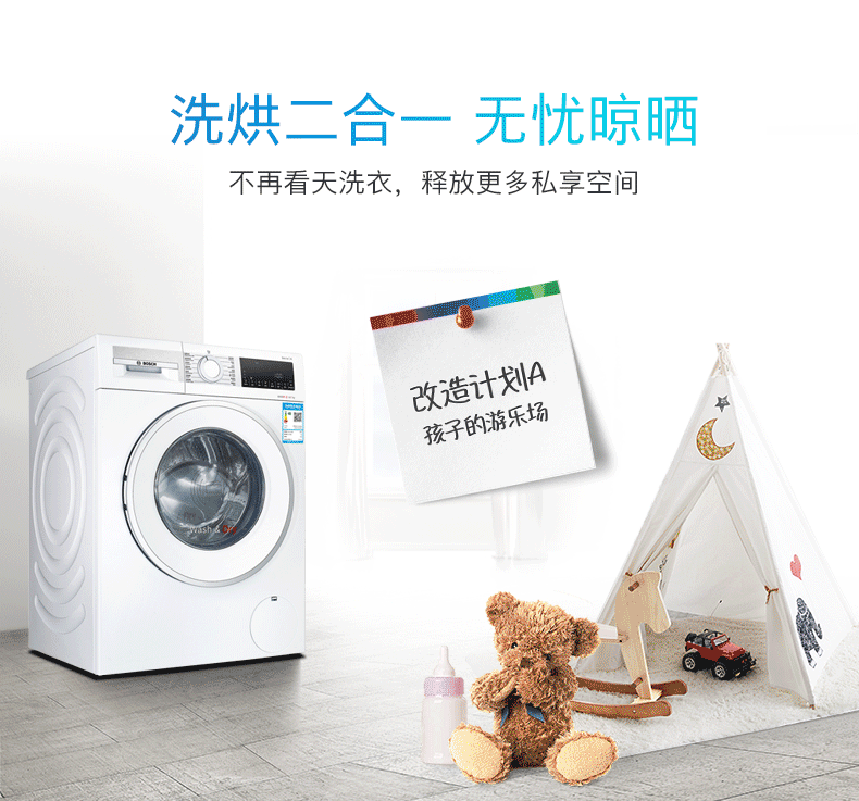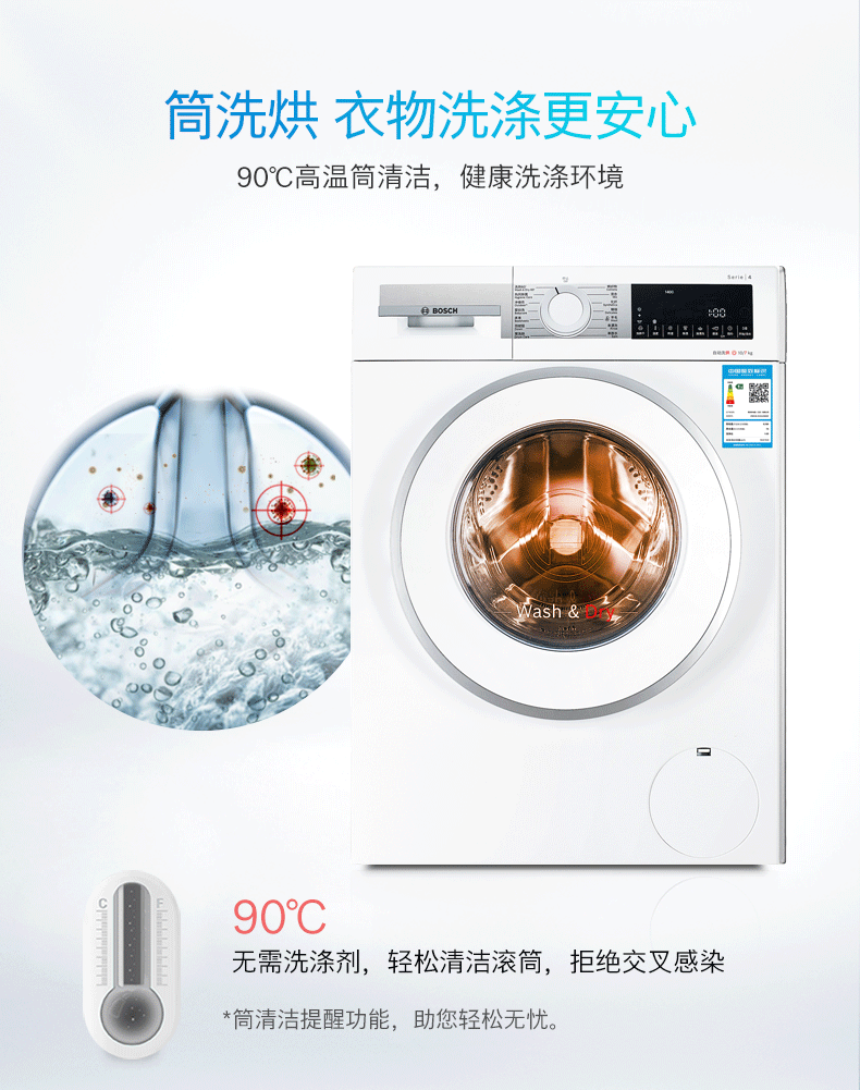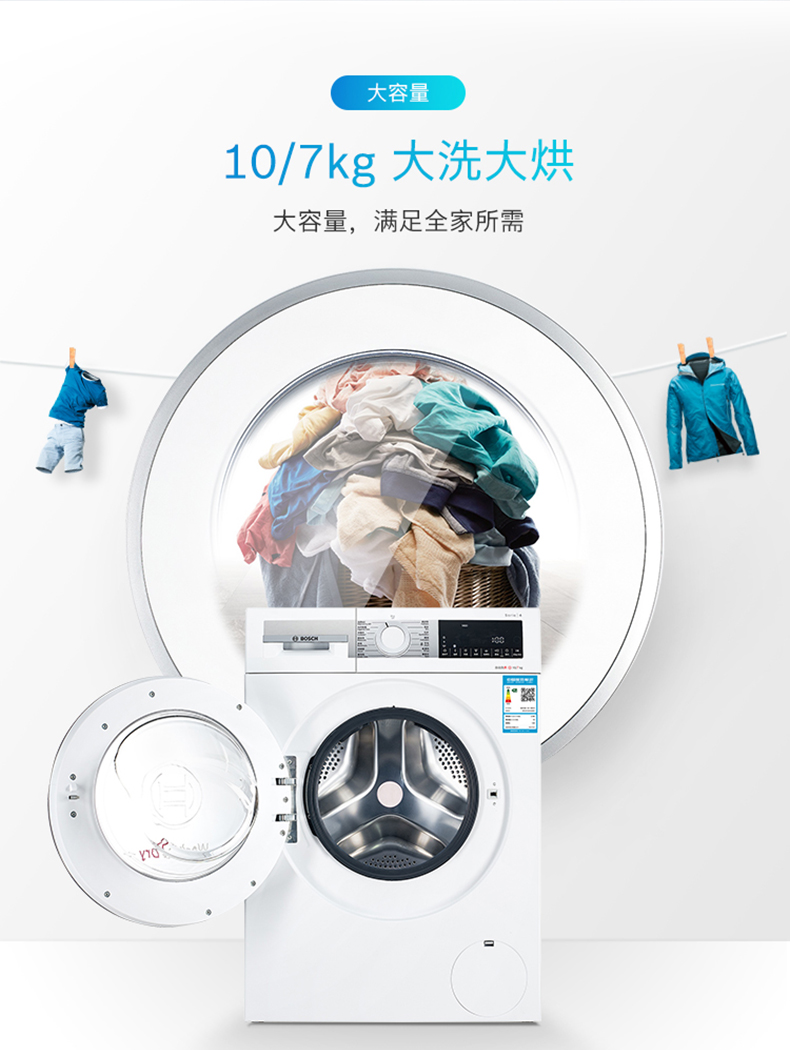 博世(BOSCH) 10公斤洗7公斤烘 大容量全自动洗烘一体机 自动除渍 高效低噪 家用滚筒洗衣机XQG100-WJUL45000W