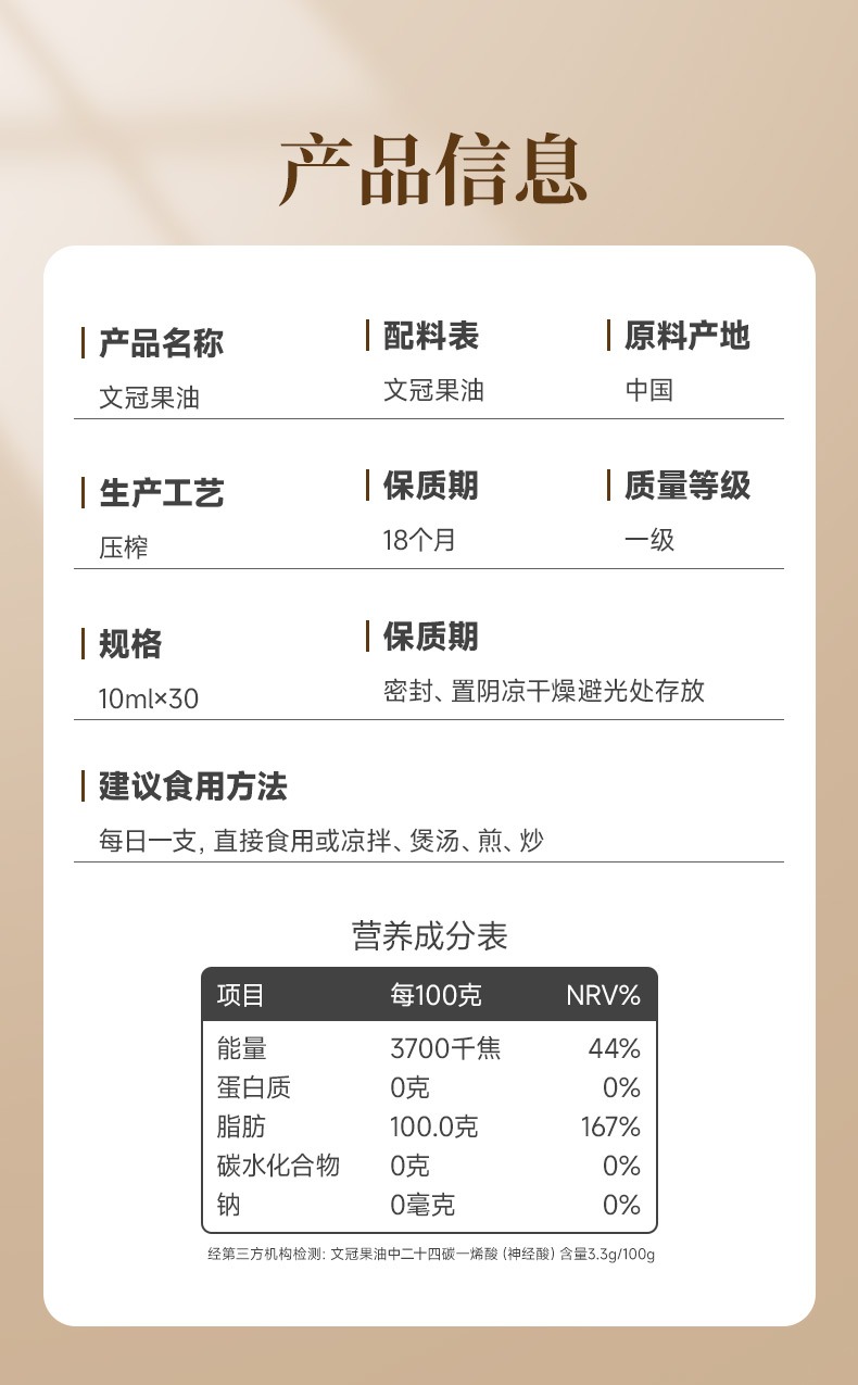 全食物日记中枢实验室文冠果油300ml(10ml*30瓶)