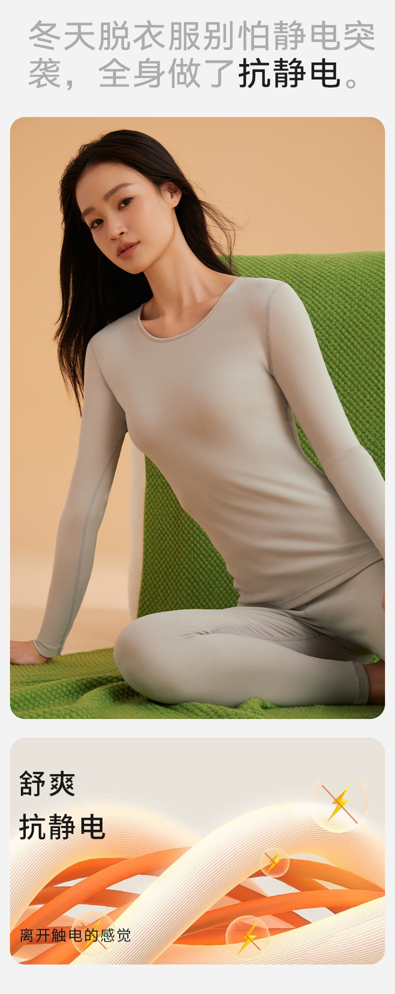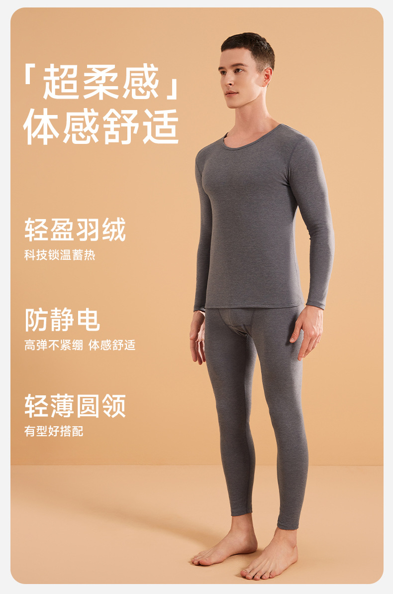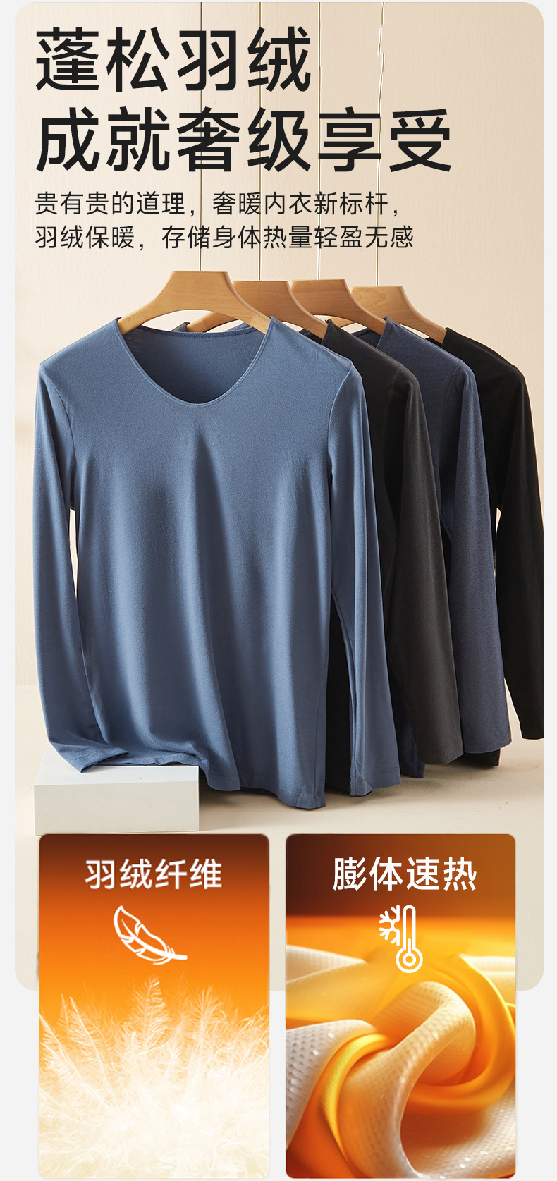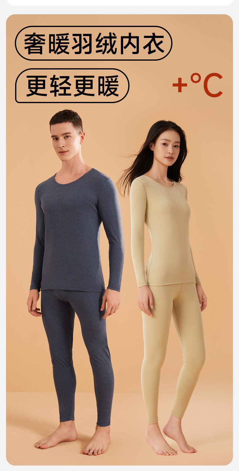 可以“养肤”的贴身保暖 一眼惊艳,让人爱不释手的温柔触感!新款羽绒蛋白养肤女士保暖内衣套装秋冬情侣内搭圆领秋衣秋裤打底