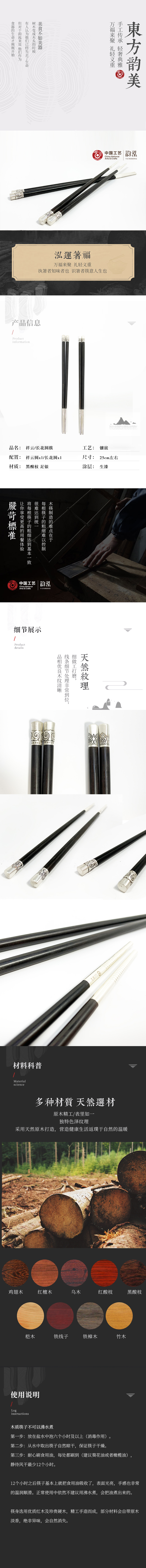 银木镶嵌祥云长花圆筷456/976