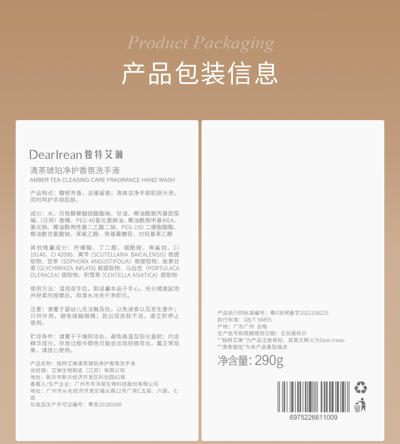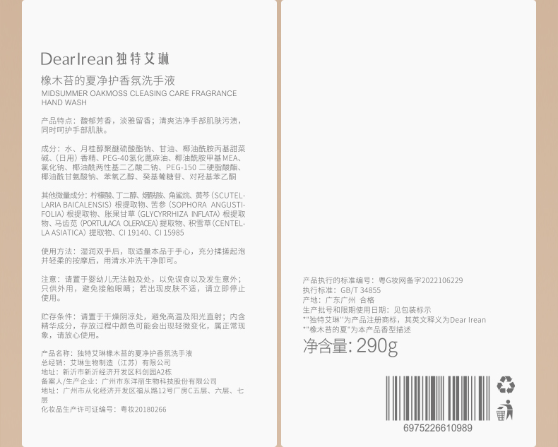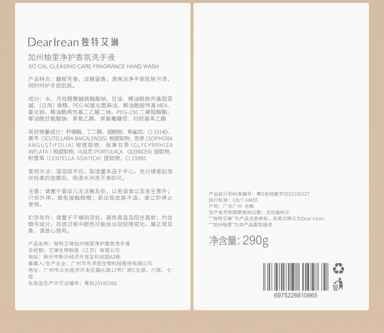 【立减40💥】独特艾琳香氛洗手液290g✨家用高级香✨泡沫洁净易冲洗