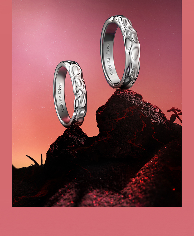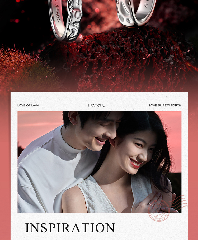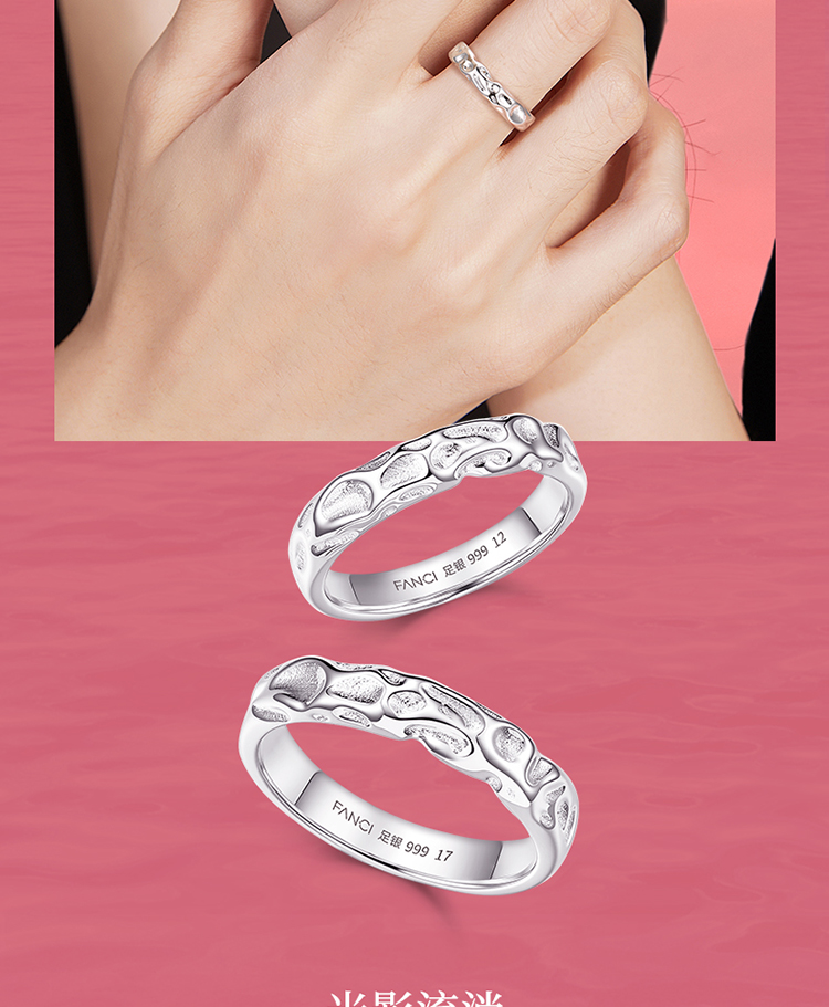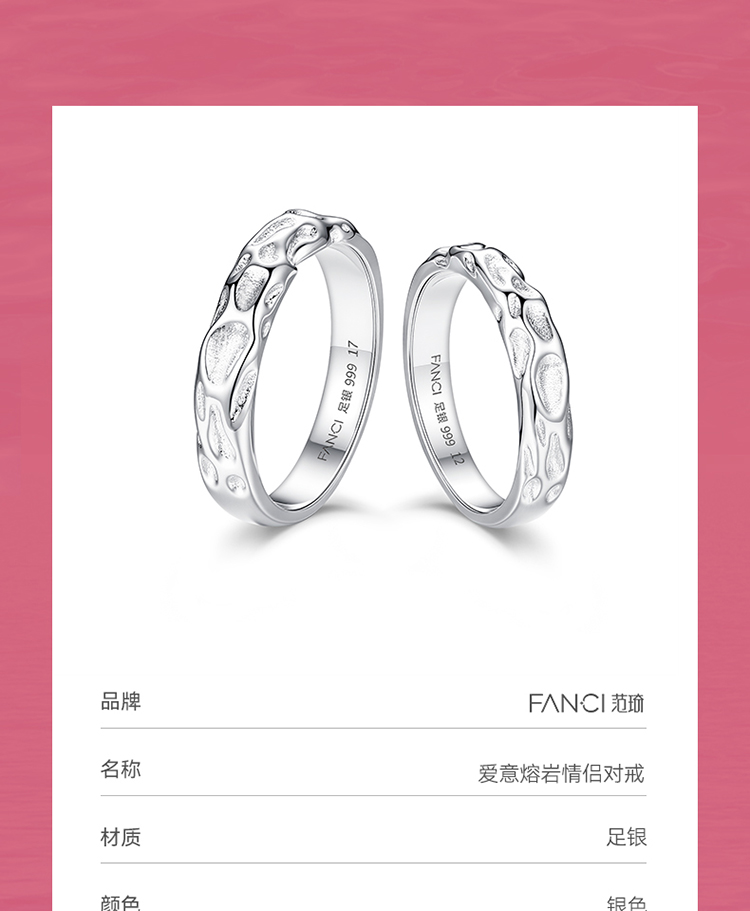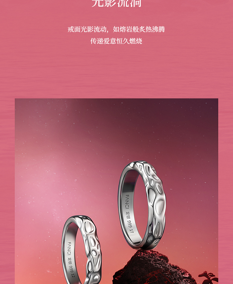 FANCI范琦 爱意熔岩对戒 小众闭口戒指 999足银宽口戒指