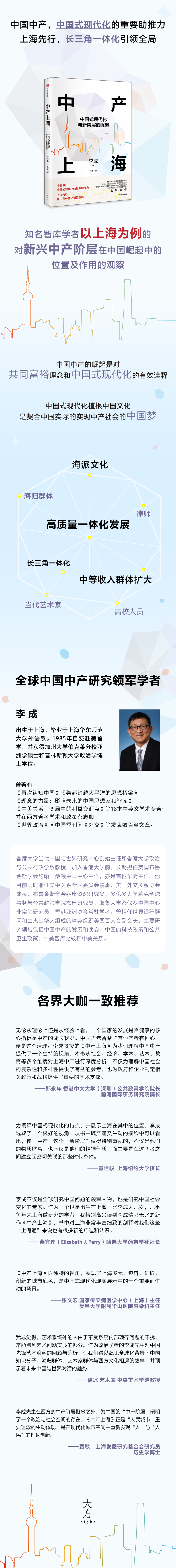 李成不仅是全球研究中国问题的军人物,也是研究中国社会变化的专家。作为一个也是出生在上海,比李成大几岁,几乎每年来上海做研究的学者,我特别高兴读到李成精彩无比的新作《中产上海》。书中对上海非常丰富细致的剖释对我们这些“上海通”来说也有很多新的启迪和认识。