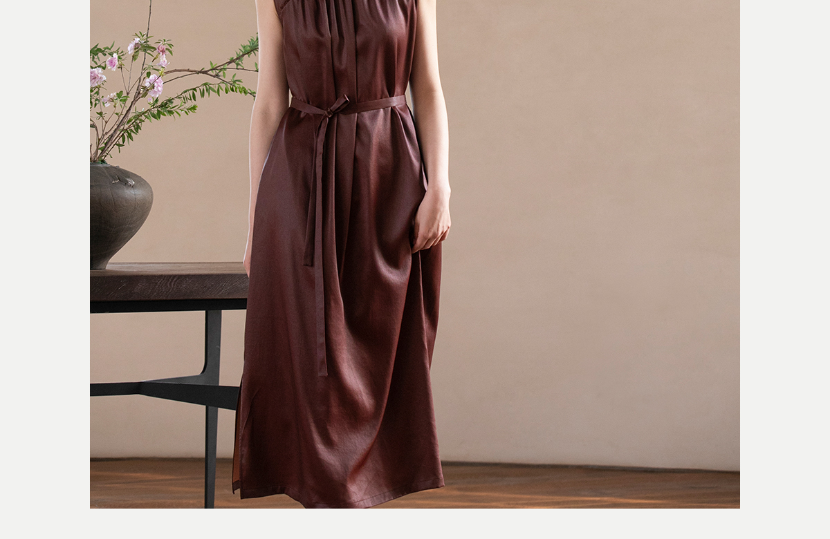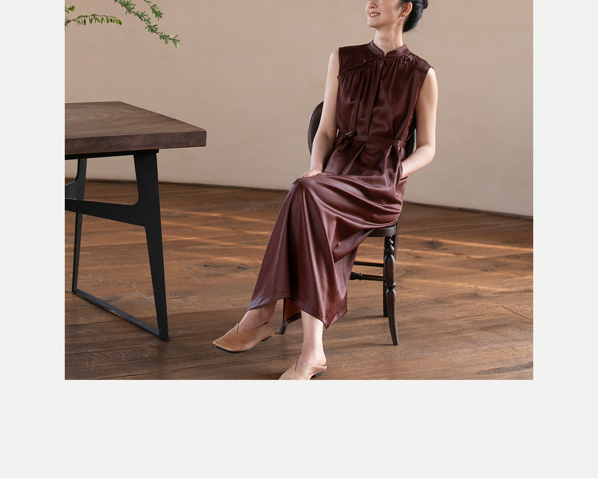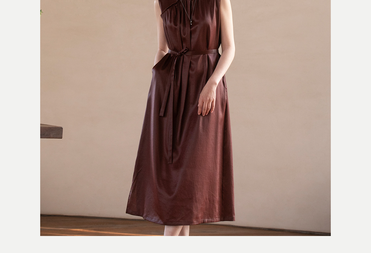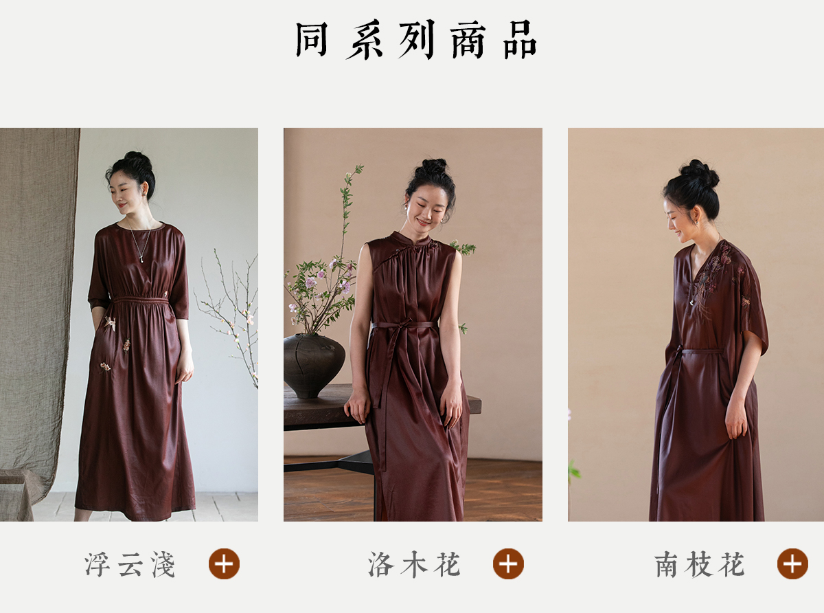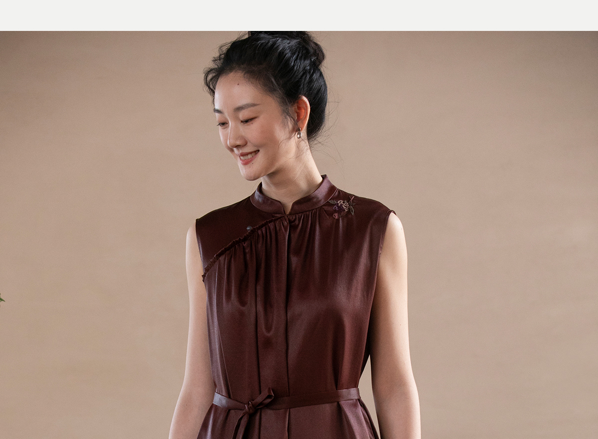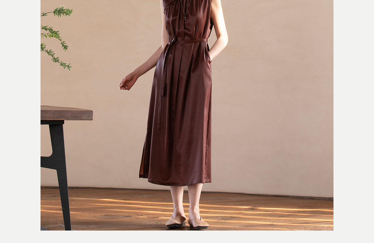 牧衣游原创 醇正薯莨红云纱手工刺绣连衣裙气质无袖长裙 洛木花