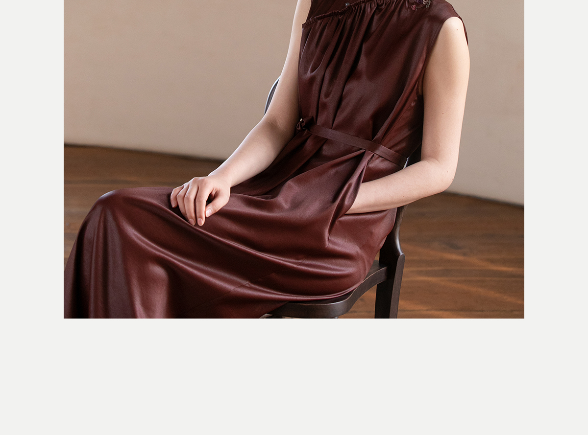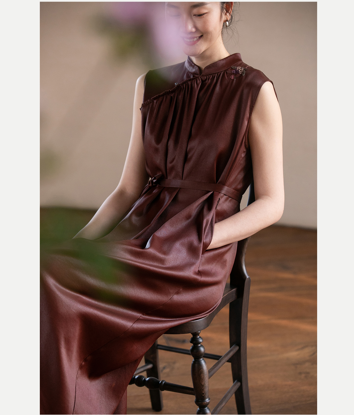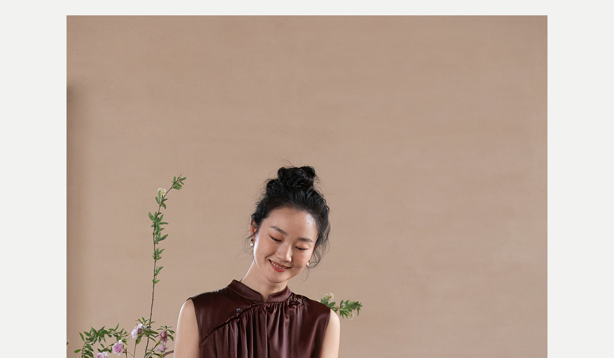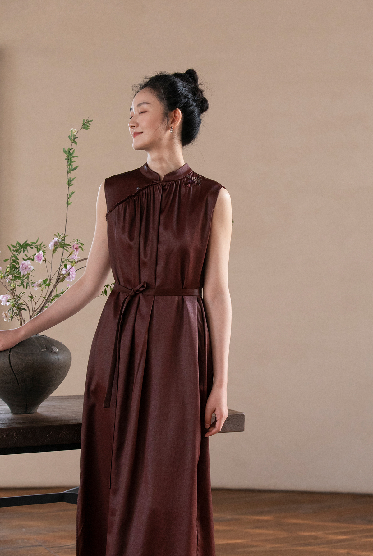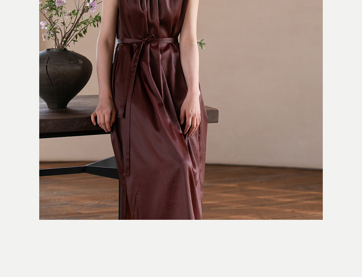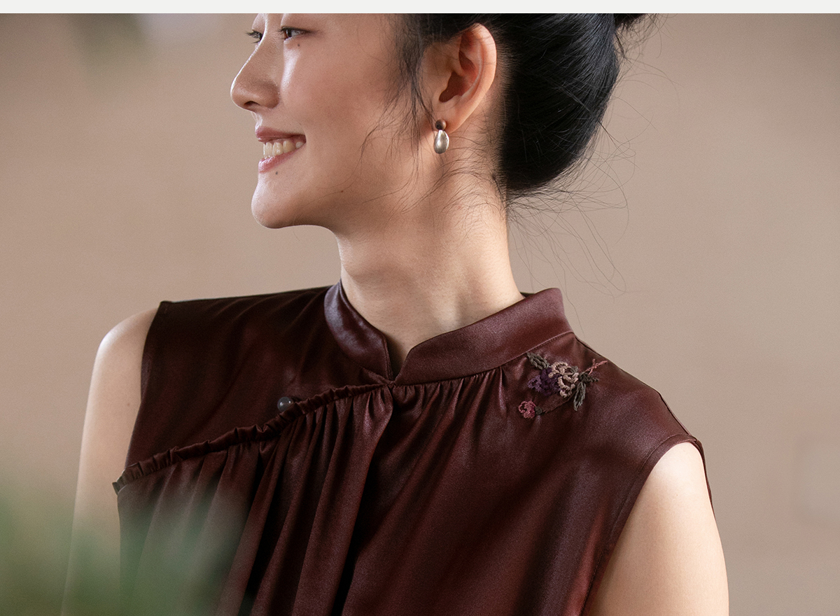 牧衣游原创 醇正薯莨红云纱手工刺绣连衣裙气质无袖长裙 洛木花