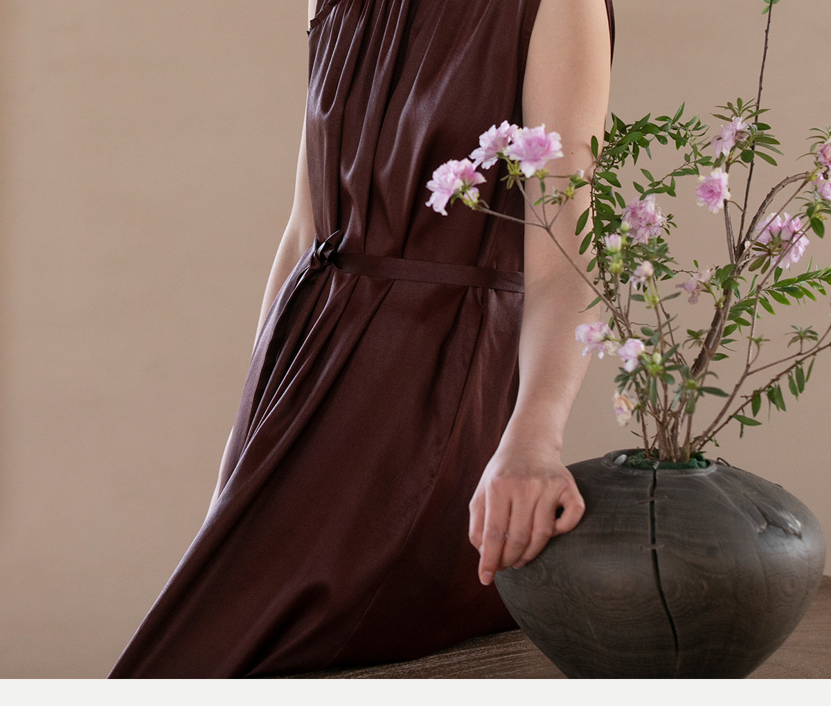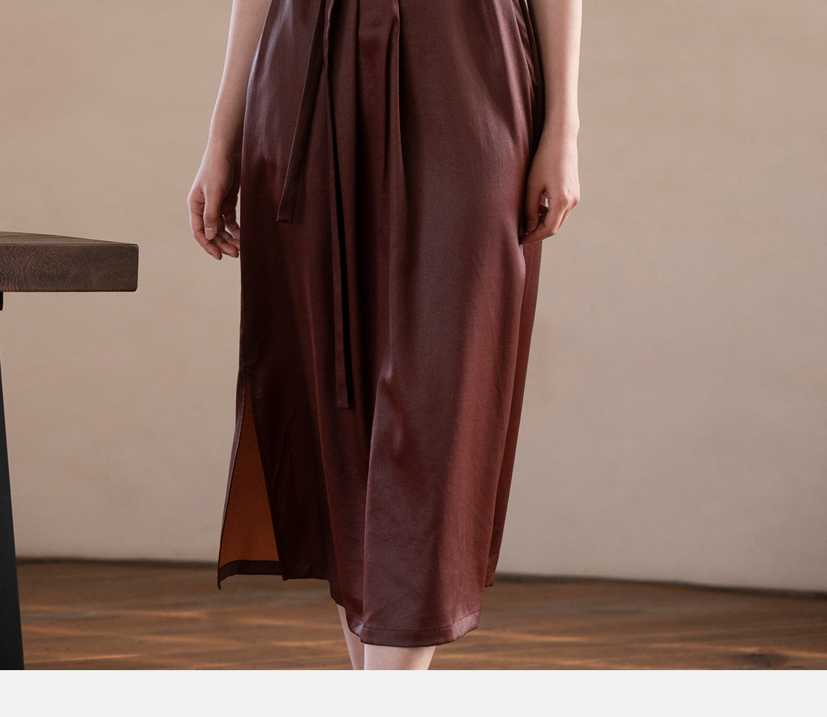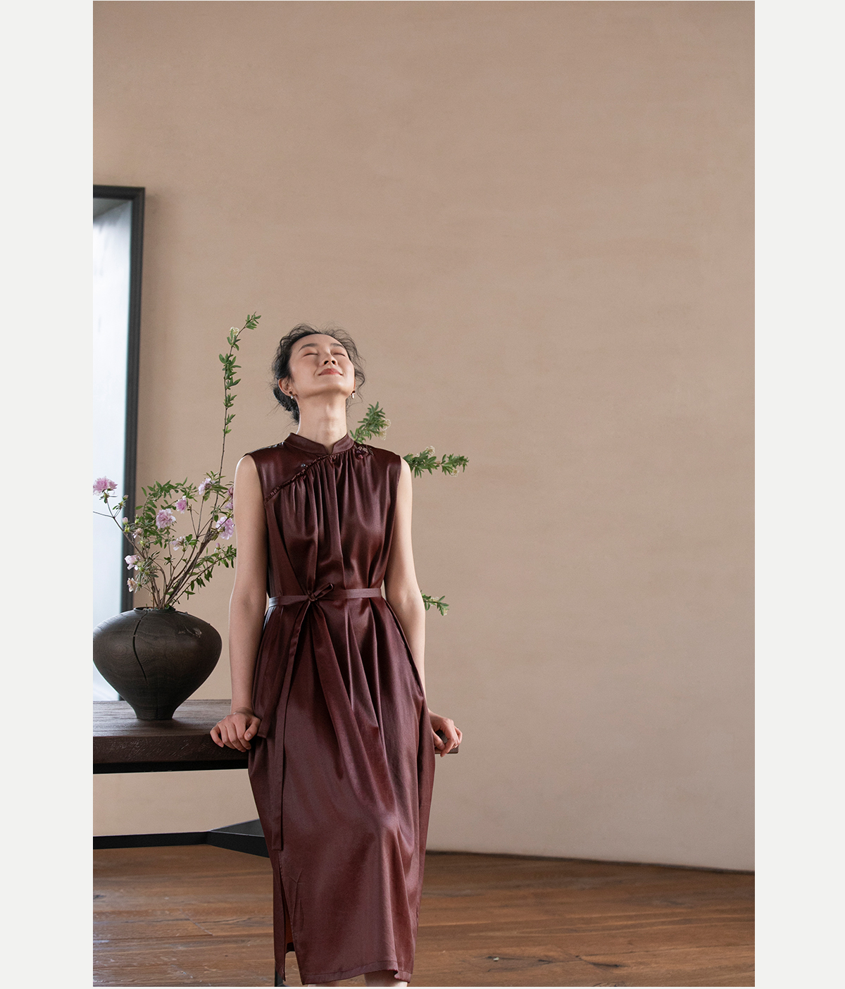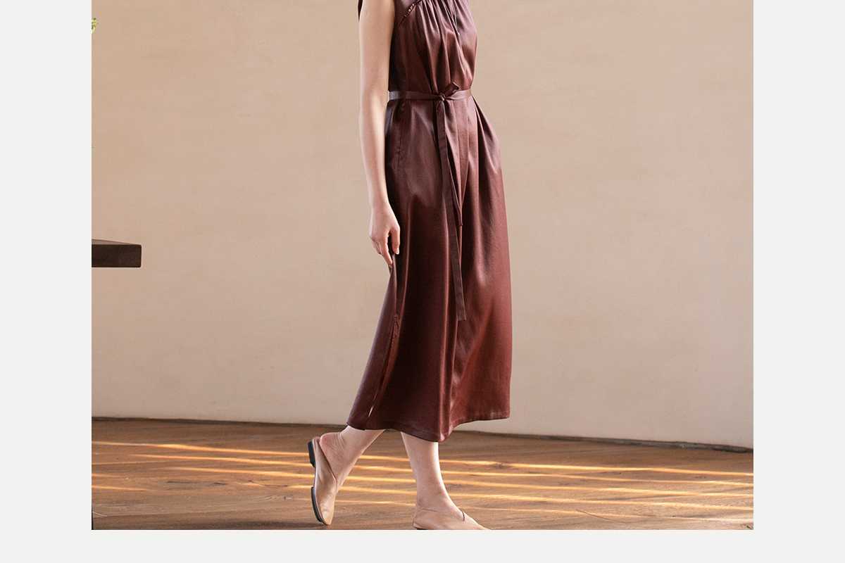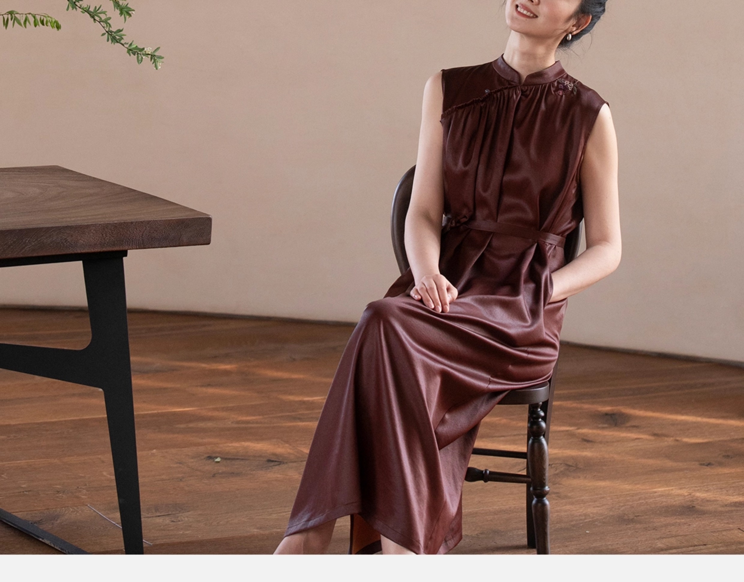 牧衣游原创 醇正薯莨红云纱手工刺绣连衣裙气质无袖长裙 洛木花