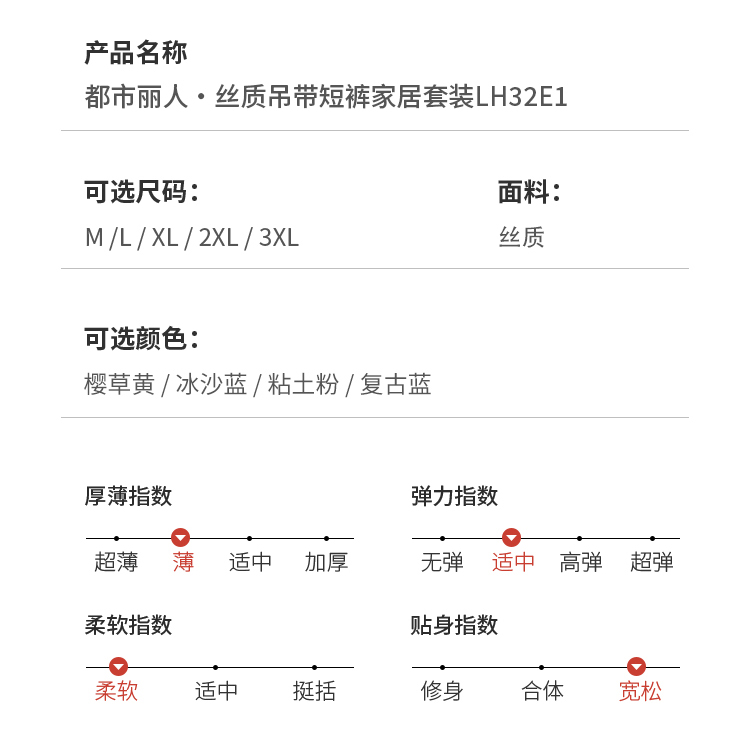 都市丽人哑光弹力色丁薄无袖家居服睡衣LH32E1