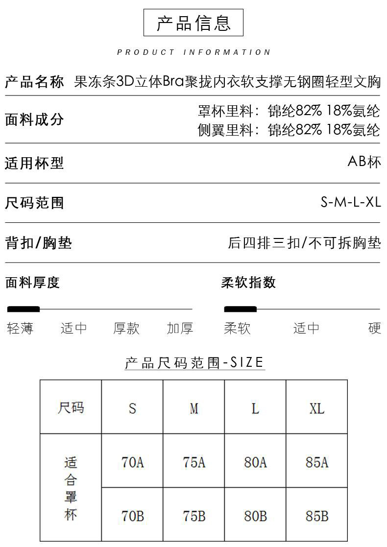 【99号】女士果冻条3D立体Bra聚拢无痕内衣软支撑无钢圈轻型文胸