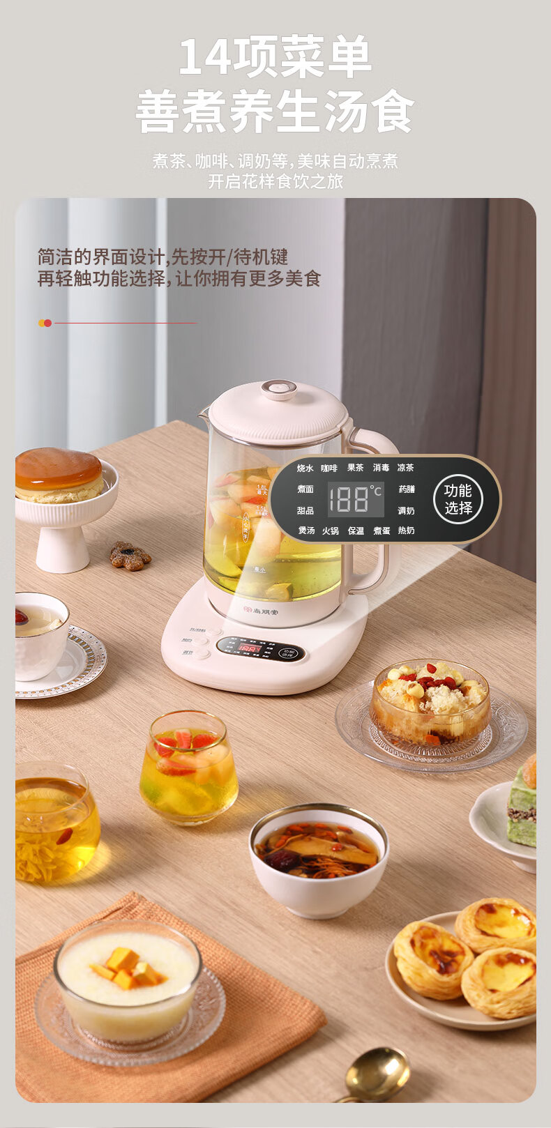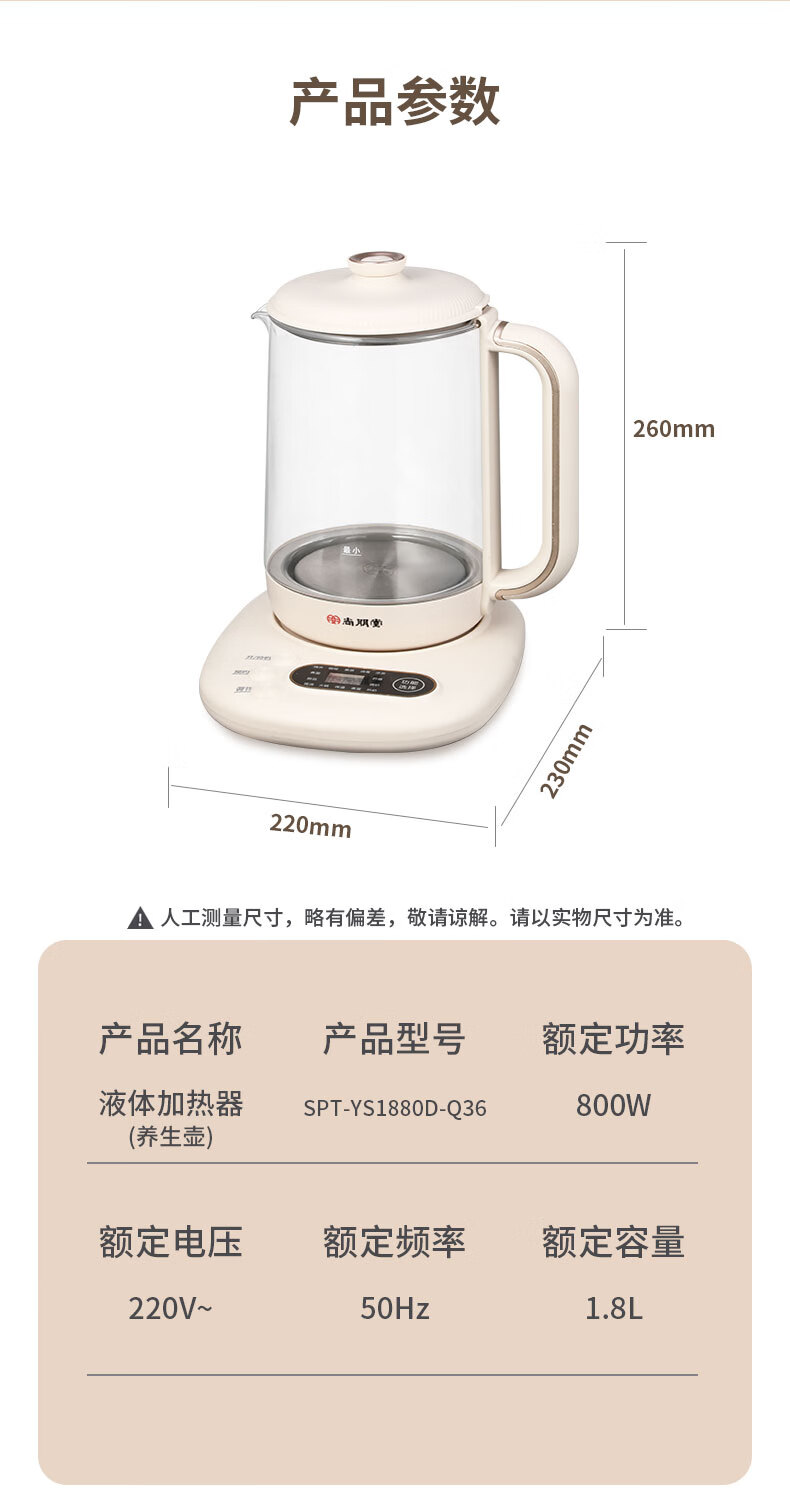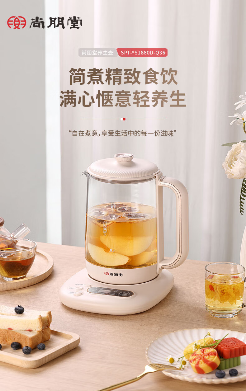 【多样屋专柜】尚朋堂养生壶家用办公室多功能烧水保温煮茶器云峰白1.8L