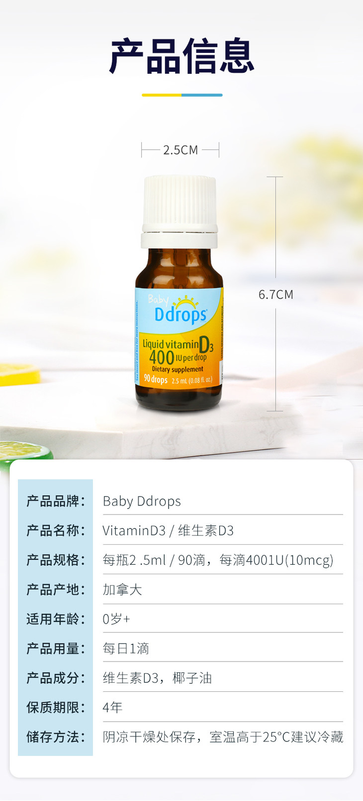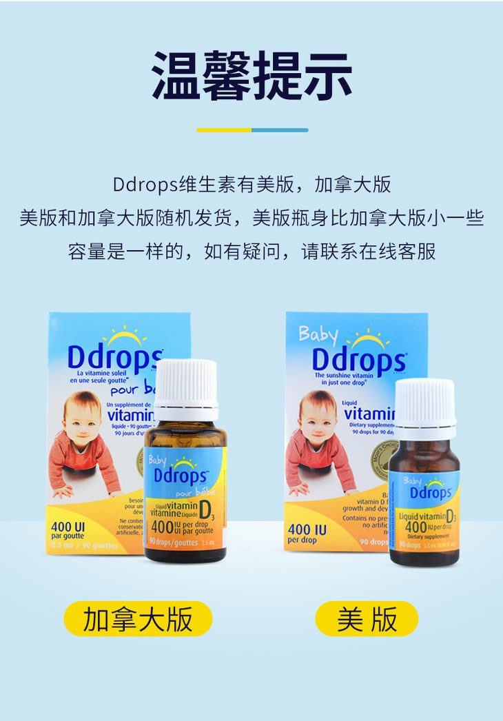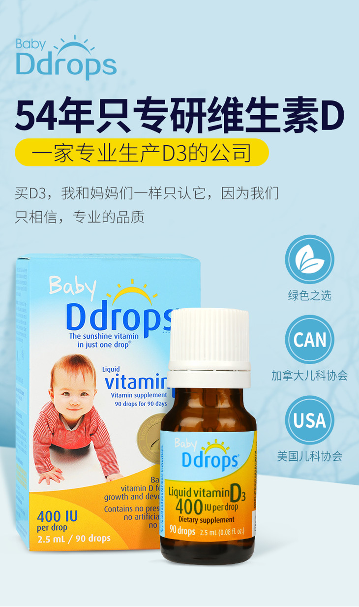【云优选】美国baby ddrops 维生素d3滴剂