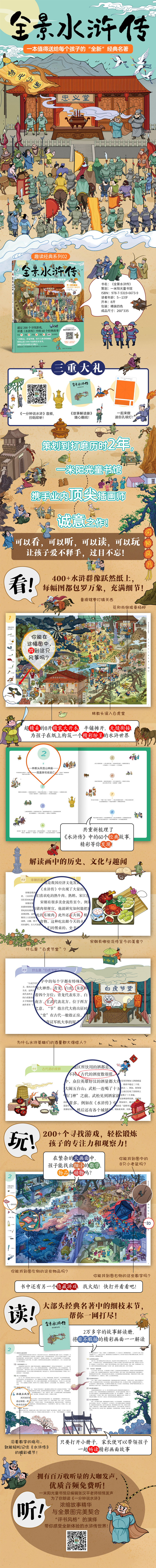 全景四大名著绘本套装:(美猴王+红楼梦+水浒传+三国演义)——10米全景三国+寻宝游戏+音频课!四大名著一套收齐,玩着读完经典!