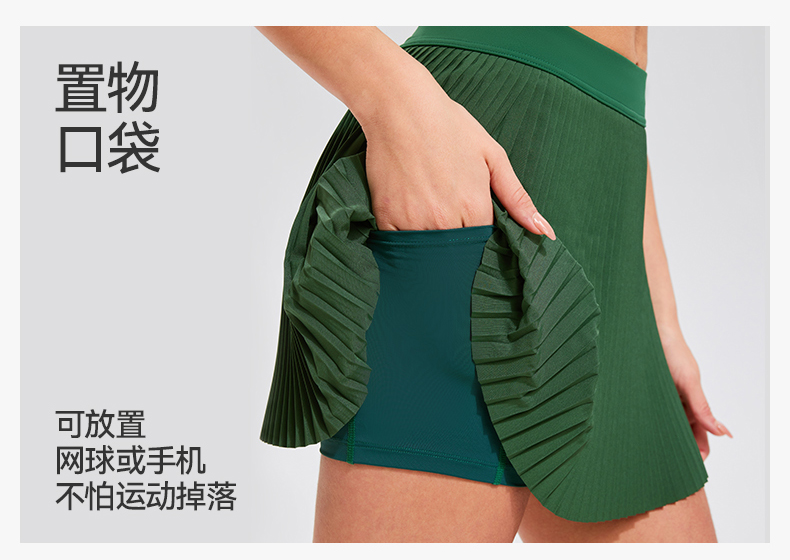 【上新】科里芙假两件百褶短裙网球裙女高腰显瘦运动跑步裙带口袋