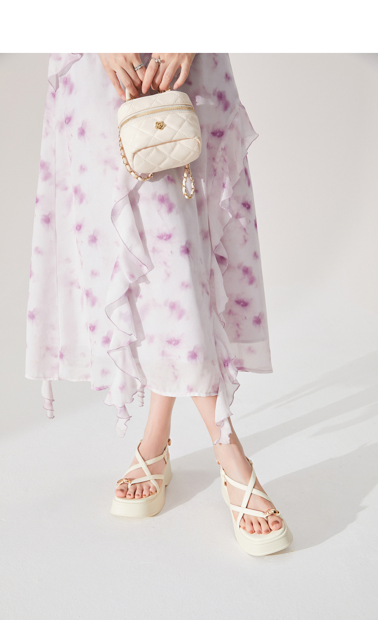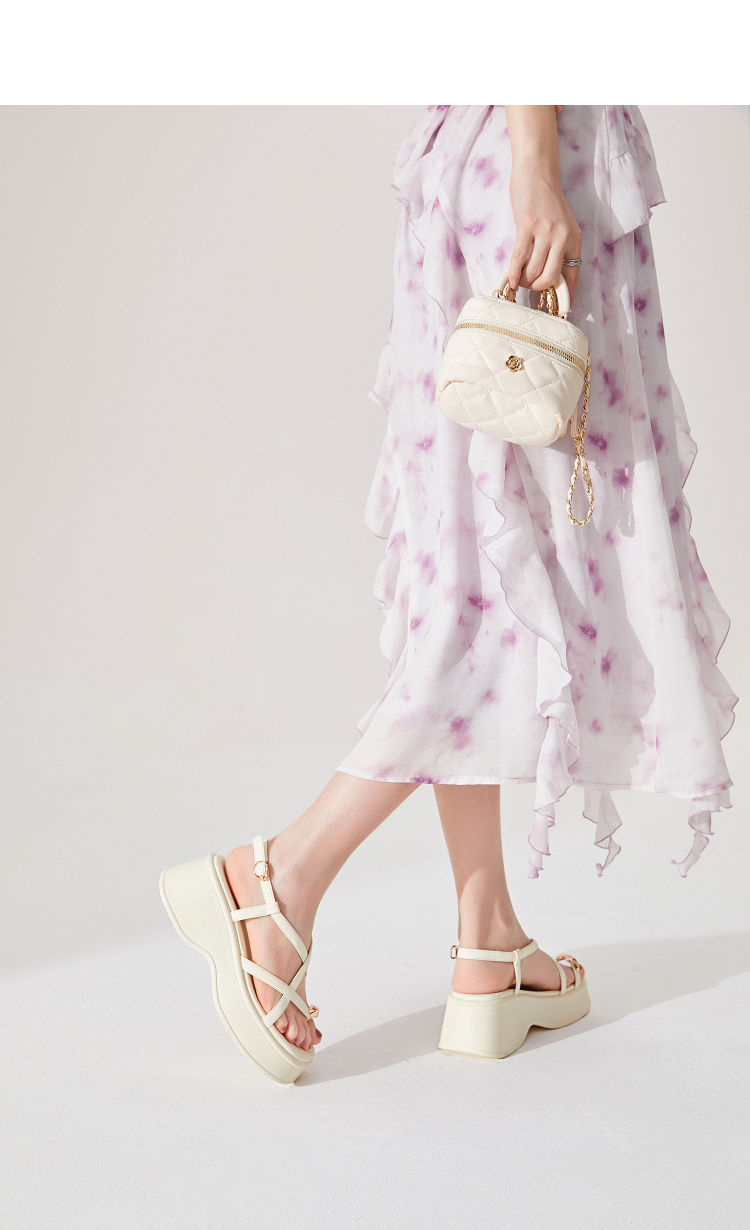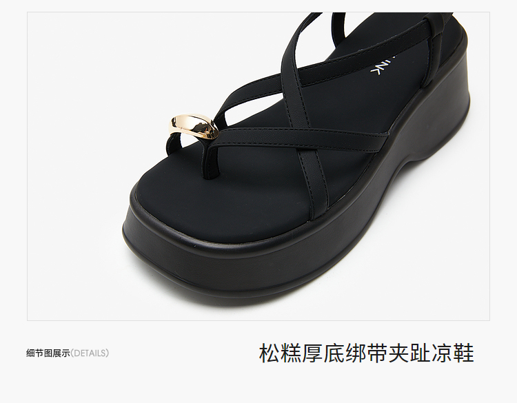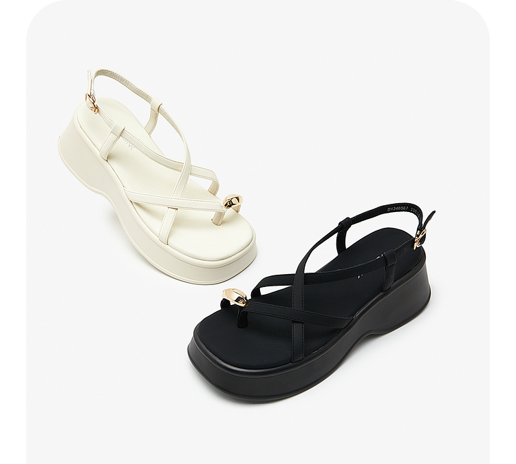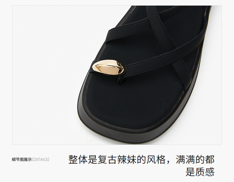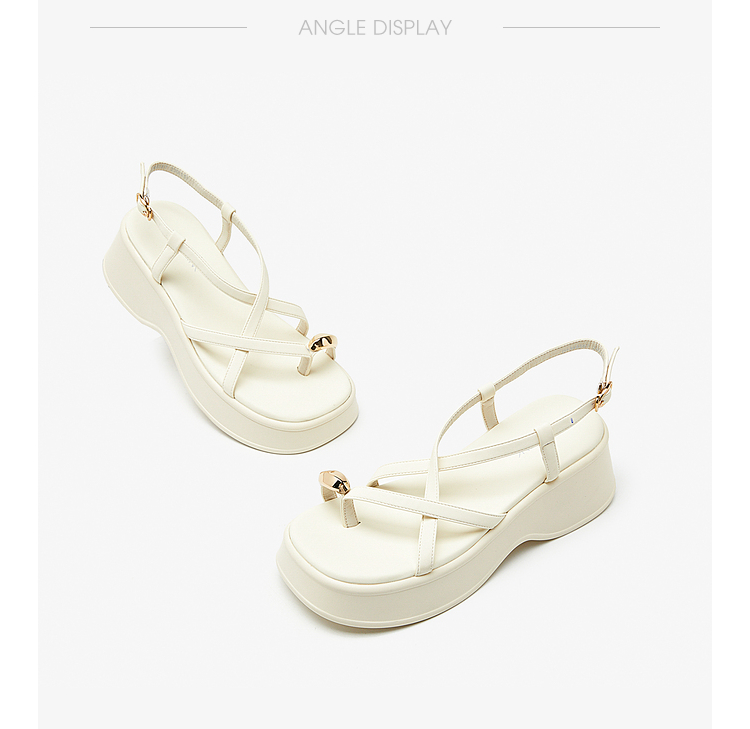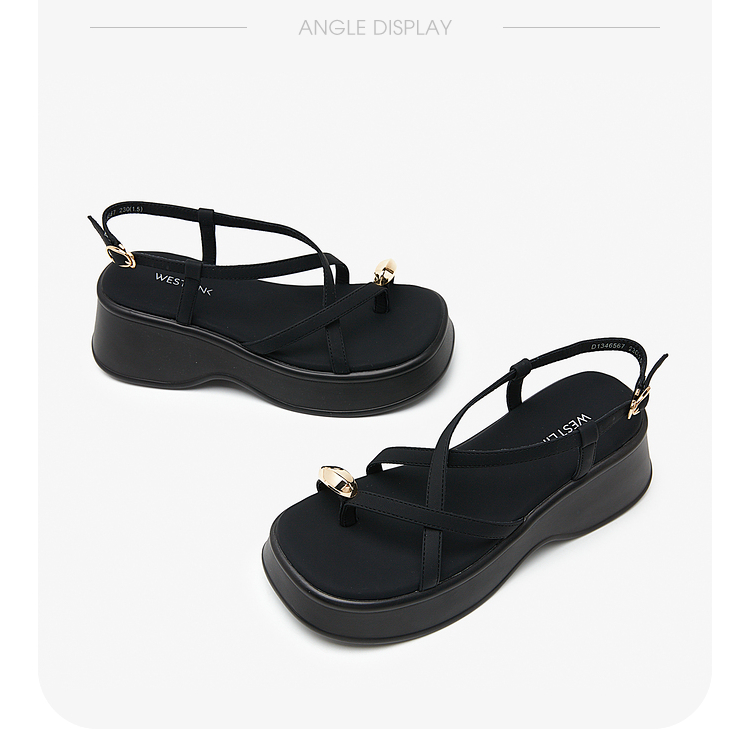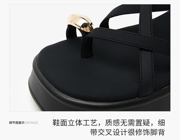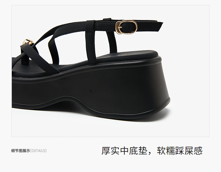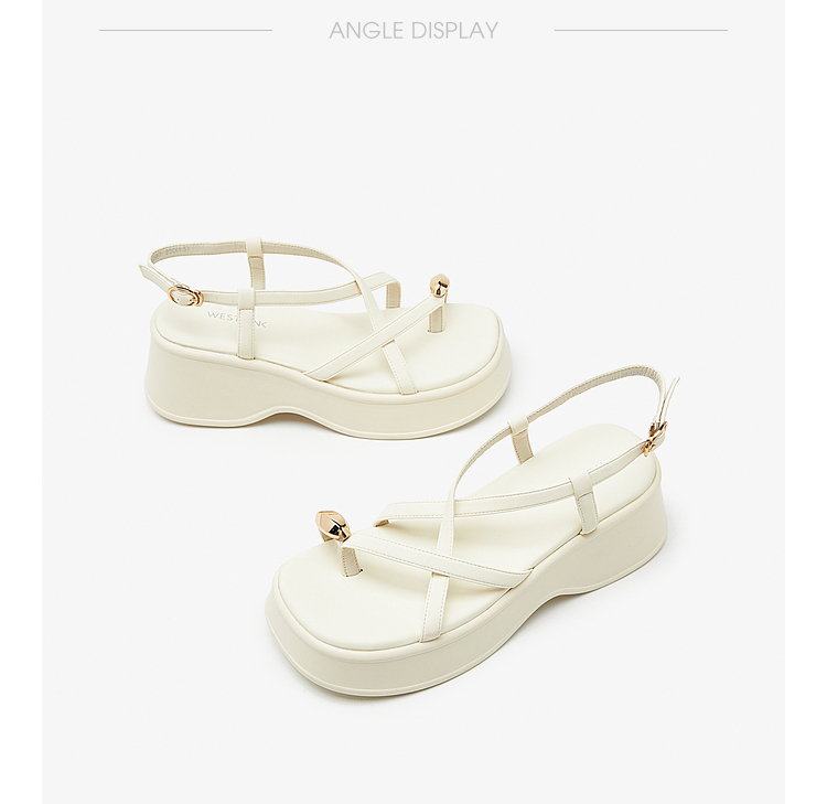 西遇厚底罗马凉鞋女新款夏季复古踩屎感沙滩鞋小个子松糕凉鞋D1346567