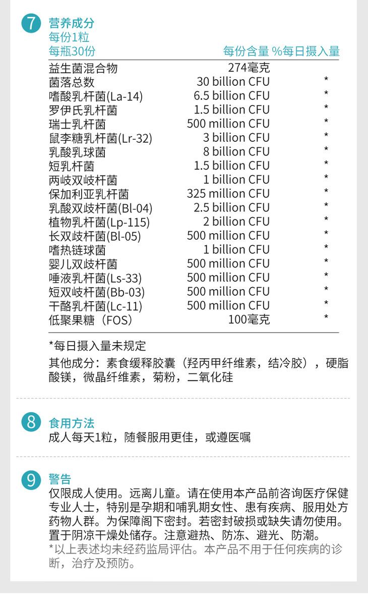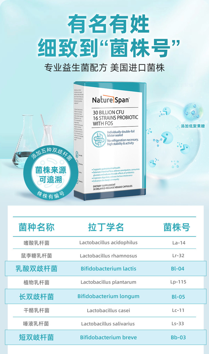 16种益生菌300亿 平衡肠道菌群美国原装进口30粒NS倍能适