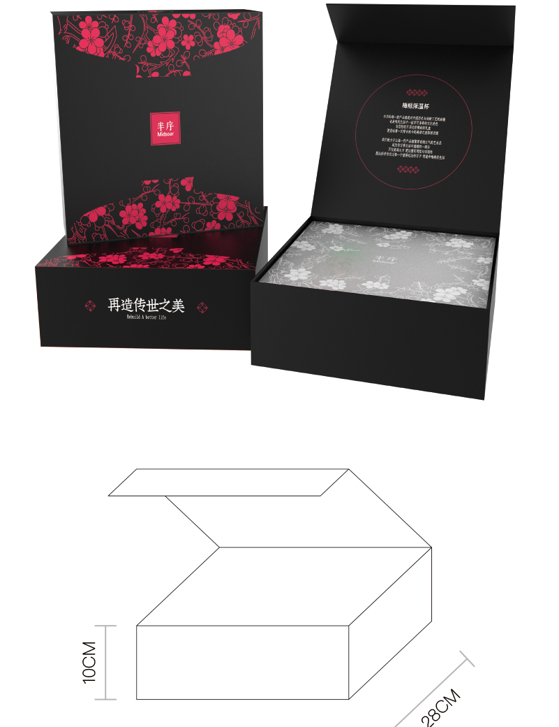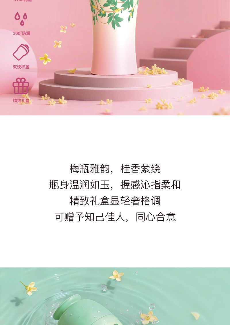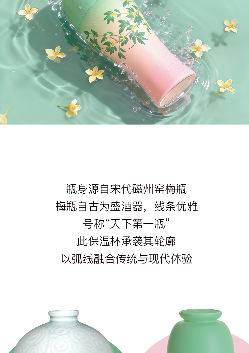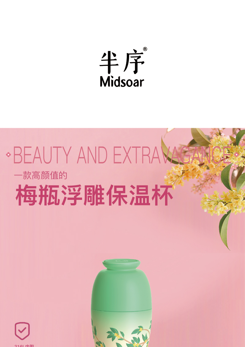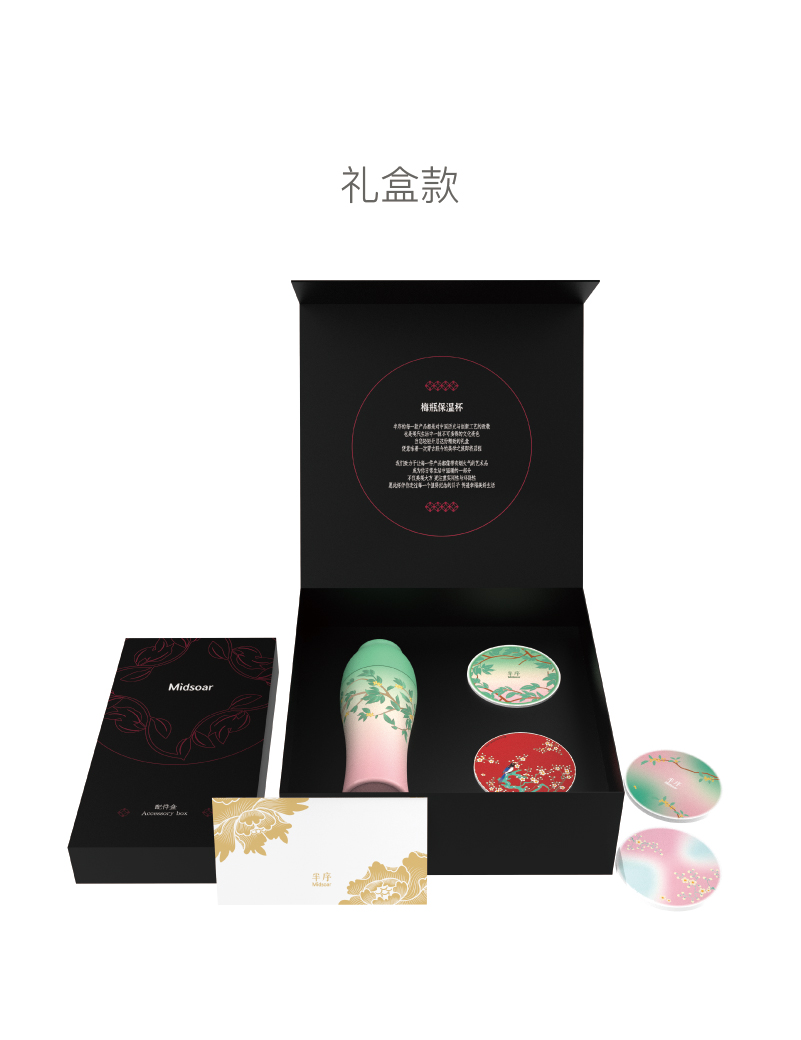 Midsoar半序梅瓶浮雕保温杯300ml316L不锈钢高颜值礼盒装生日送礼