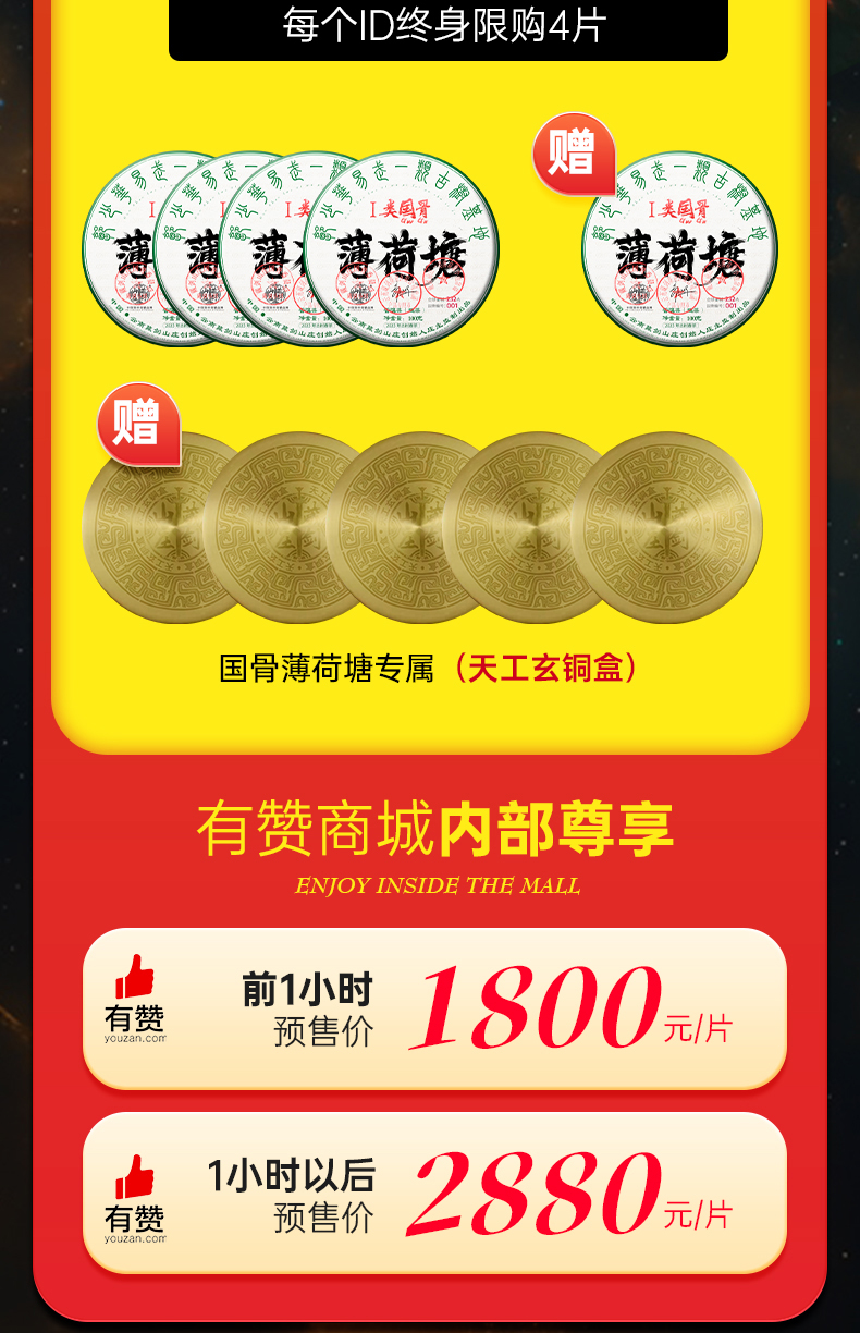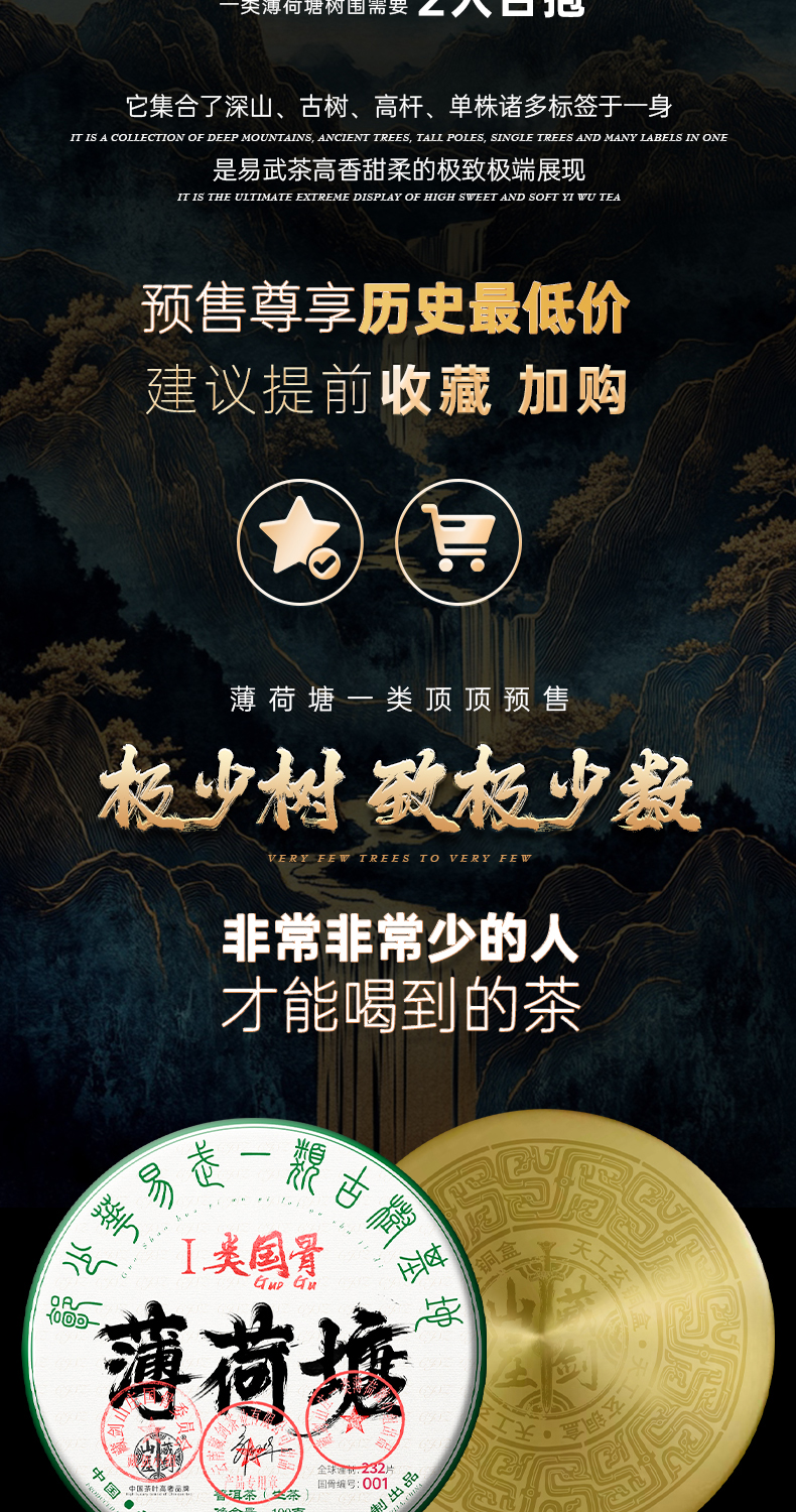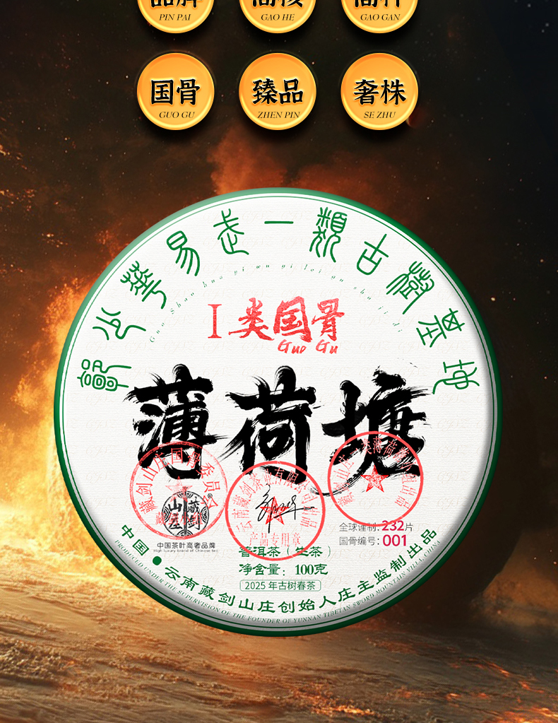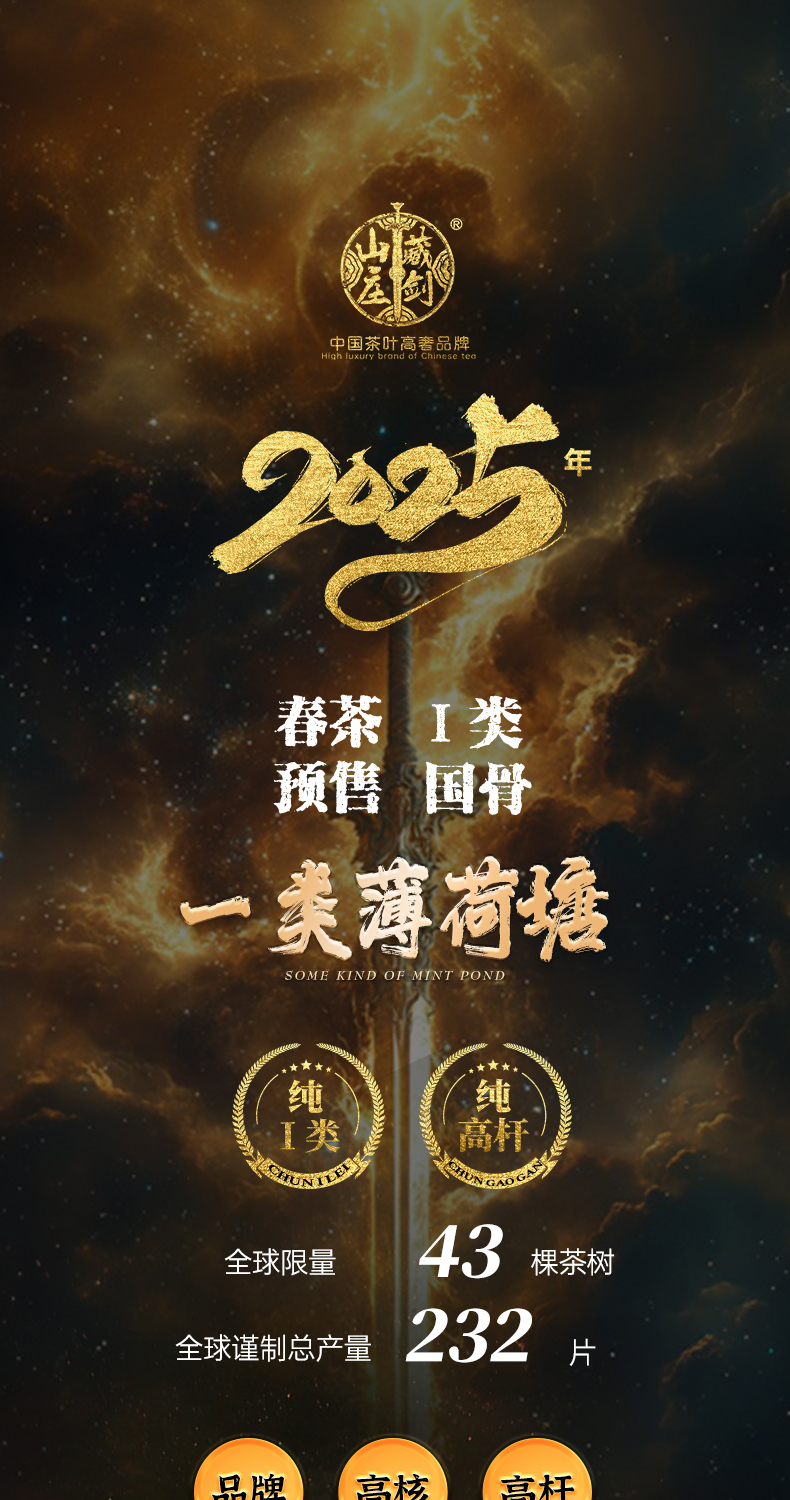 藏剑山庄巨奢 国骨一类高杆薄荷塘!100克/片!首发抢4片赠1片(赠天工玄铜盒)