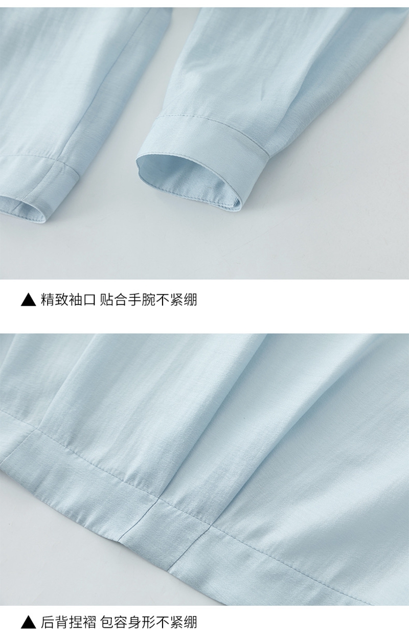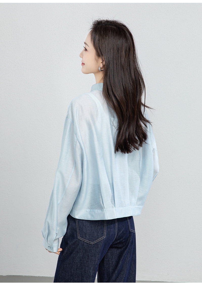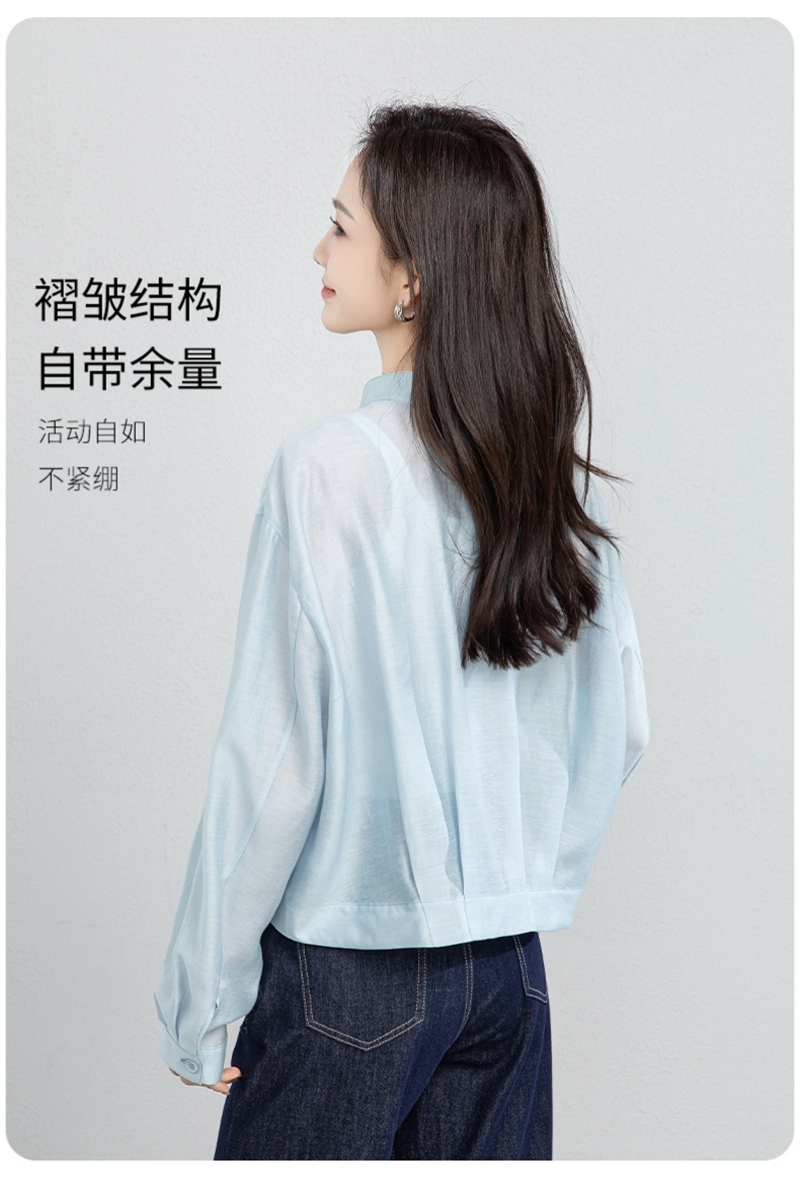 19姆米提花真丝立领长袖单排扣半襟套头衬衫