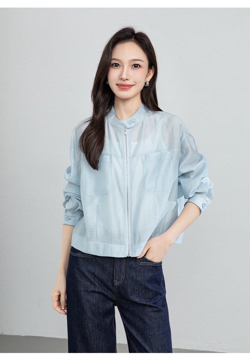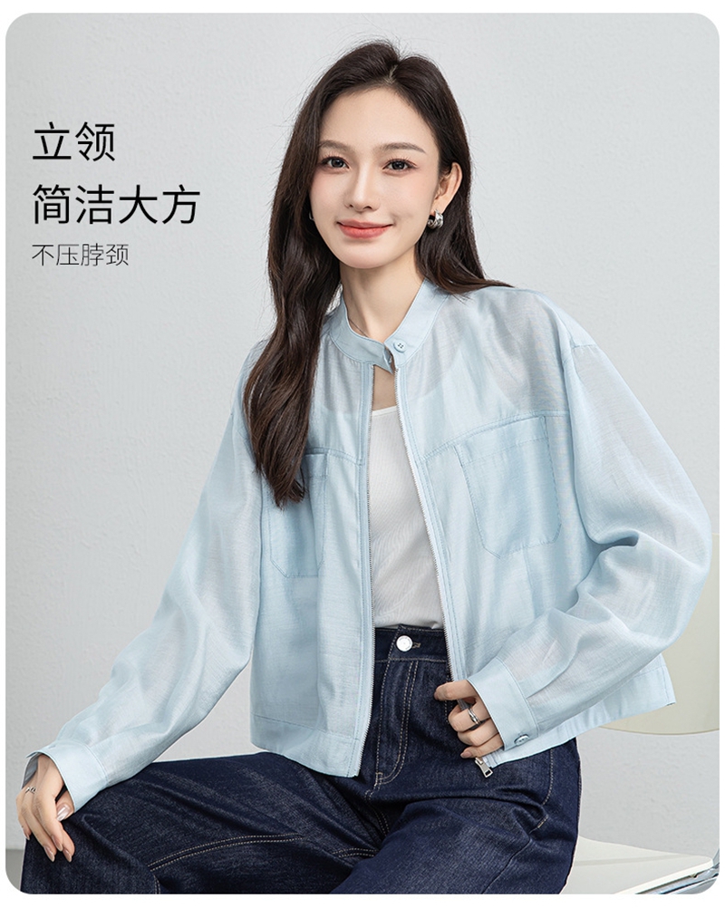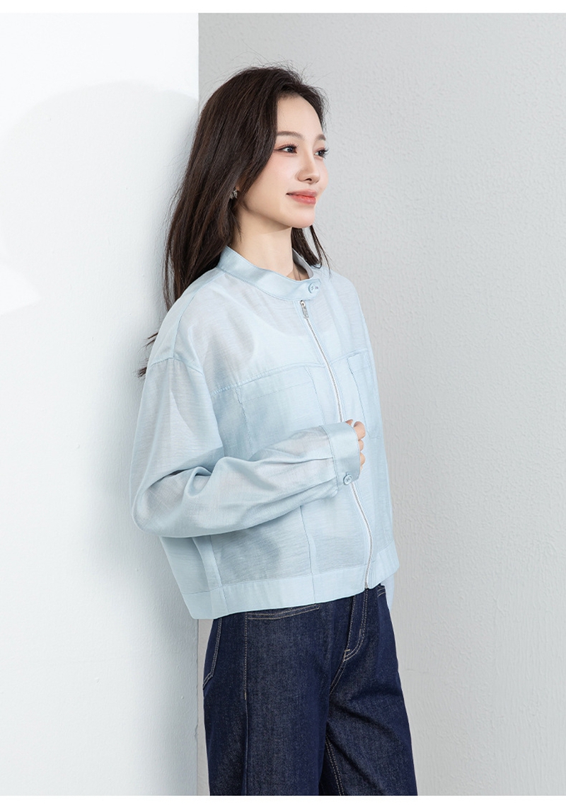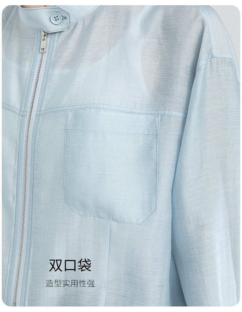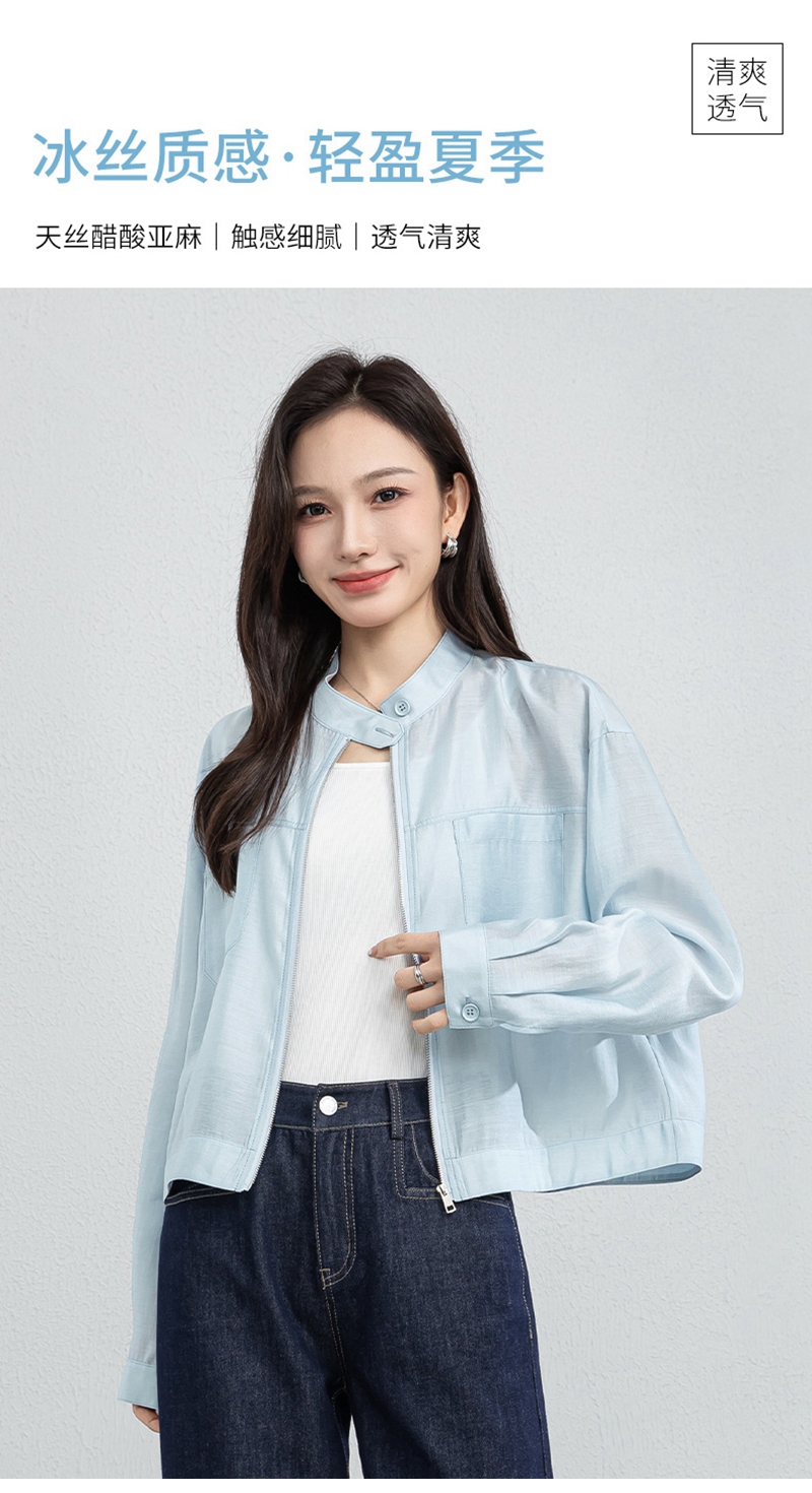 时尚立领长袖拉链一粒扣轻薄夹克外套