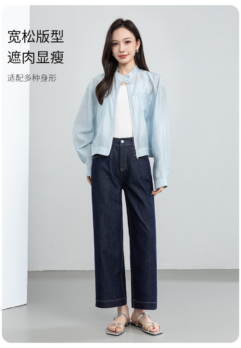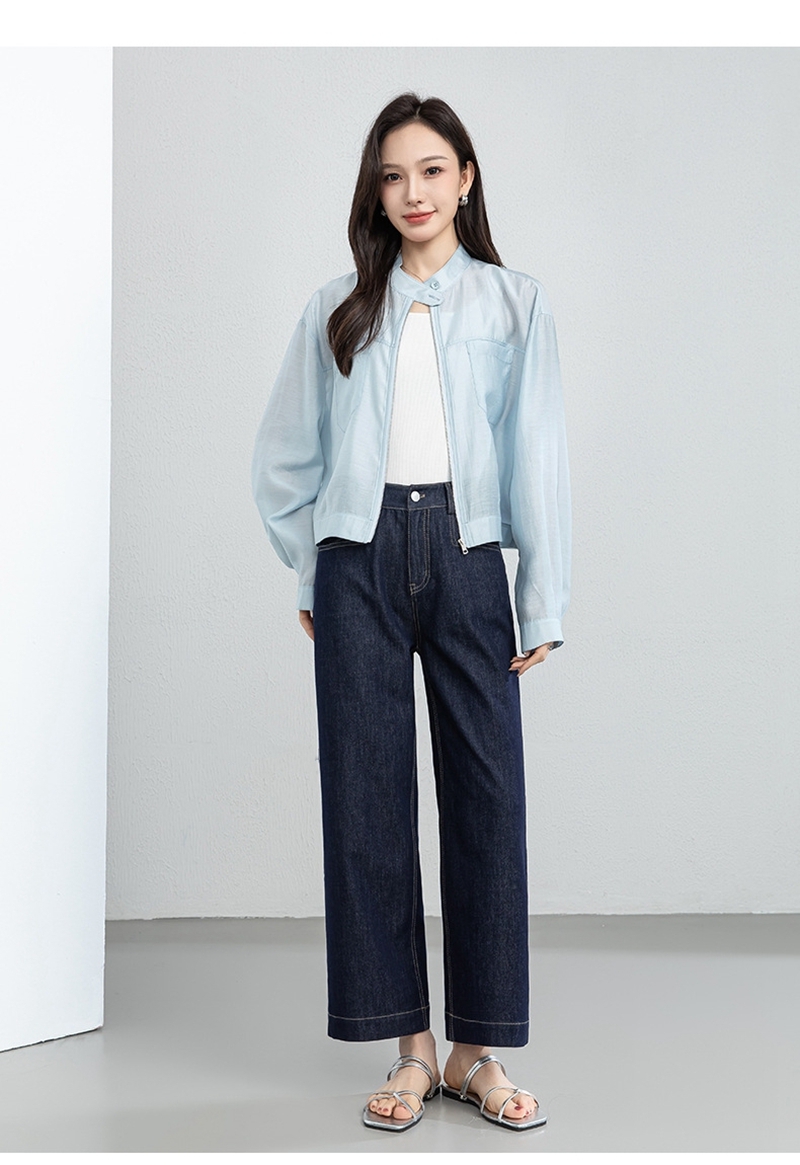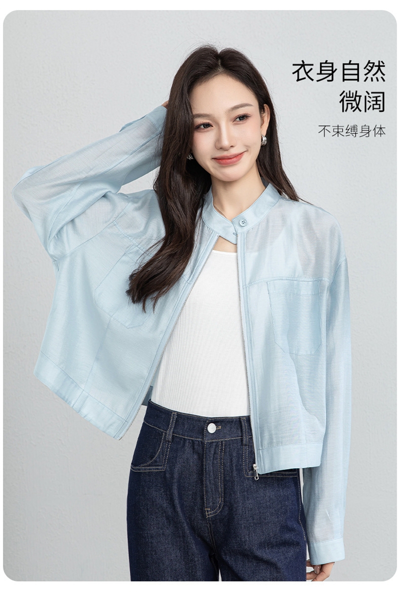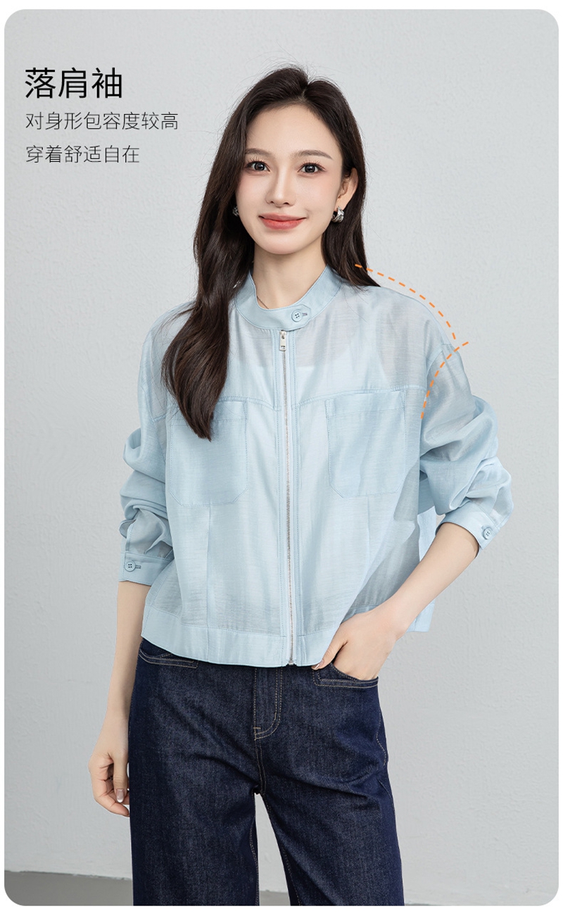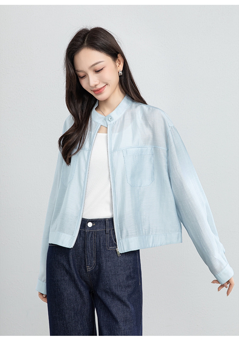 时尚立领长袖拉链一粒扣轻薄夹克外套