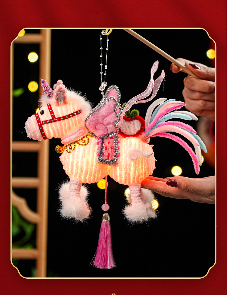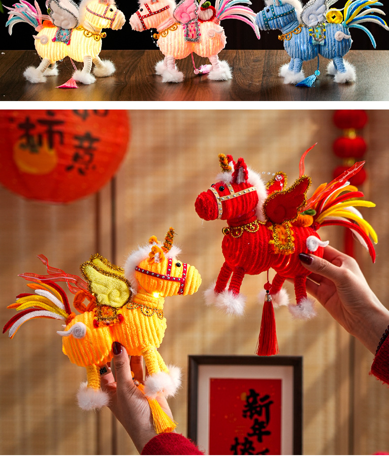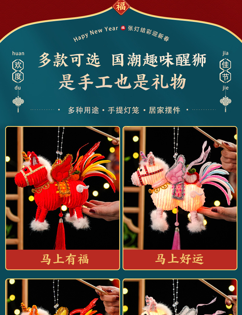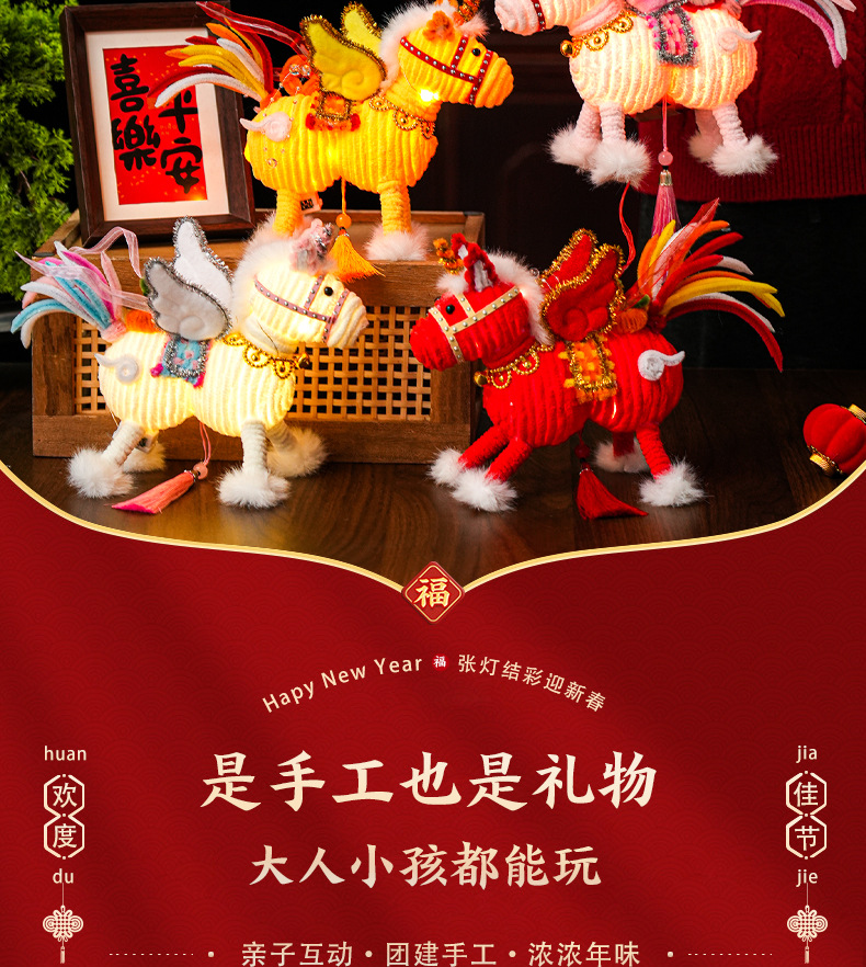 2026马年新年祥云飞马灯笼过年儿童手工diy材料春节手提发光花灯