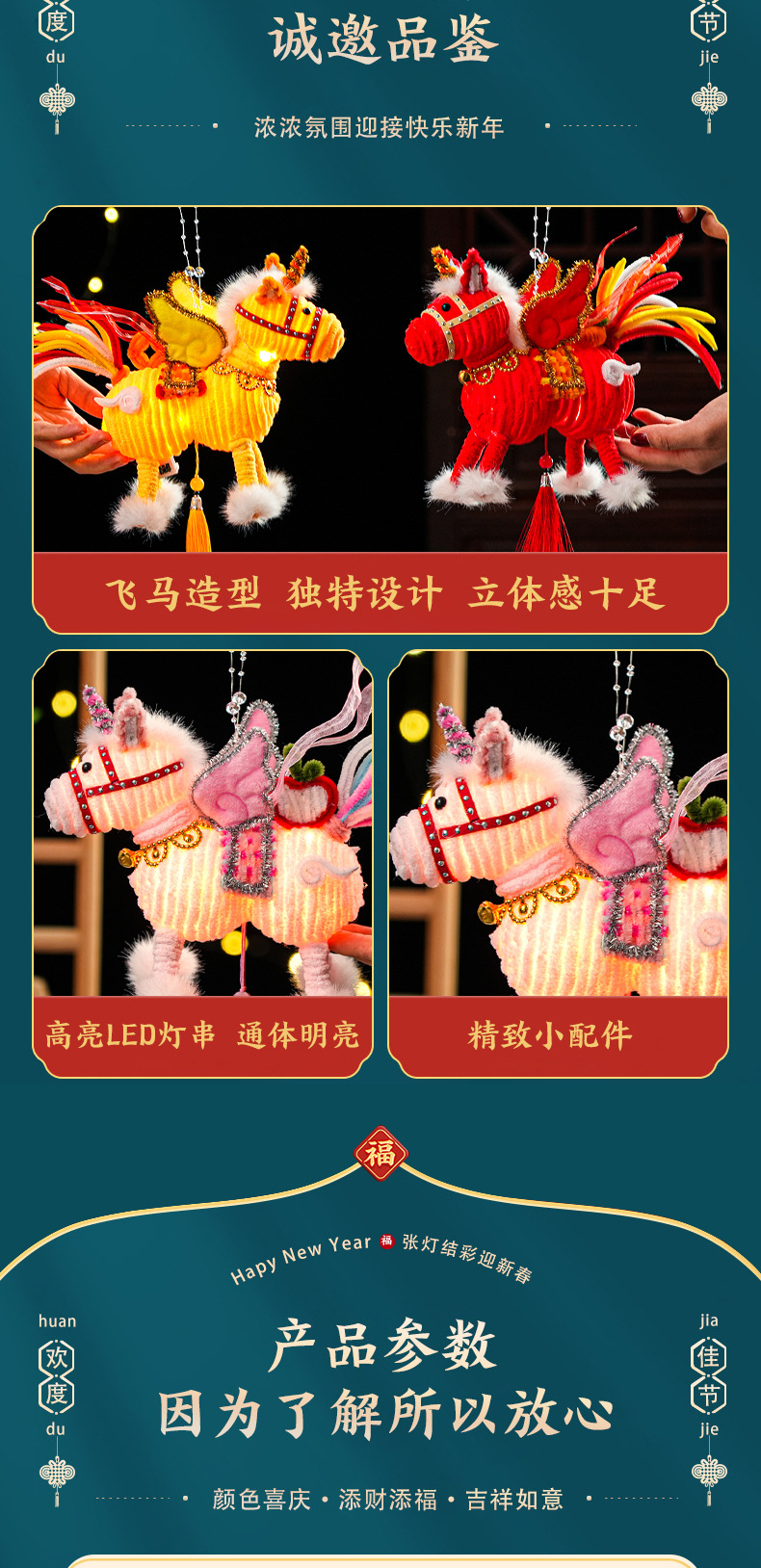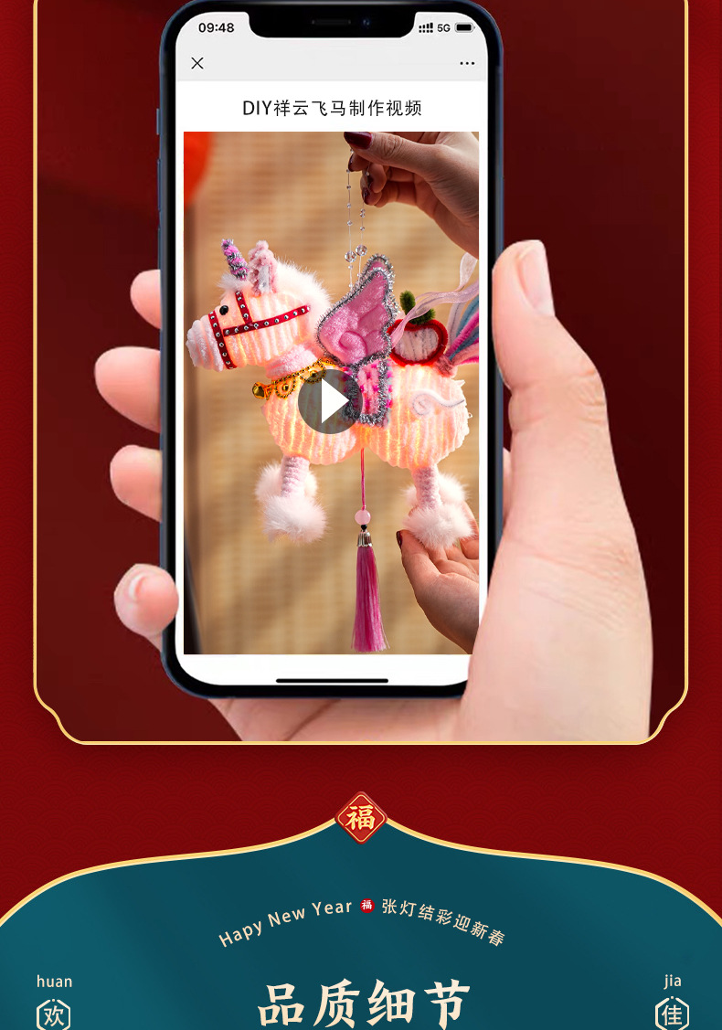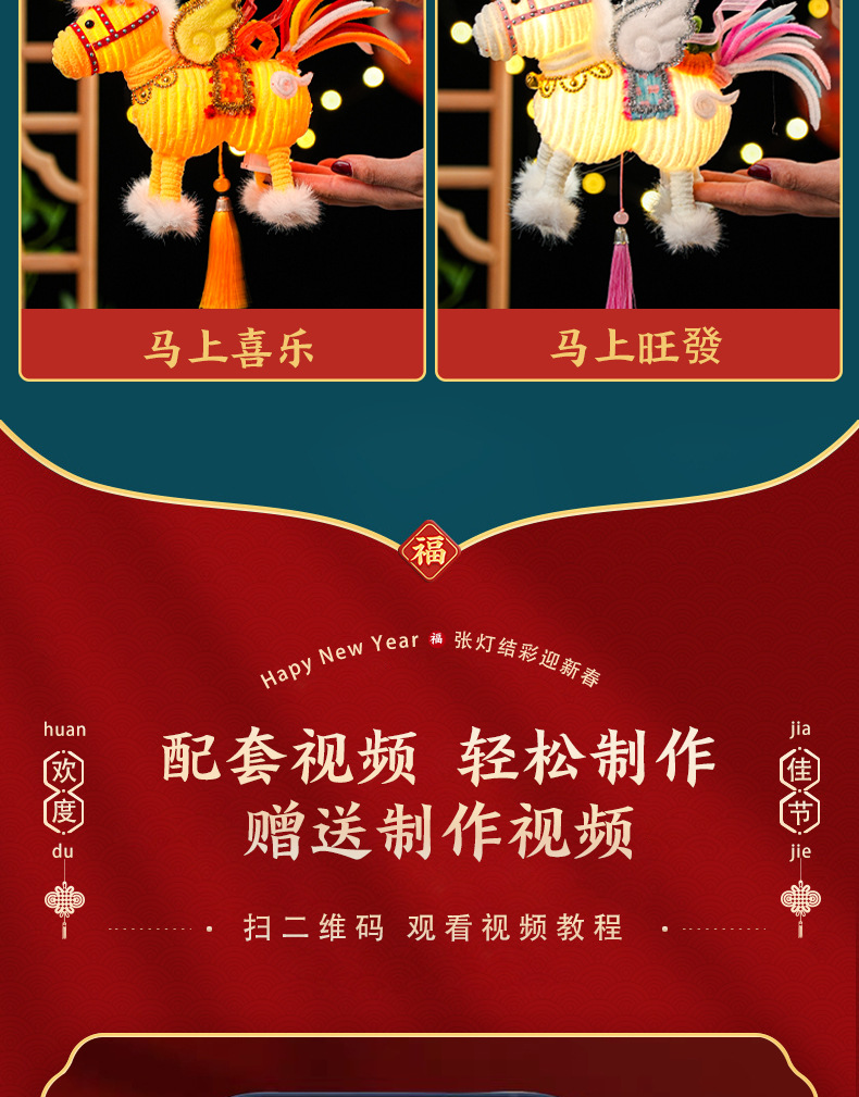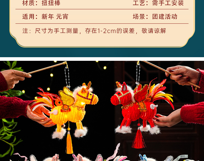 2026马年新年祥云飞马灯笼过年儿童手工diy材料春节手提发光花灯