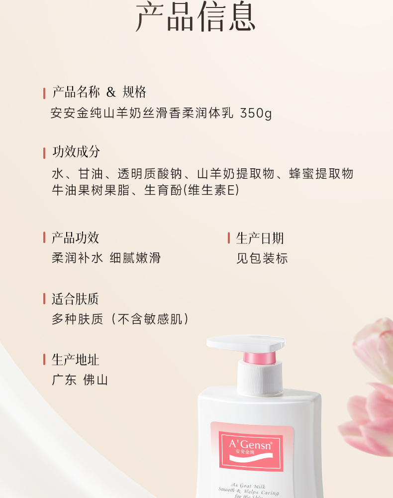 安安金纯山羊奶丝滑香柔润体乳【放心甄选】【龙菲精选】